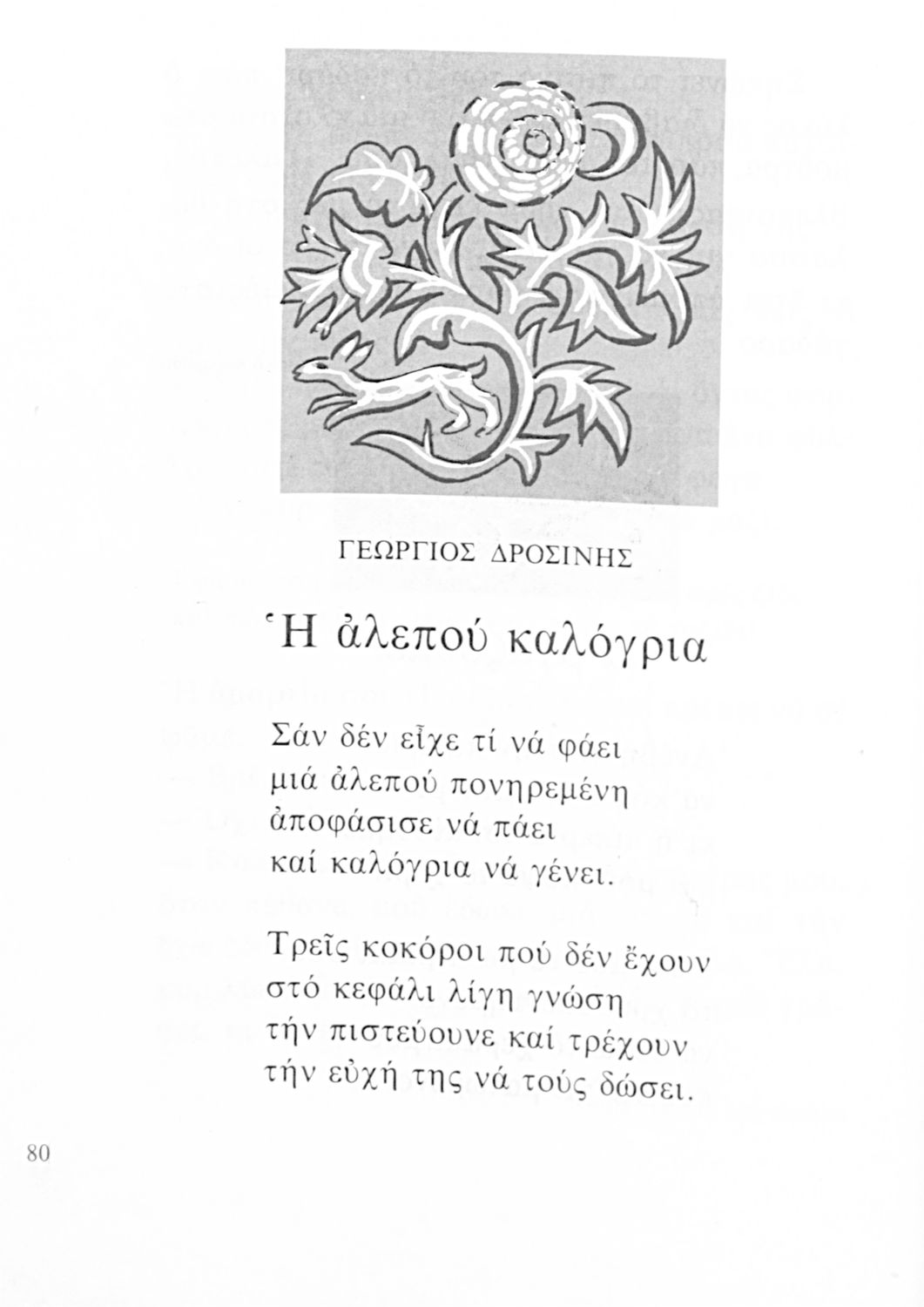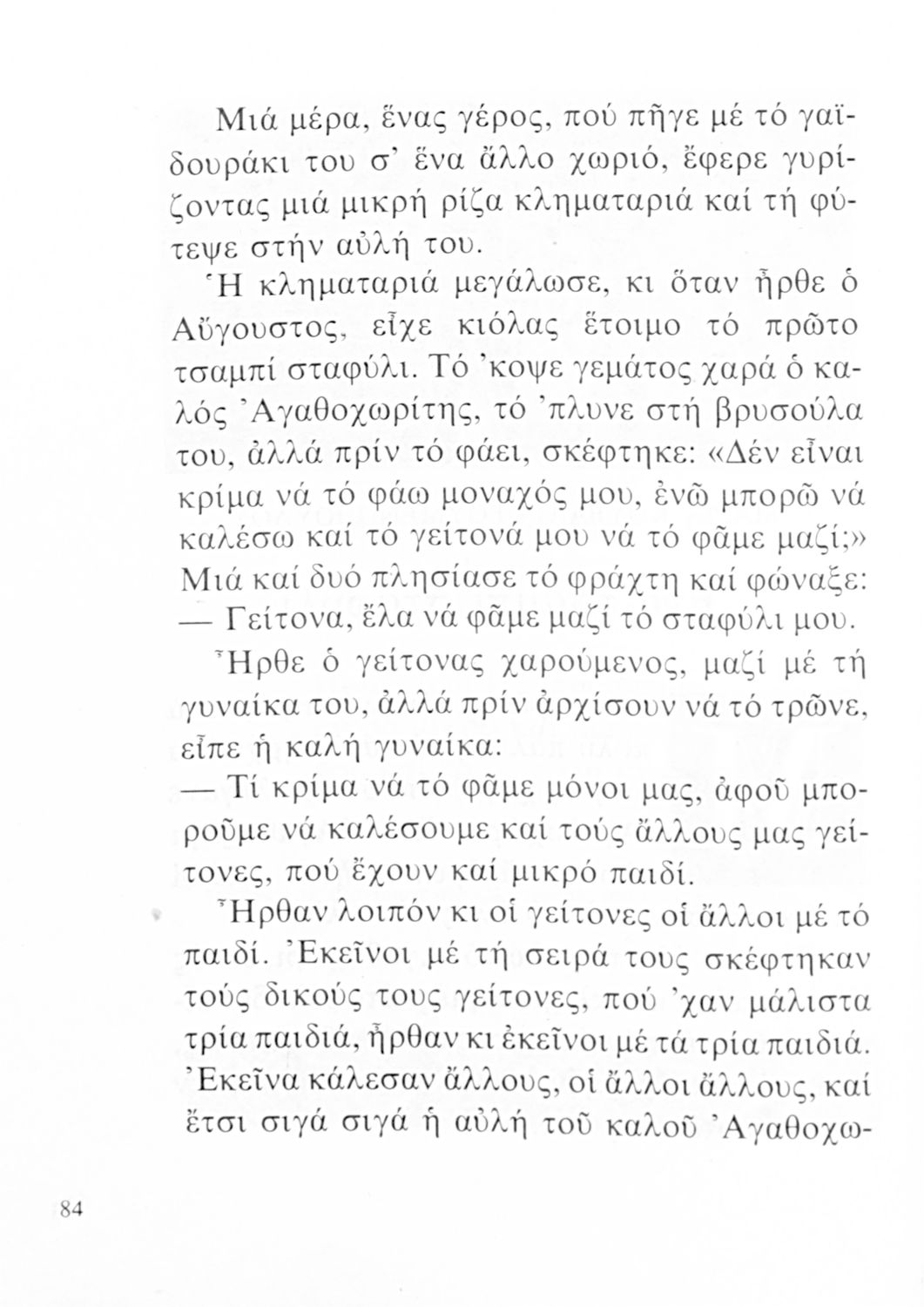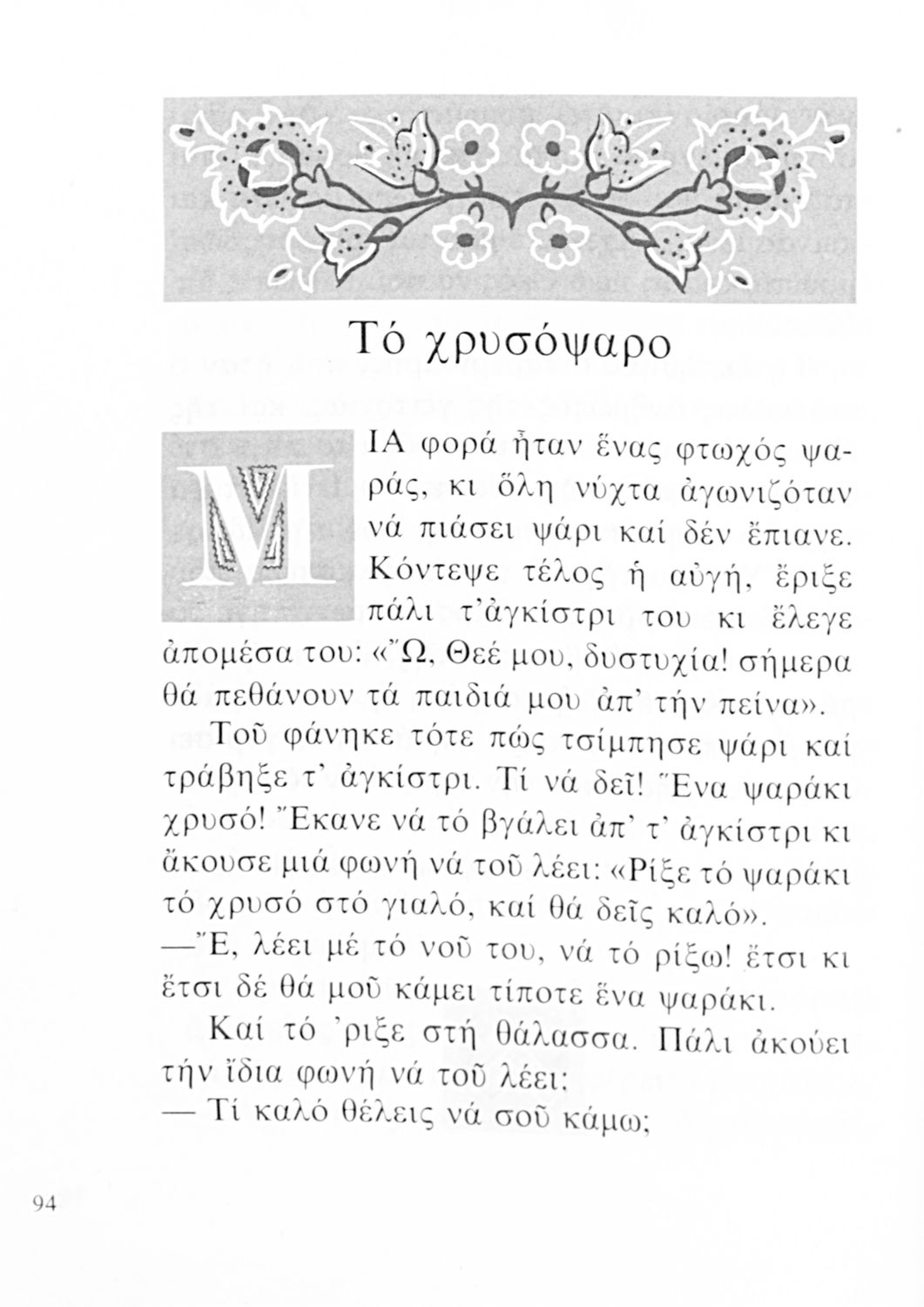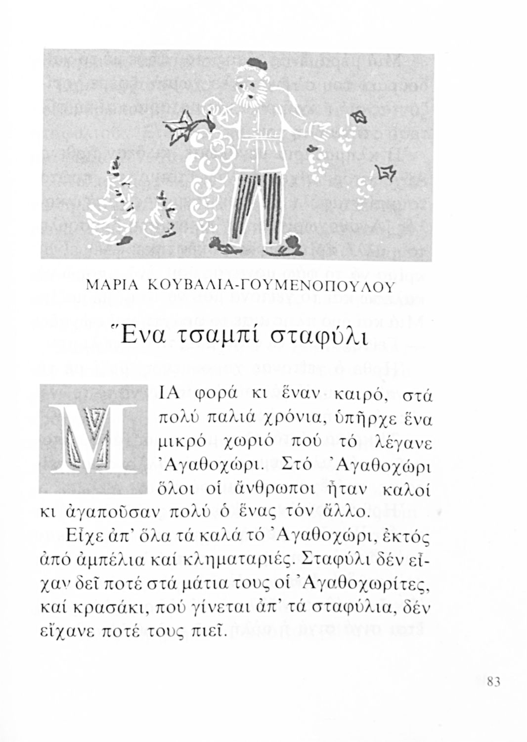Αναγνωστικό που περιλαμβάνει πεζά και ποιήματα της νέας ελληνικής λογοτεχνίας για τους μαθητές του Δημοτικού. Το βιβλίο είναι αφιερωμένο στη μνήμη του Ζαχαρία Παπαντωνίου και αναδημοσιεύει αρκετά κείμενα από τα αναγνωστικά των εκπαιδευτικών μεταρρυθμίσεων του Ελευθερίου Βενιζέλου.