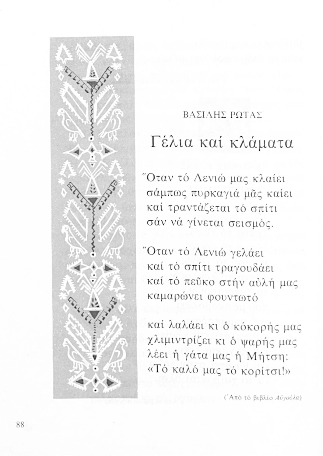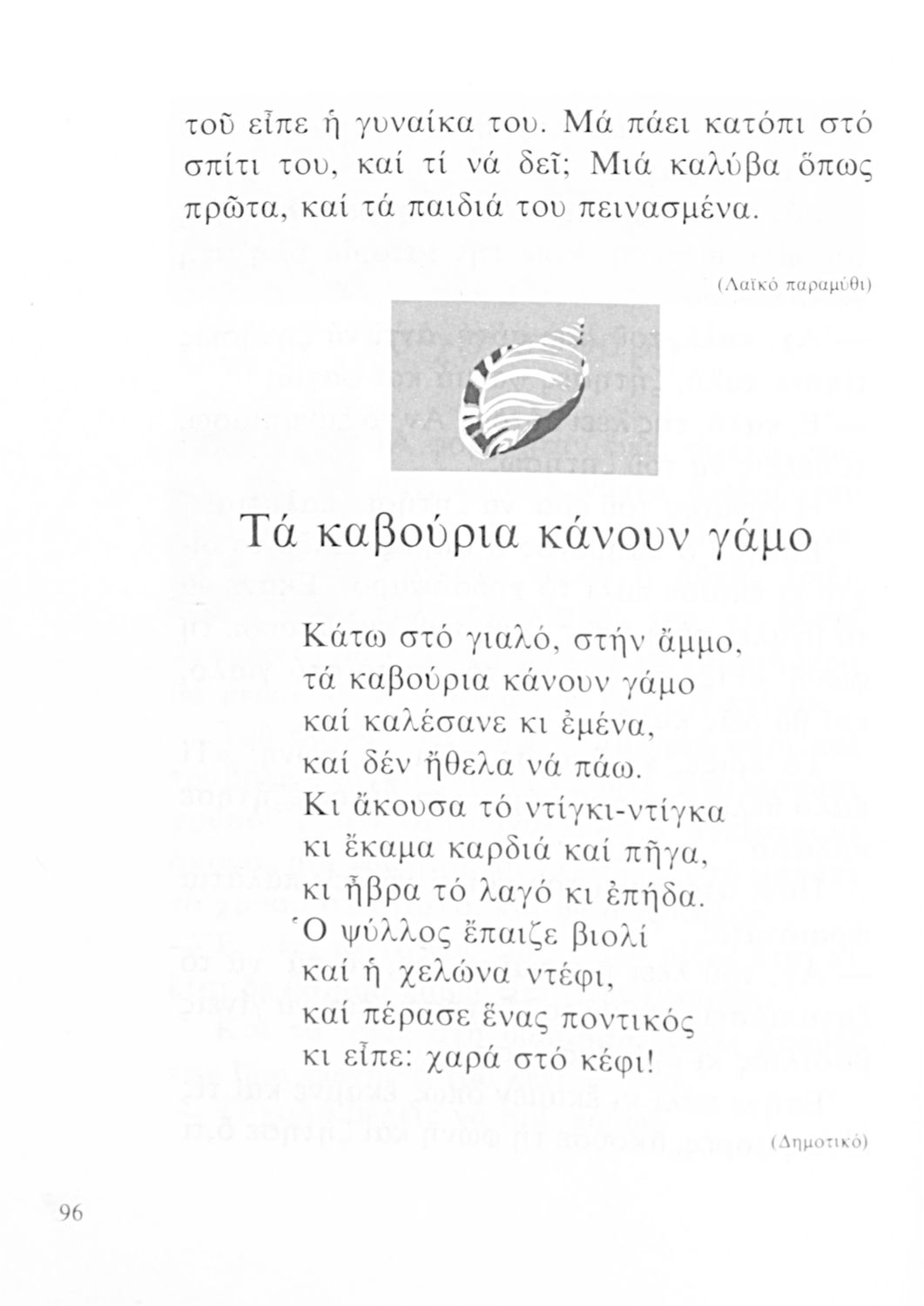 Αναγνωστικό για τους μαθητές της Γ΄ και Δ΄ Δημοτικού που περιλαμβάνει με πεζά και ποιήματα της νέας ελληνικής λογοτεχνίας εμπνευσμένα από την καθημερινότητα των παιδιών και των οικογενειών τους, την ελληνική ...