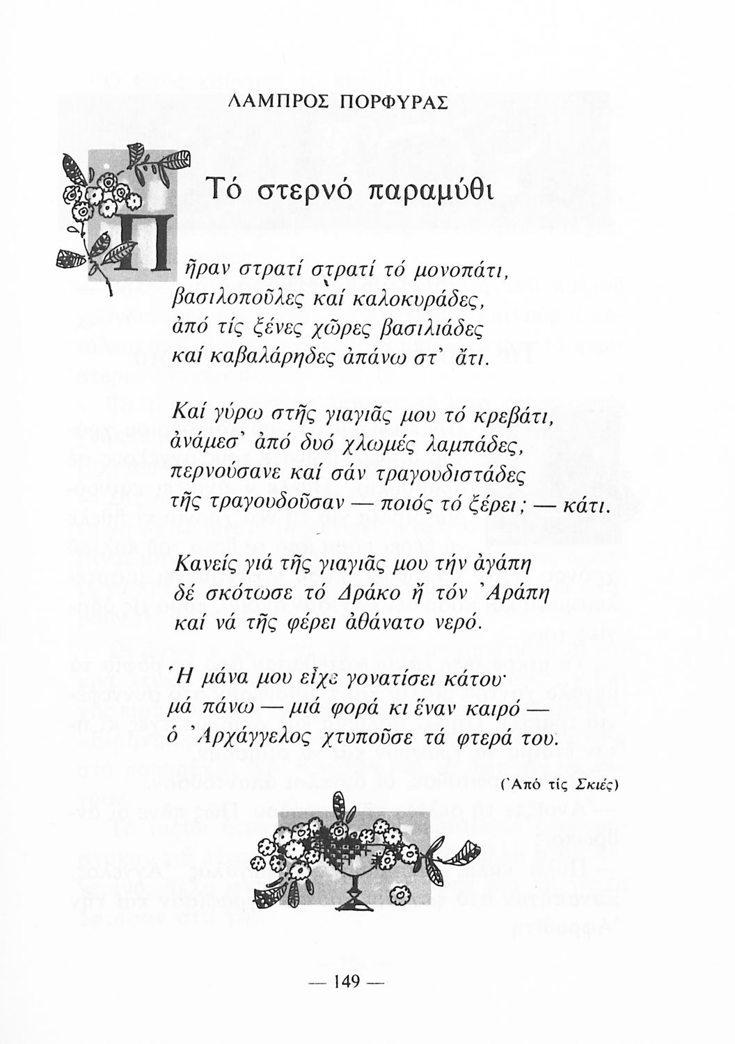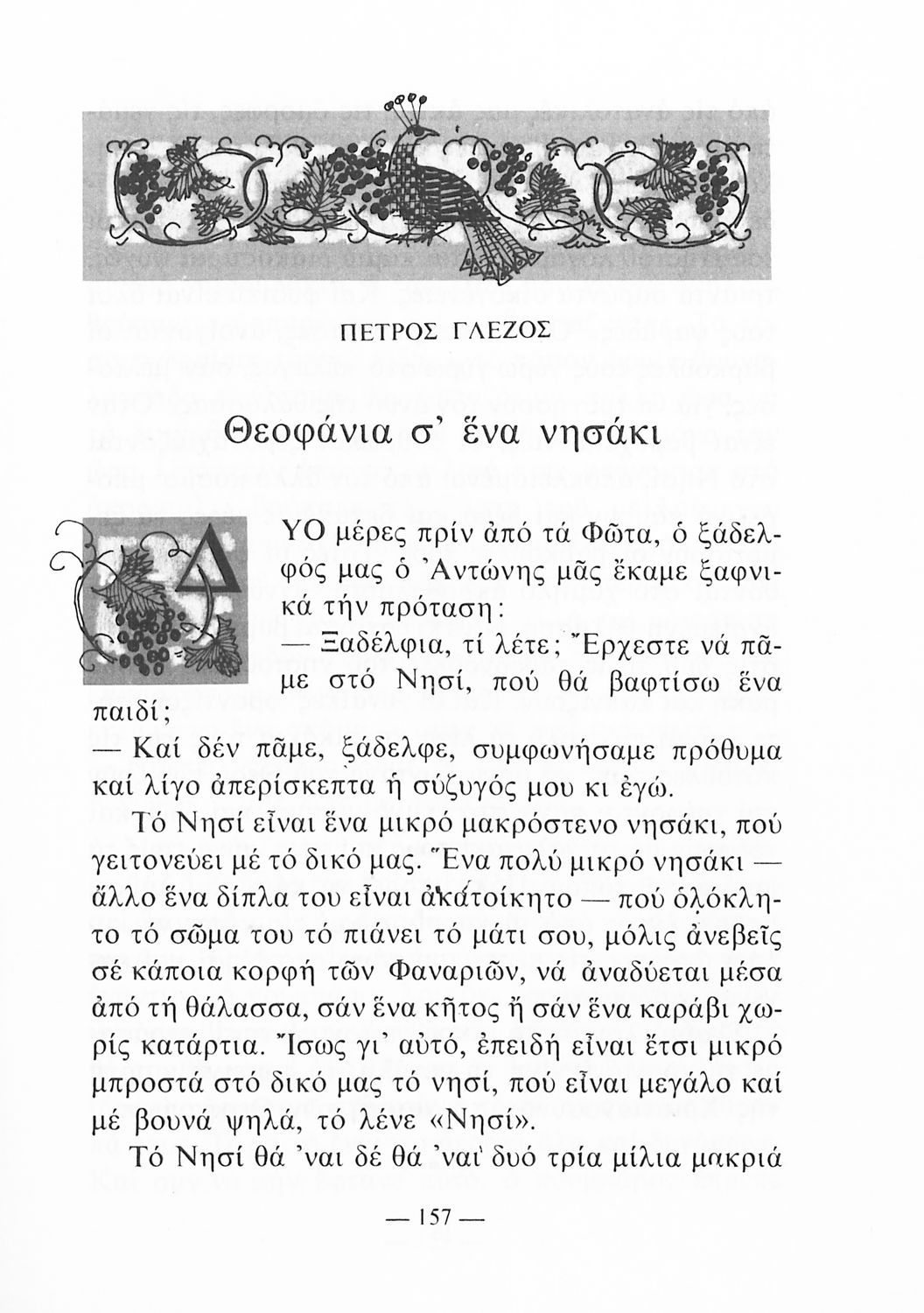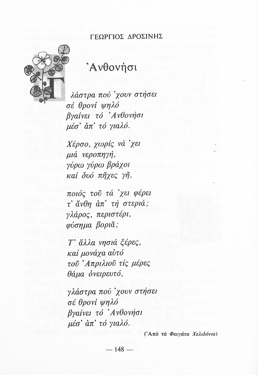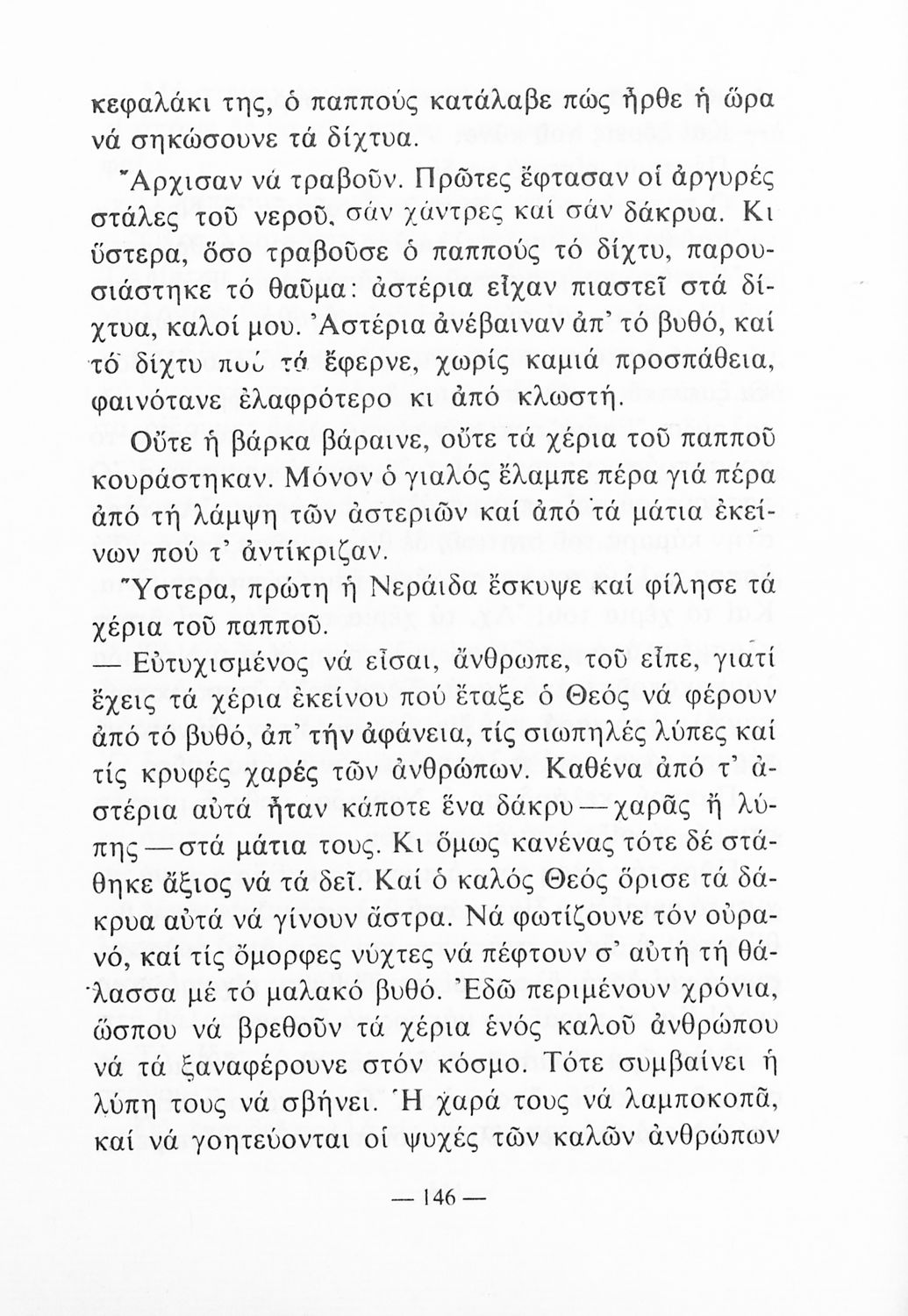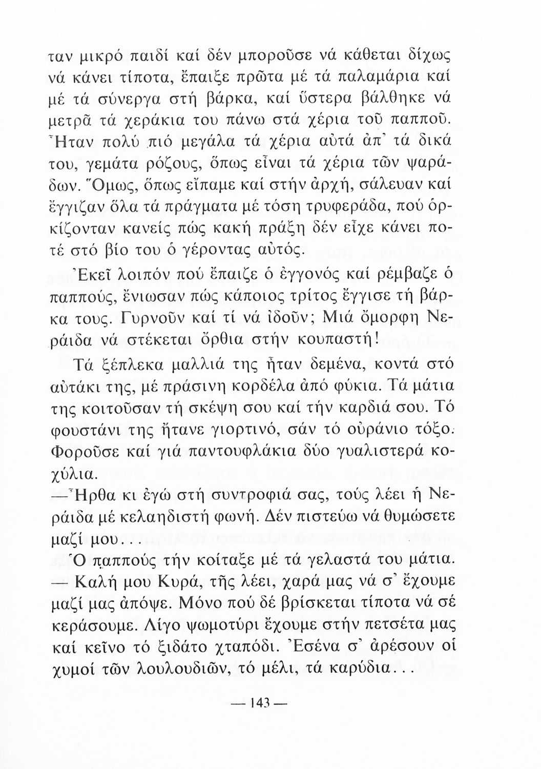 Αναγνωστικό για τους μαθητές της Γ΄ και Δ΄ Δημοτικού που περιλαμβάνει με πεζά και ποιήματα της νέας ελληνικής λογοτεχνίας εμπνευσμένα από την καθημερινότητα των παιδιών και των οικογενειών τους, την ελληνική ιστορία, τις οικογενειακές στιγμές και εορτές, το παιχνίδι, τα επαγγέλματα και τις ασχολίες των ανθρώπων. Το βιβλίο είναι αφιερωμένο στη μνήμη του Γρηγορίου Ξενόπουλου.
