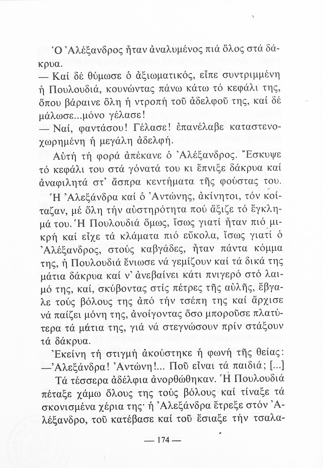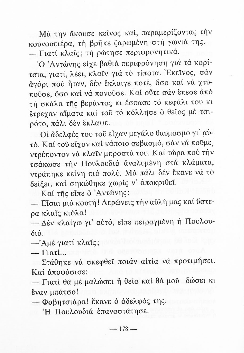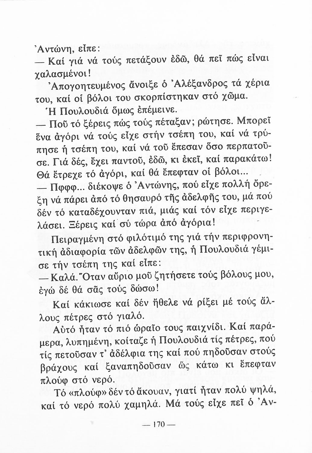 Αναγνωστικό για τους μαθητές της Γ΄ και Δ΄ Δημοτικού που περιλαμβάνει με πεζά και ποιήματα της νέας ελληνικής λογοτεχνίας εμπνευσμένα από την καθημερινότητα των παιδιών και των οικογενειών τους, την ελληνική ιστορία, τις οικογενειακές στιγμές και εορτές, το παιχνίδι, τα επαγγέλματα και τις ασχολίες των ανθρώπων. Το βιβλίο είναι αφιερωμένο στη μνήμη του Γρηγορίου Ξενόπουλου.