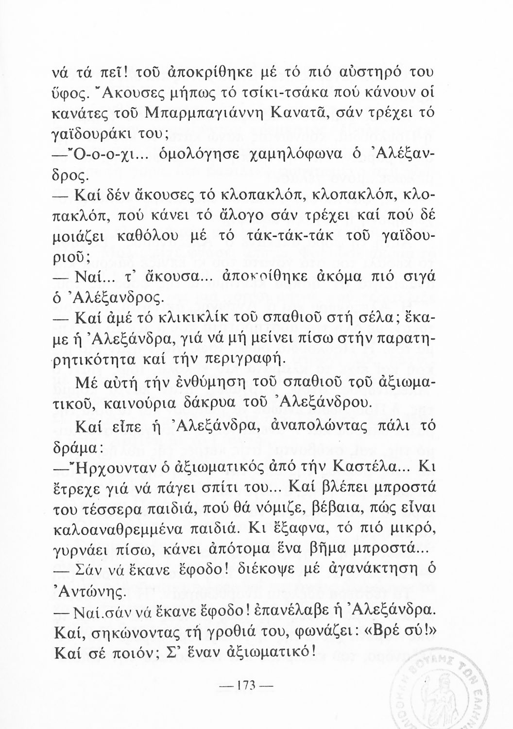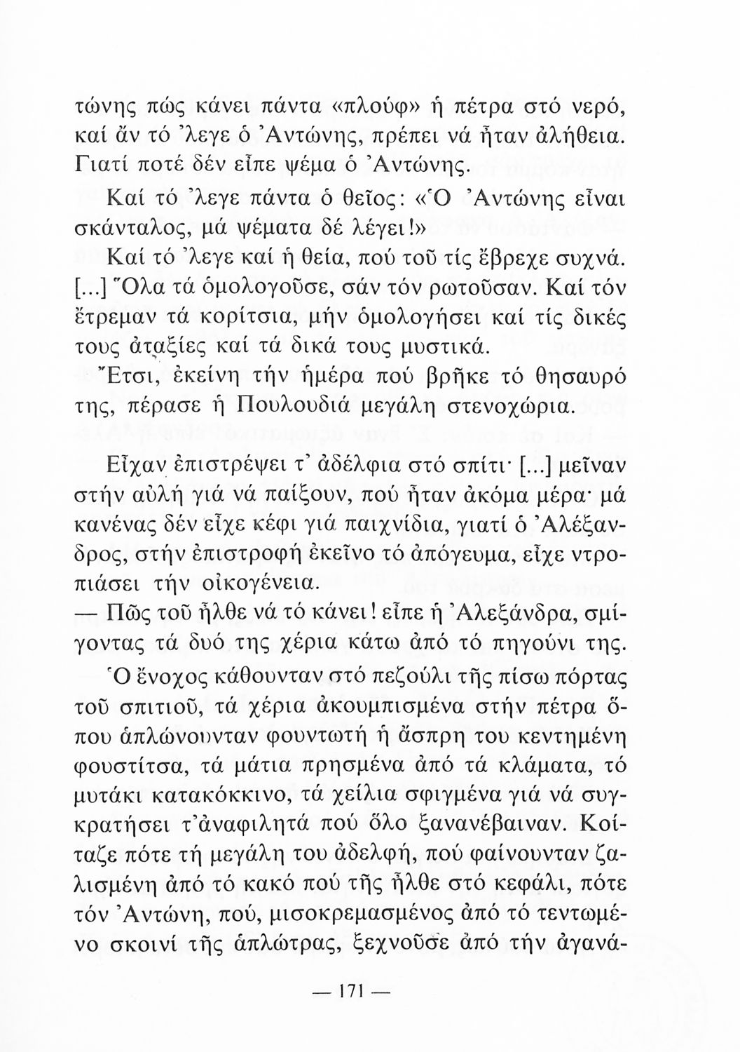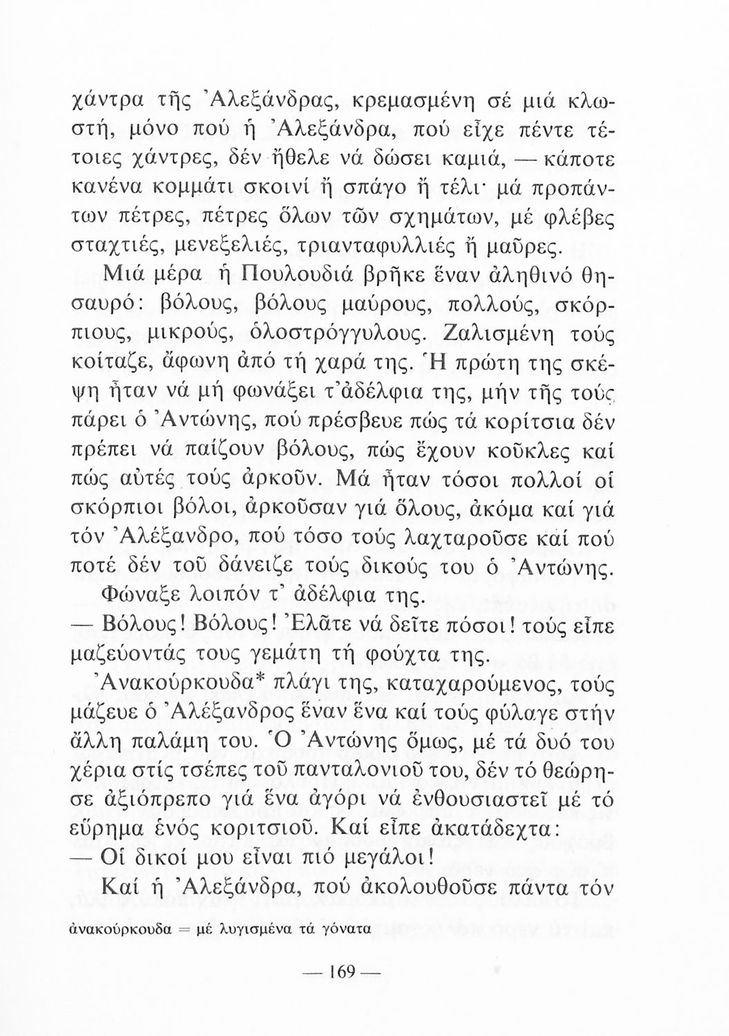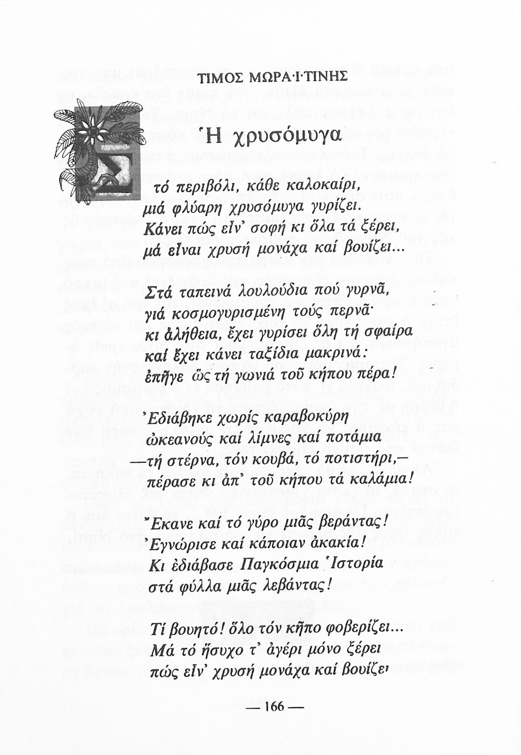 Αναγνωστικό για τους μαθητές της Γ΄ και Δ΄ Δημοτικού που περιλαμβάνει με πεζά και ποιήματα της νέας ελληνικής λογοτεχνίας εμπνευσμένα από την καθημερινότητα των παιδιών και των οικογενειών τους, την ελληνική ιστορία, τις οικογενειακές στιγμές και εορτές, το παιχνίδι, τα επαγγέλματα και τις ασχολίες των ανθρώπων. Το βιβλίο είναι αφιερωμένο στη μνήμη του Γρηγορίου Ξενόπουλου.
