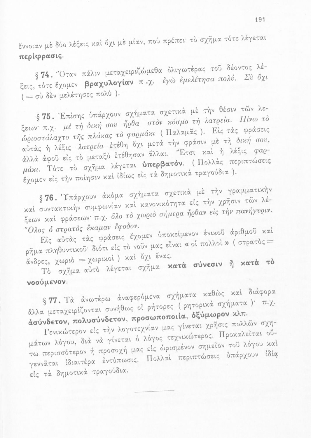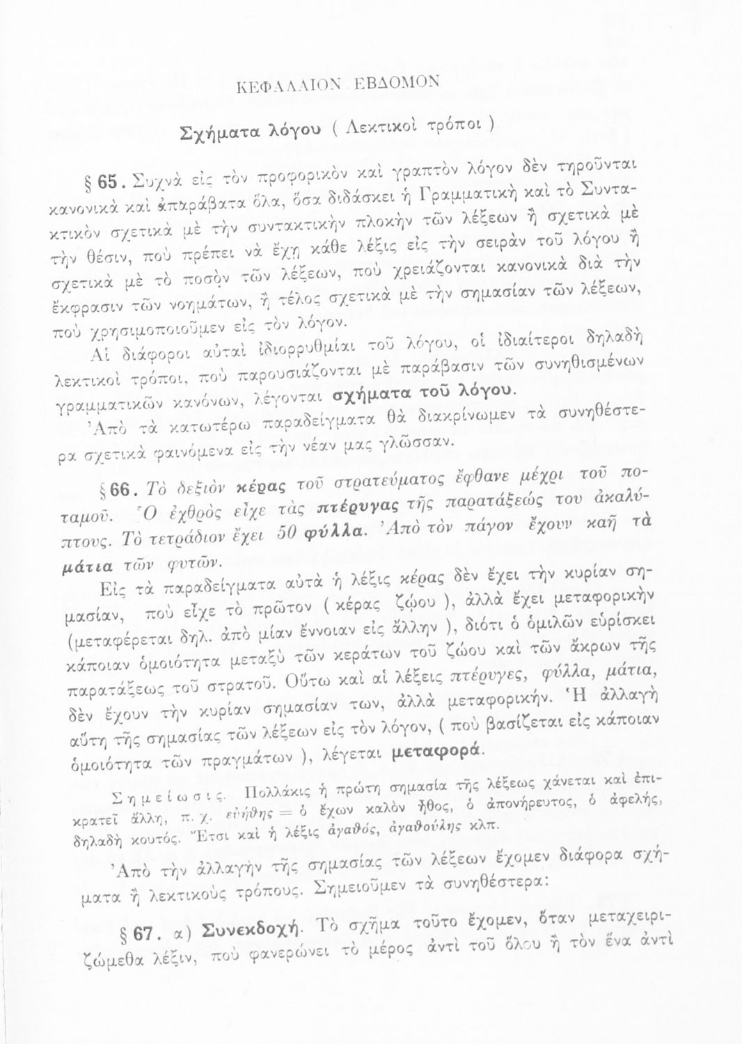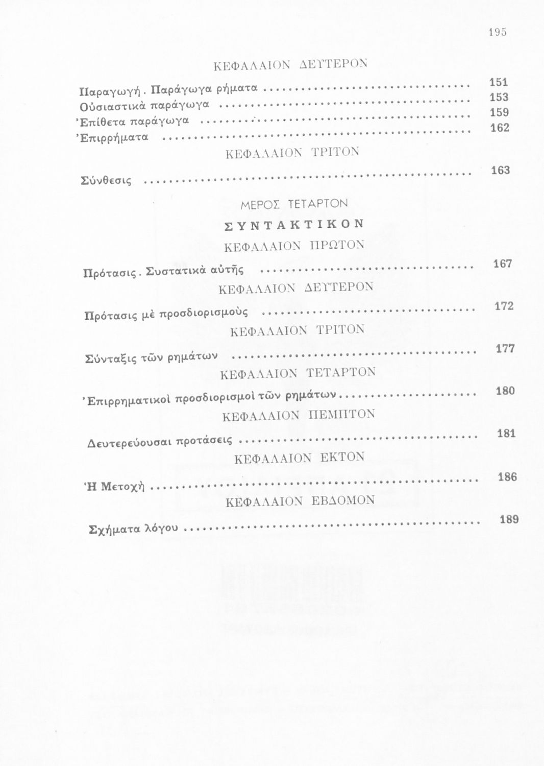 Σχολικό εγχειρίδιο Γλώσσας Δημοτικού που περιλαμβάνει γραμματική και συντακτικό και είναι χωρισμένο σε φθογγολογικό, τυπολογικό και ετυμολογικό μέρος. Φέρει το σύμβολο της δικτατορίας.