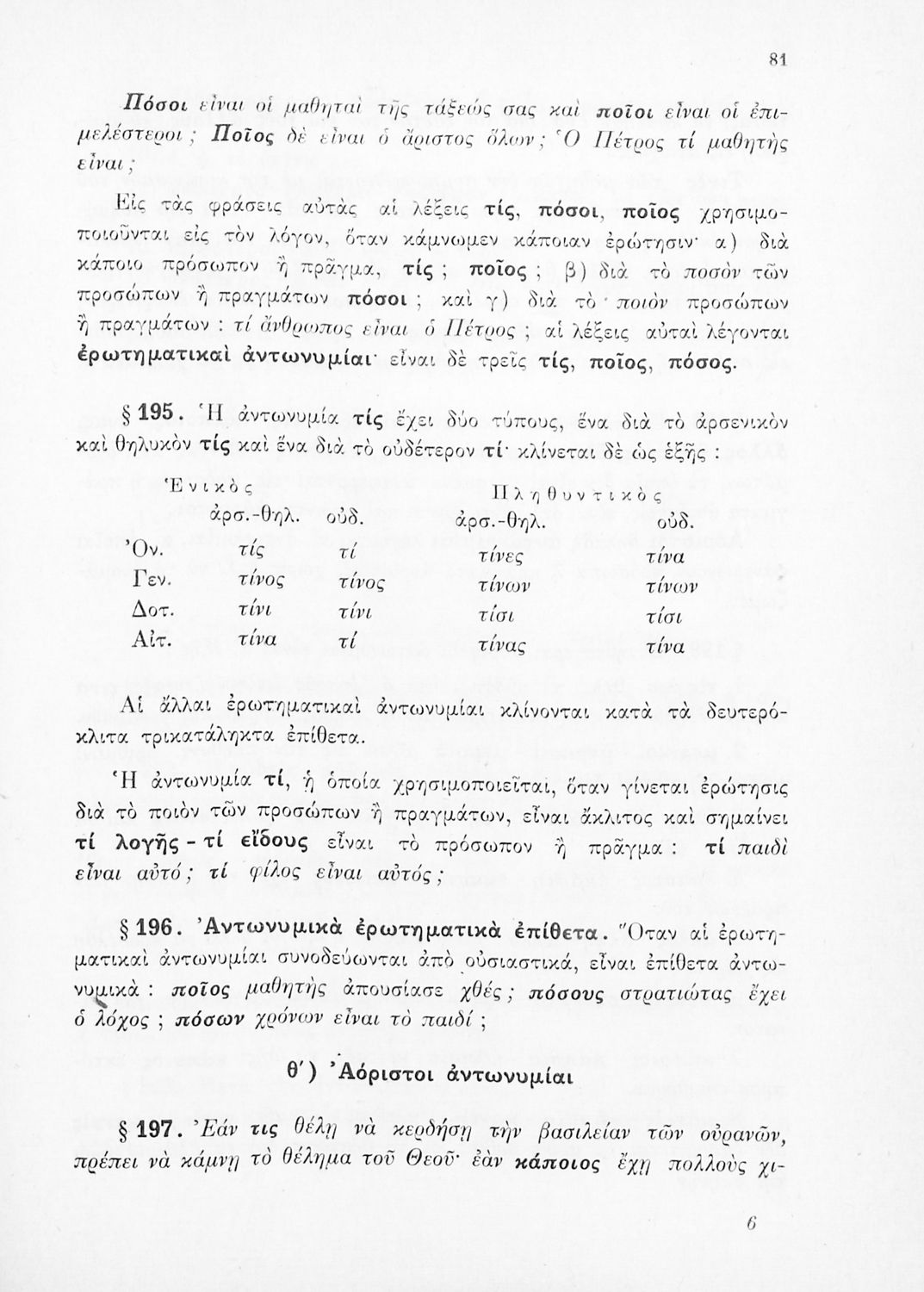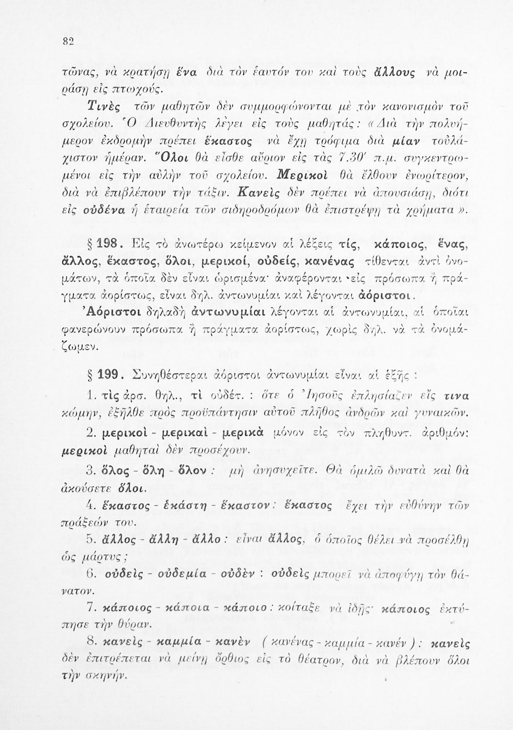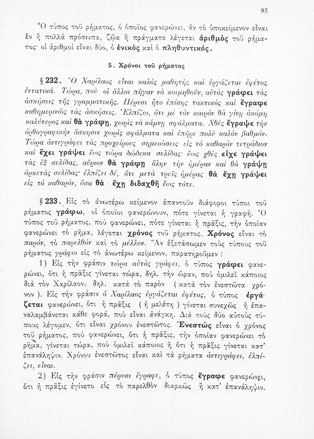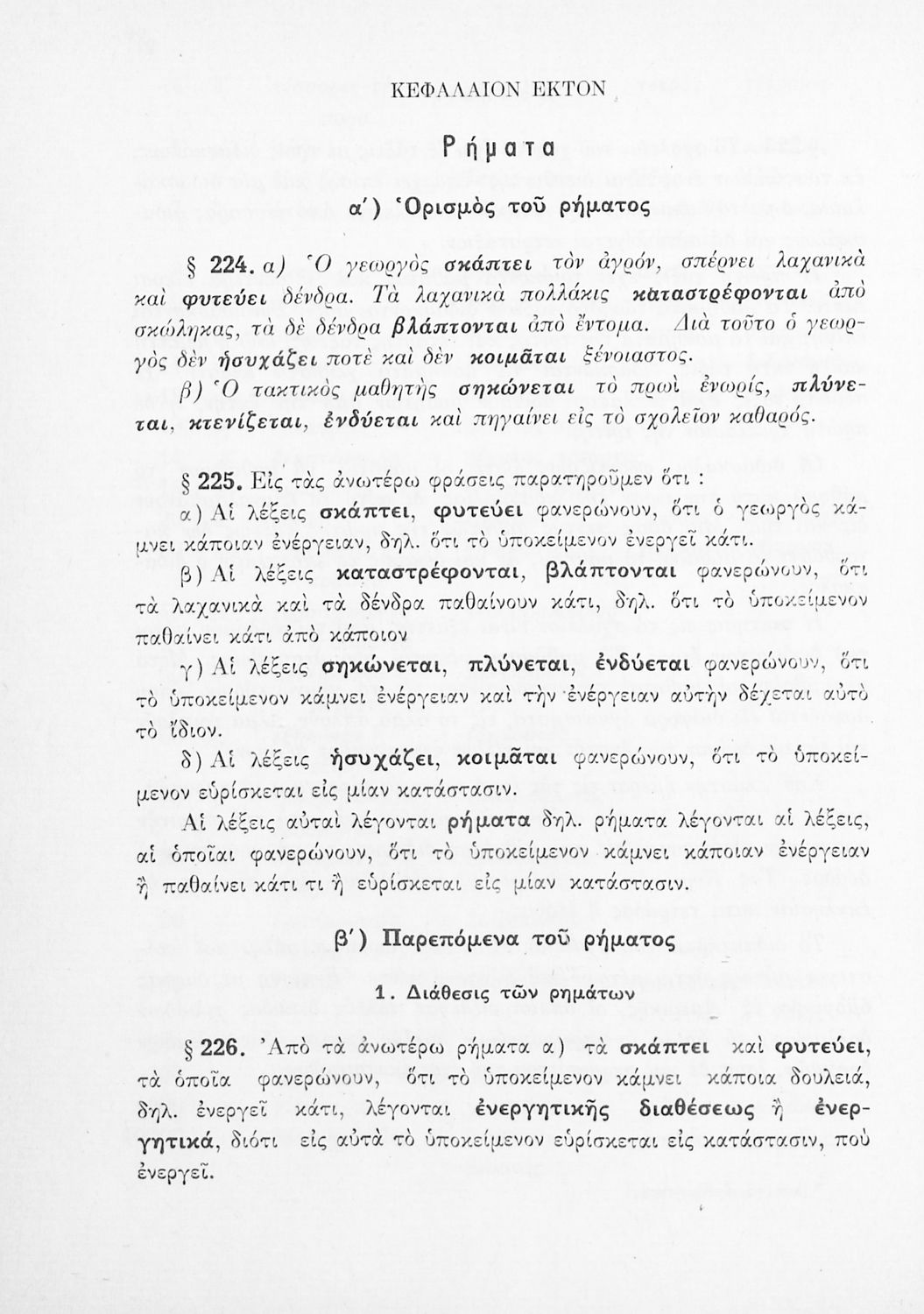 Σχολικό εγχειρίδιο Γλώσσας Δημοτικού που περιλαμβάνει τους κανόνες της γραμματικής και του συντακτικού της καθαρεύουσας.