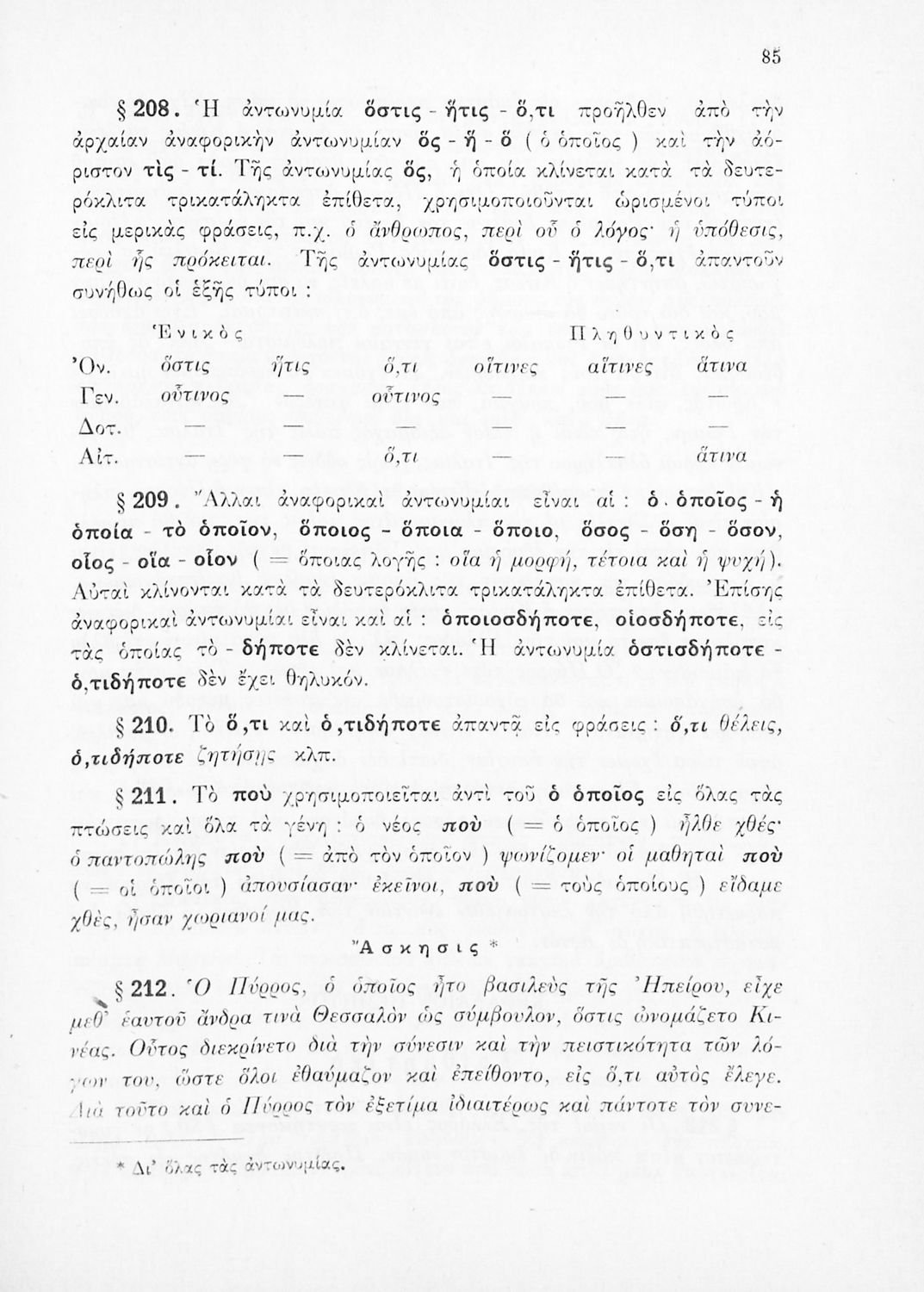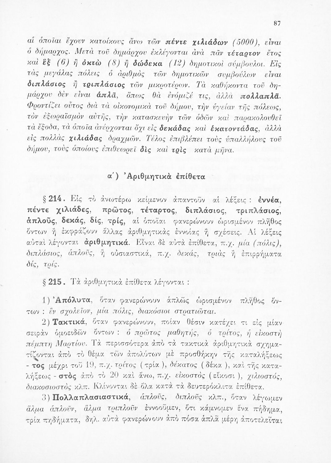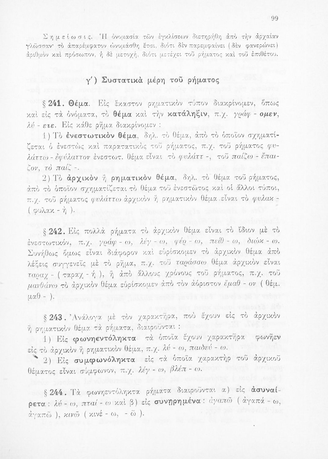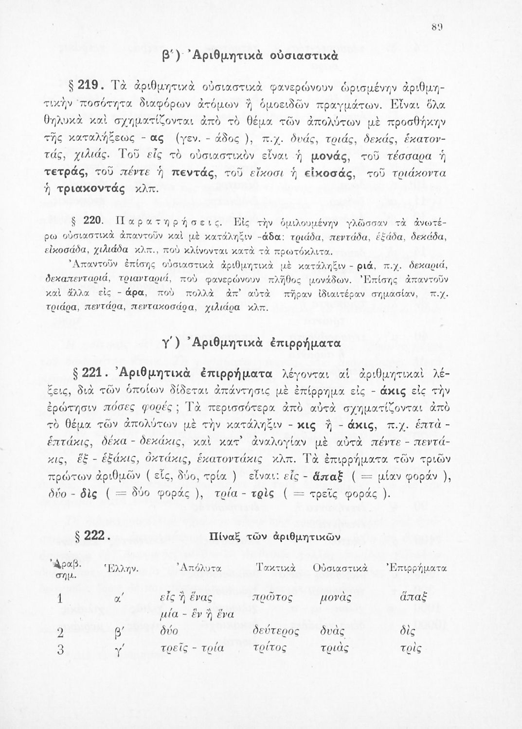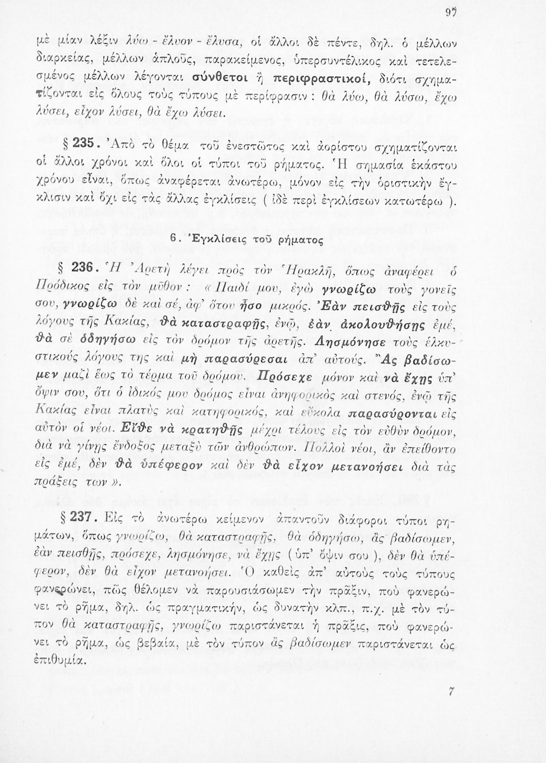 Σχολικό εγχειρίδιο Γλώσσας Δημοτικού που περιλαμβάνει τους κανόνες της γραμματικής και του συντακτικού της καθαρεύουσας.
