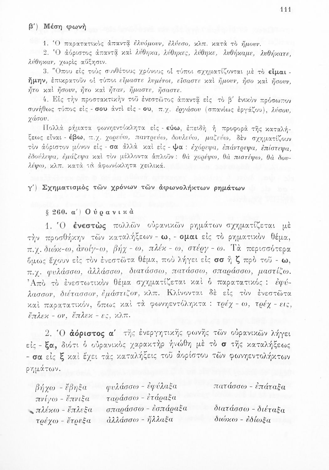 Σχολικό εγχειρίδιο Γλώσσας Δημοτικού που περιλαμβάνει γραμματική και συντακτικό και είναι χωρισμένο σε φθογγολογικό, τυπολογικό και ετυμολογικό μέρος. Φέρει το σύμβολο της δικτατορίας.