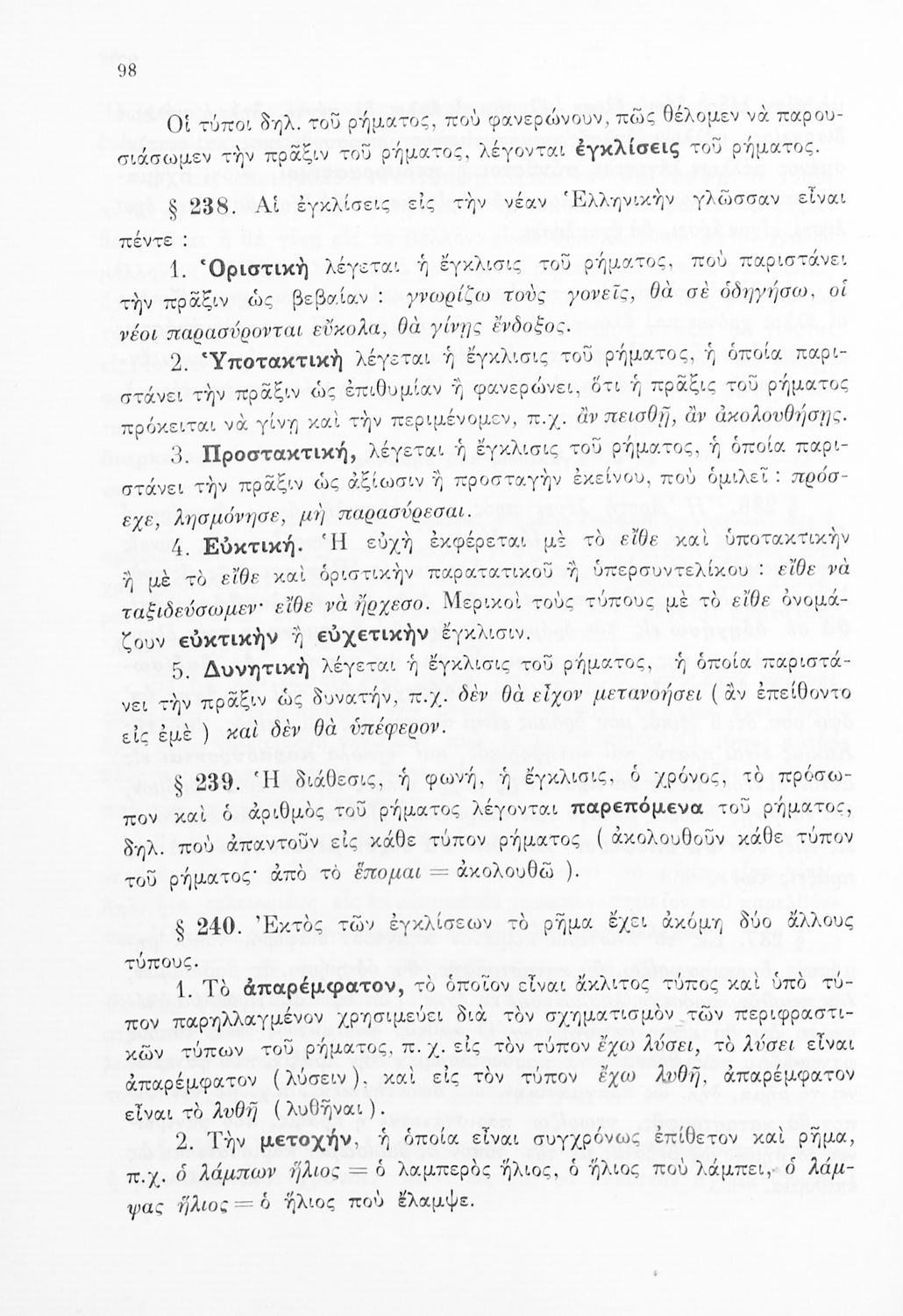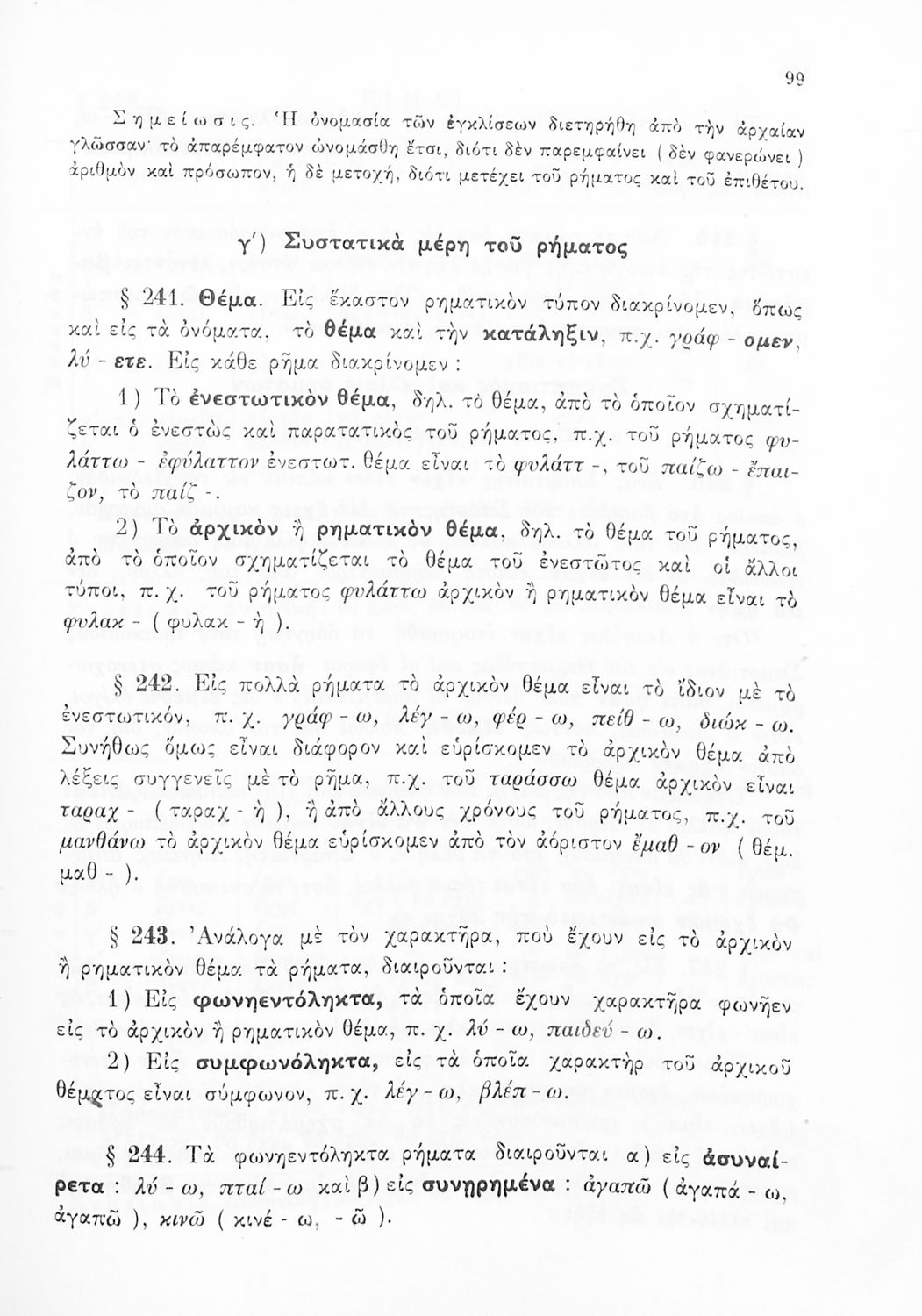 Παρουσίαση περιεχομένου: Σχολικό εγχειρίδιο Γλώσσας Δημοτικού που περιλαμβάνει τους κανόνες της γραμματικής και του συντακτικού της καθαρεύουσας.