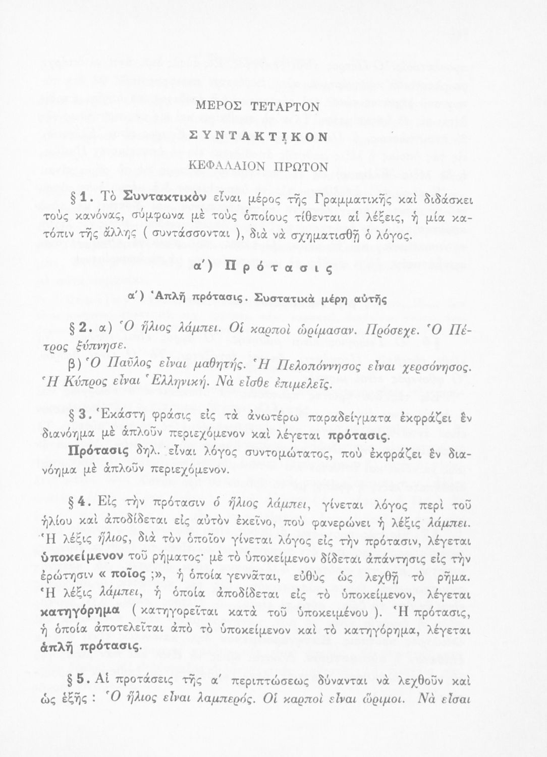 Παρουσίαση περιεχομένου: Σχολικό εγχειρίδιο Γλώσσας Δημοτικού που περιλαμβάνει τους κανόνες της γραμματικής και του συντακτικού της καθαρεύουσας.