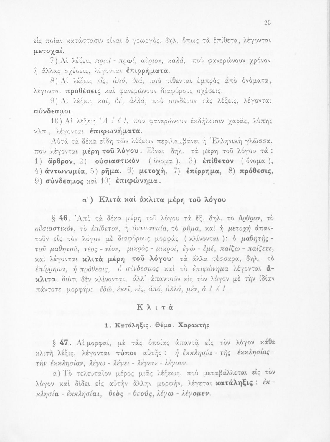 Παρουσίαση περιεχομένου: Σχολικό εγχειρίδιο Γλώσσας Δημοτικού που περιλαμβάνει τους κανόνες της γραμματικής και του συντακτικού της καθαρεύουσας.