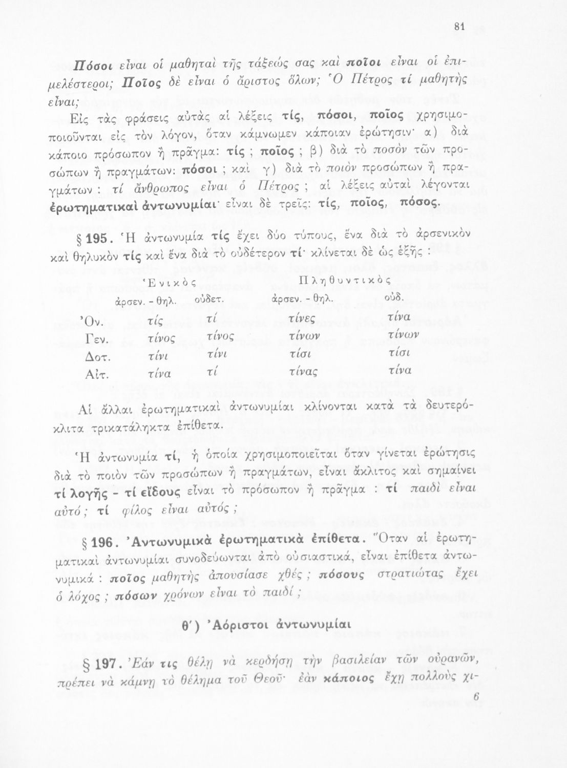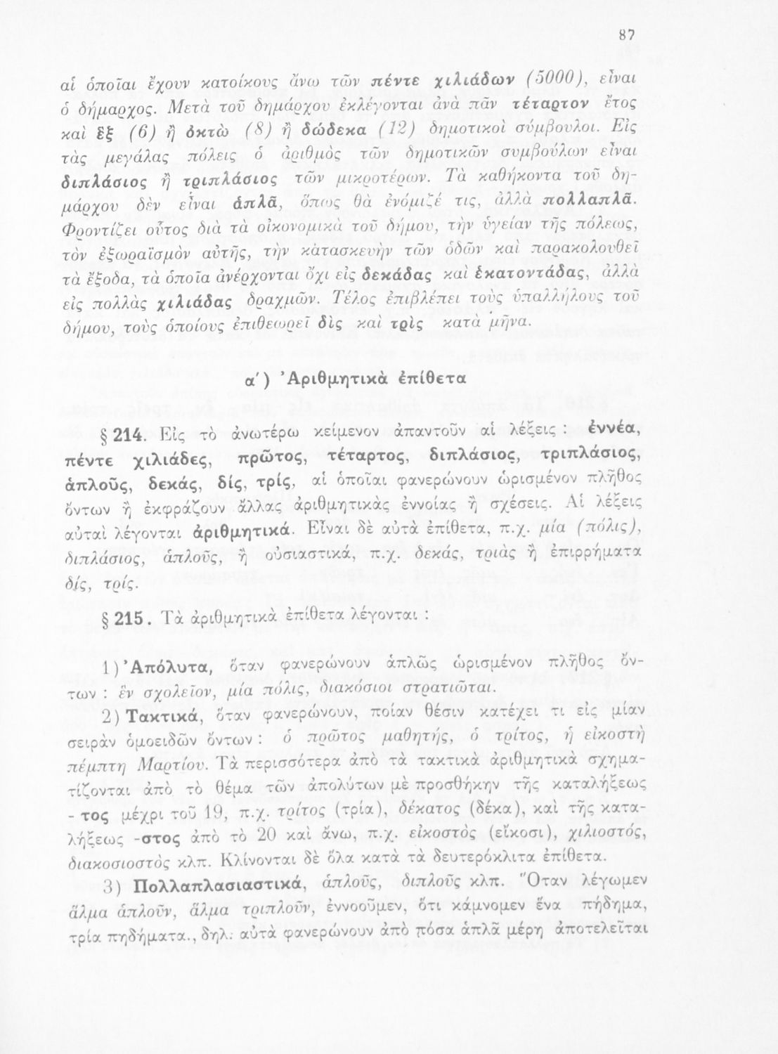 Σχολικό εγχειρίδιο Γλώσσας Δημοτικού που περιλαμβάνει τους κανόνες της γραμματικής και του συντακτικού της καθαρεύουσας.