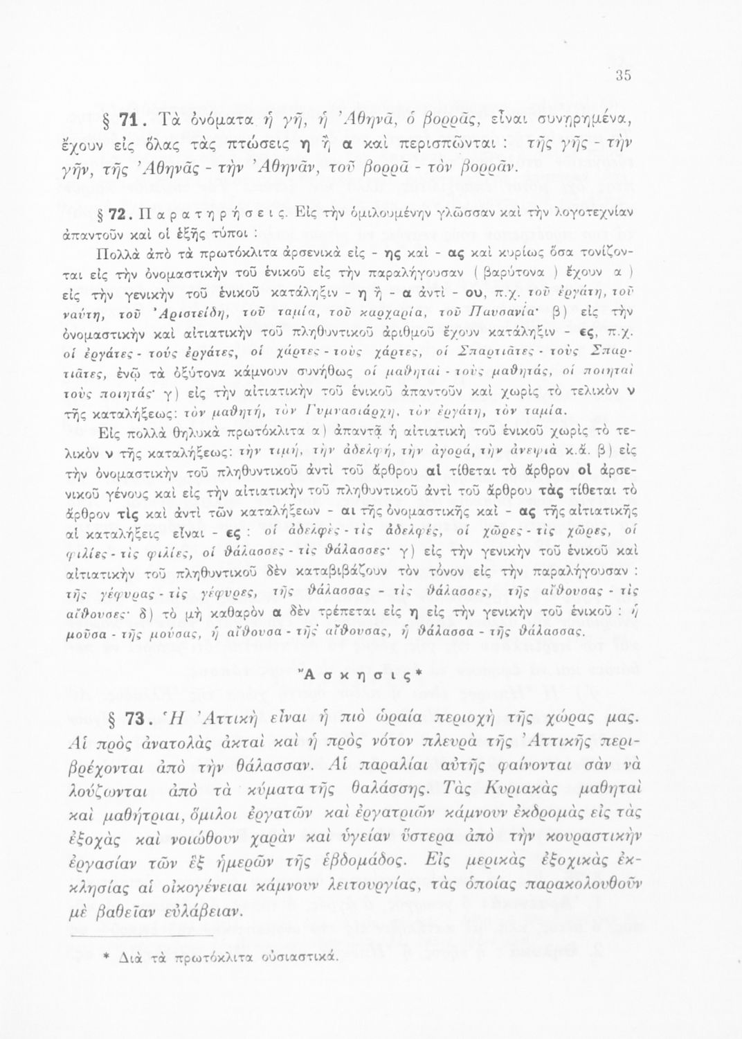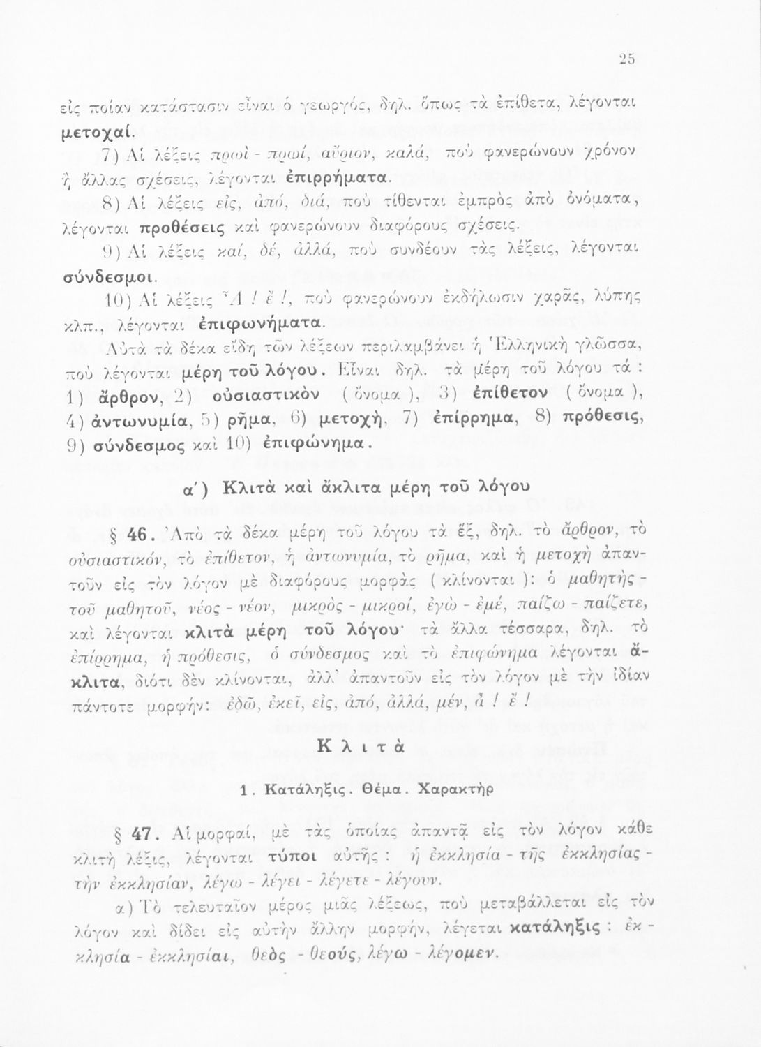 Σχολικό εγχειρίδιο Γλώσσας Δημοτικού που περιλαμβάνει τους κανόνες της γραμματικής και του συντακτικού της καθαρεύουσας.
