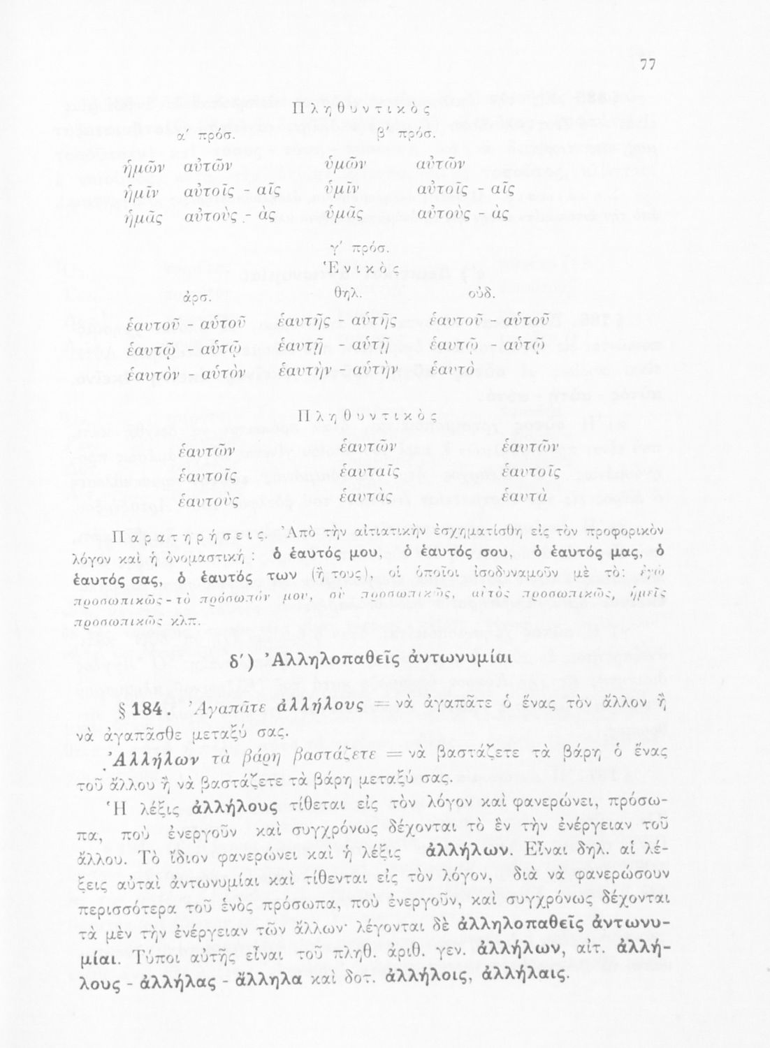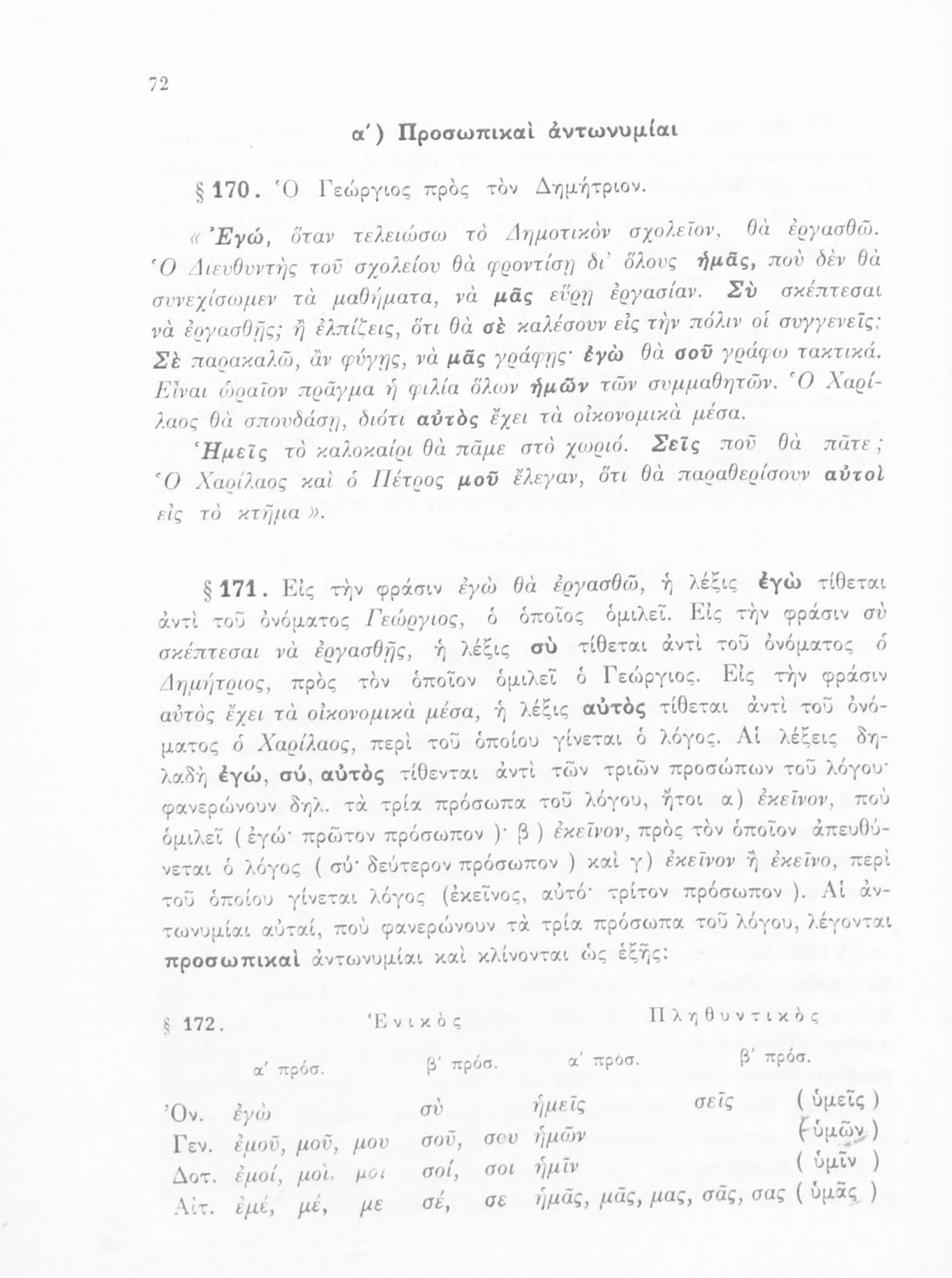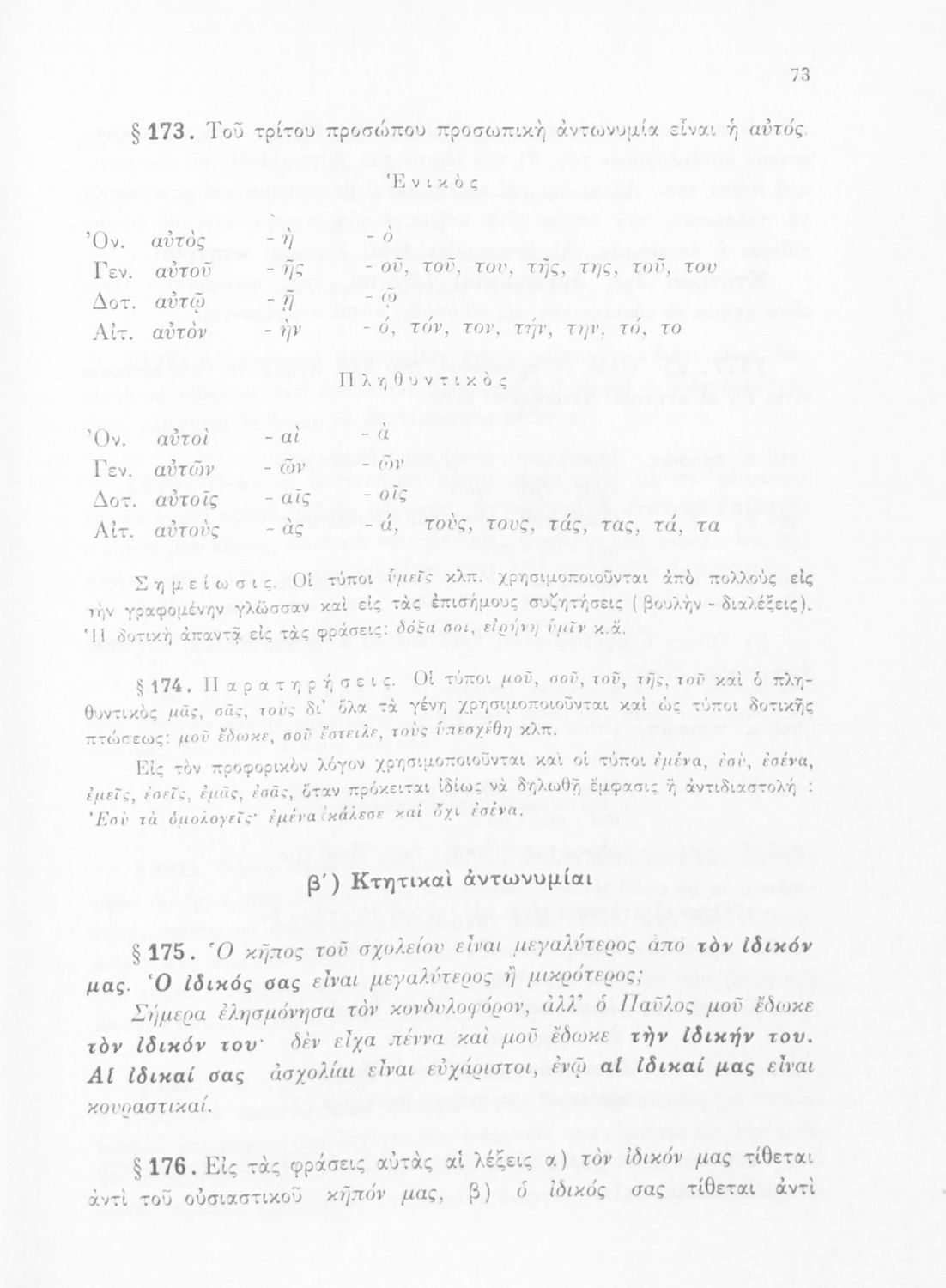 Σχολικό εγχειρίδιο Γλώσσας Δημοτικού που περιλαμβάνει τους κανόνες της γραμματικής και του συντακτικού της καθαρεύουσας.