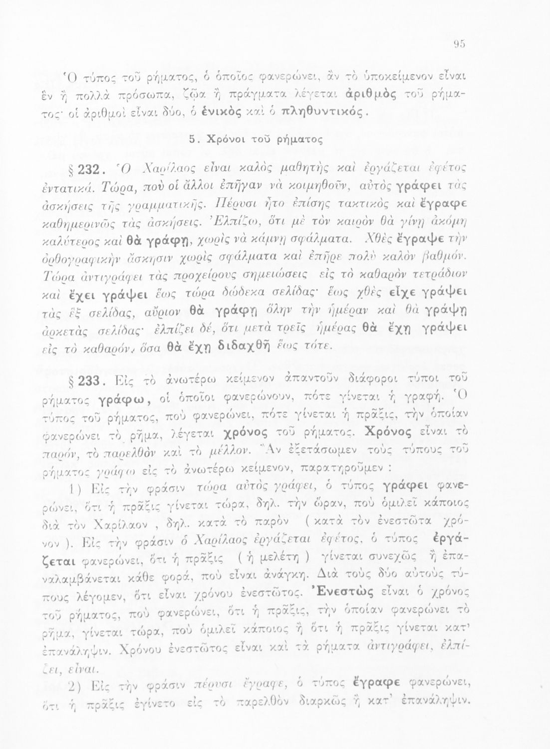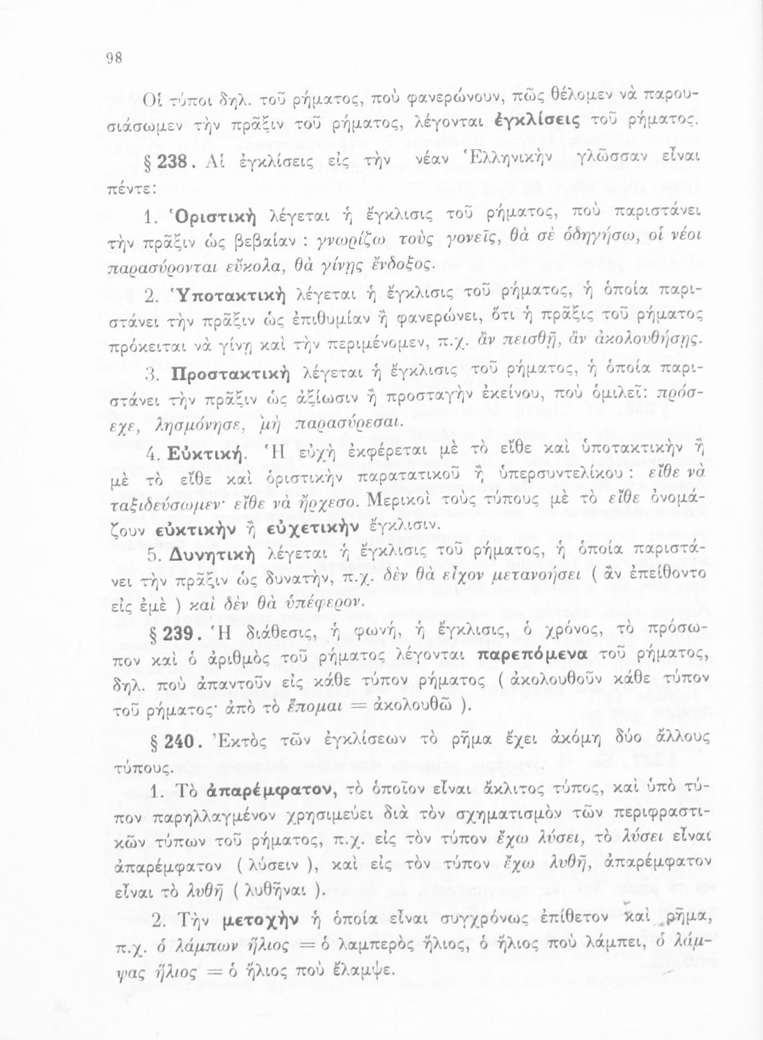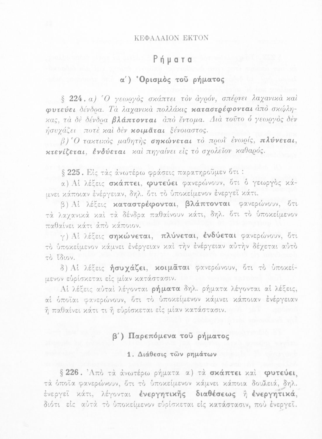 Σχολικό εγχειρίδιο Γλώσσας Δημοτικού που περιλαμβάνει γραμματική και συντακτικό και είναι χωρισμένο σε φθογγολογικό, τυπολογικό και ετυμολογικό μέρος. Φέρει το σύμβολο της δικτατορίας.