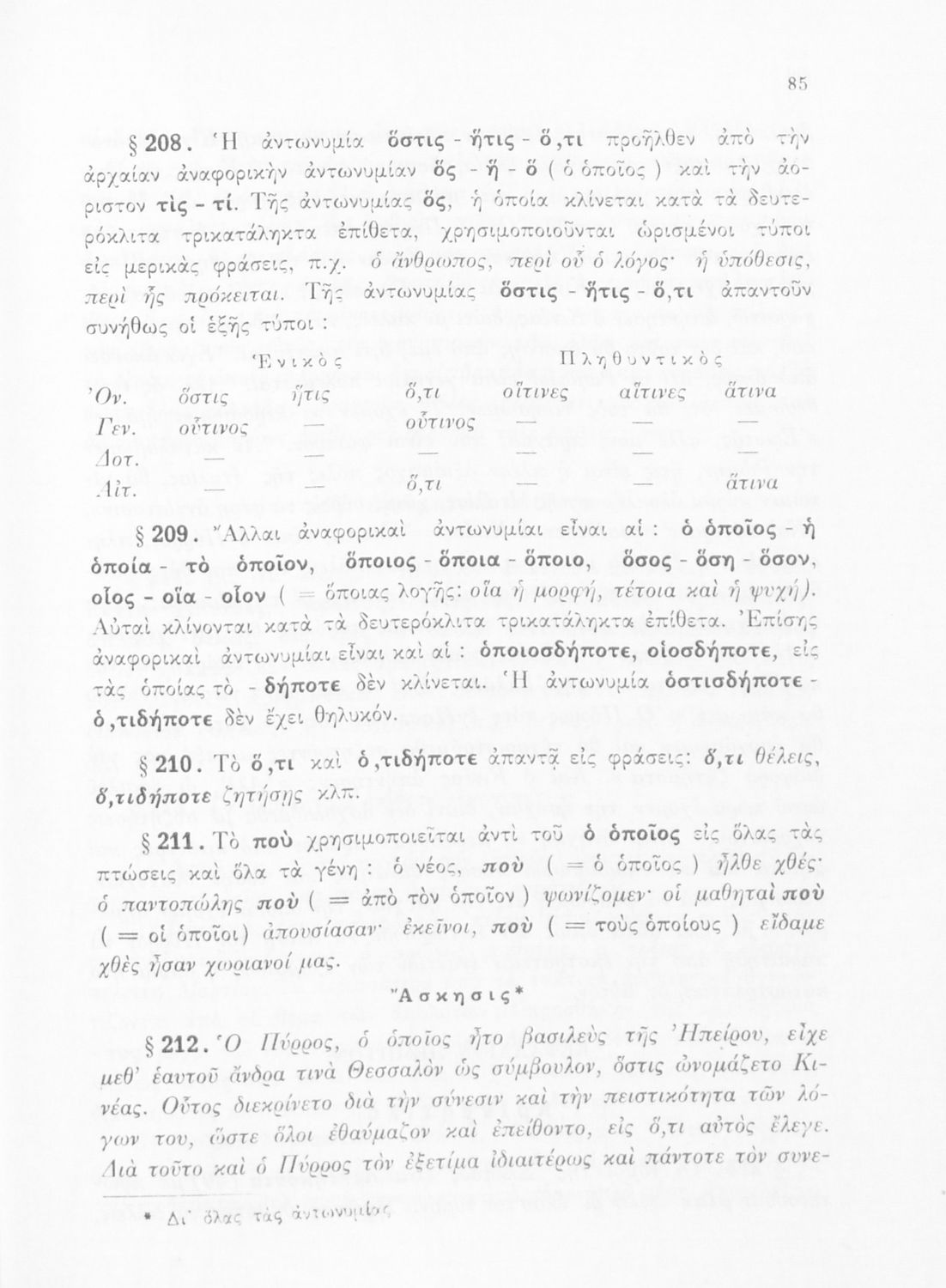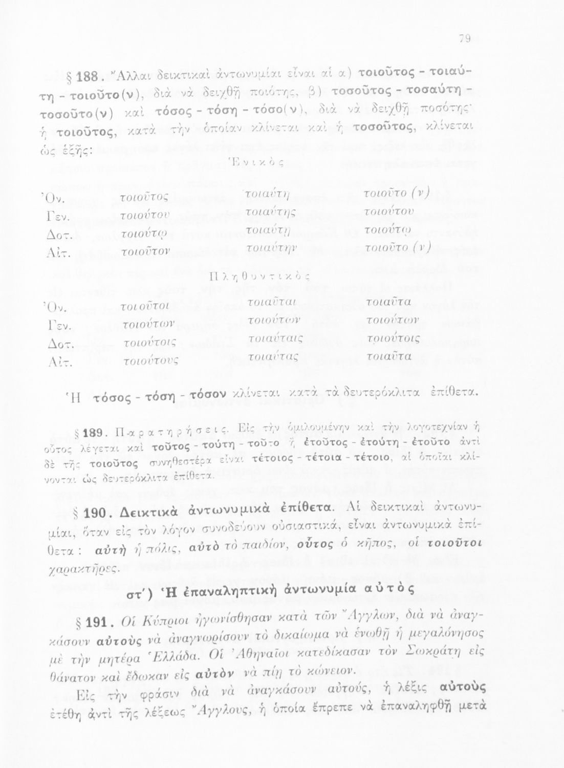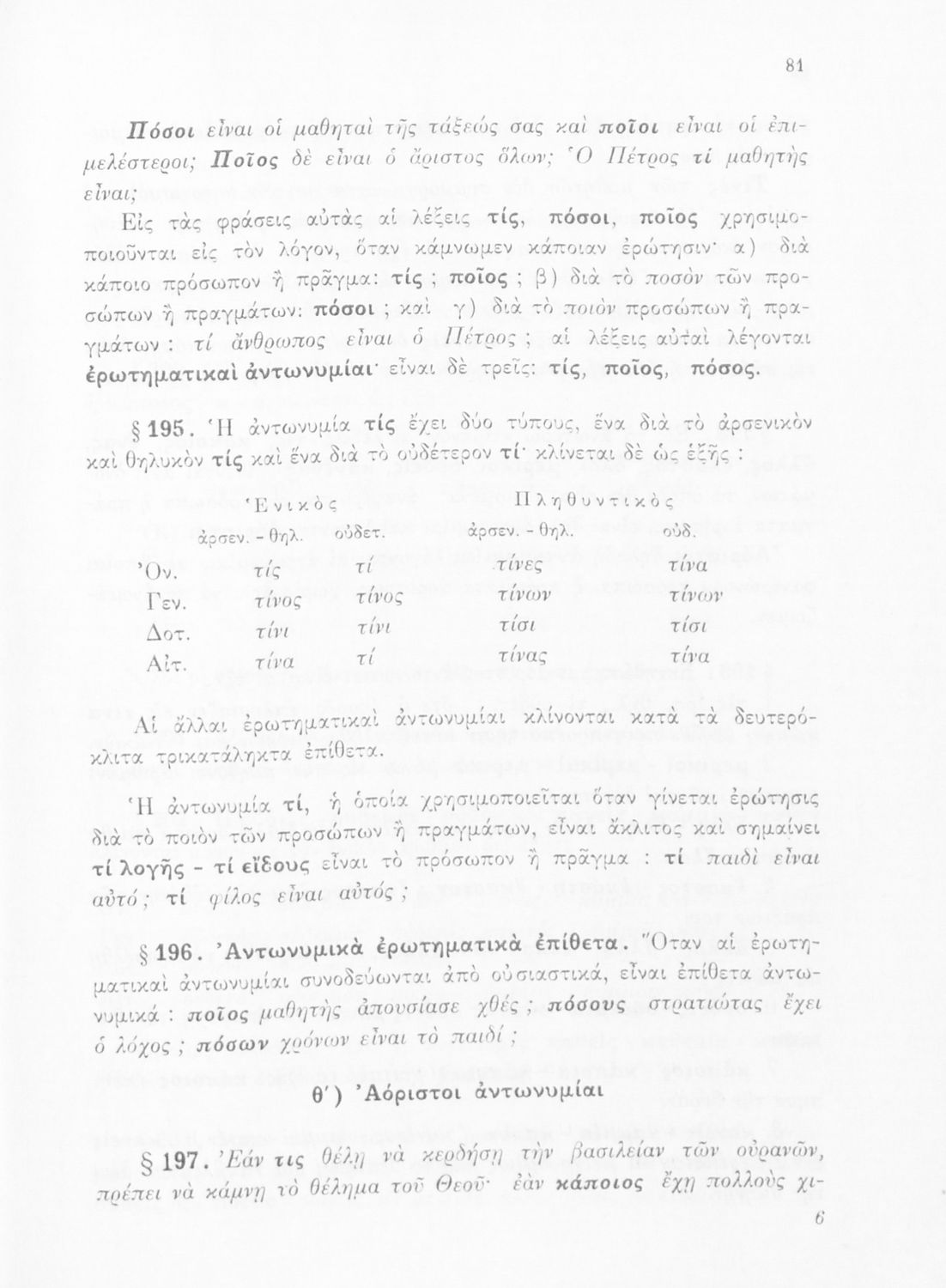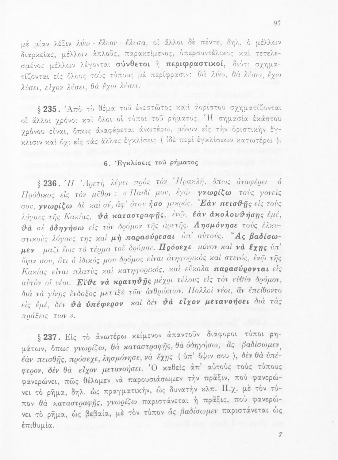 Σχολικό εγχειρίδιο Γλώσσας Δημοτικού που περιλαμβάνει γραμματική και συντακτικό και είναι χωρισμένο σε φθογγολογικό, τυπολογικό και ετυμολογικό μέρος. Φέρει το σύμβολο της δικτατορίας.