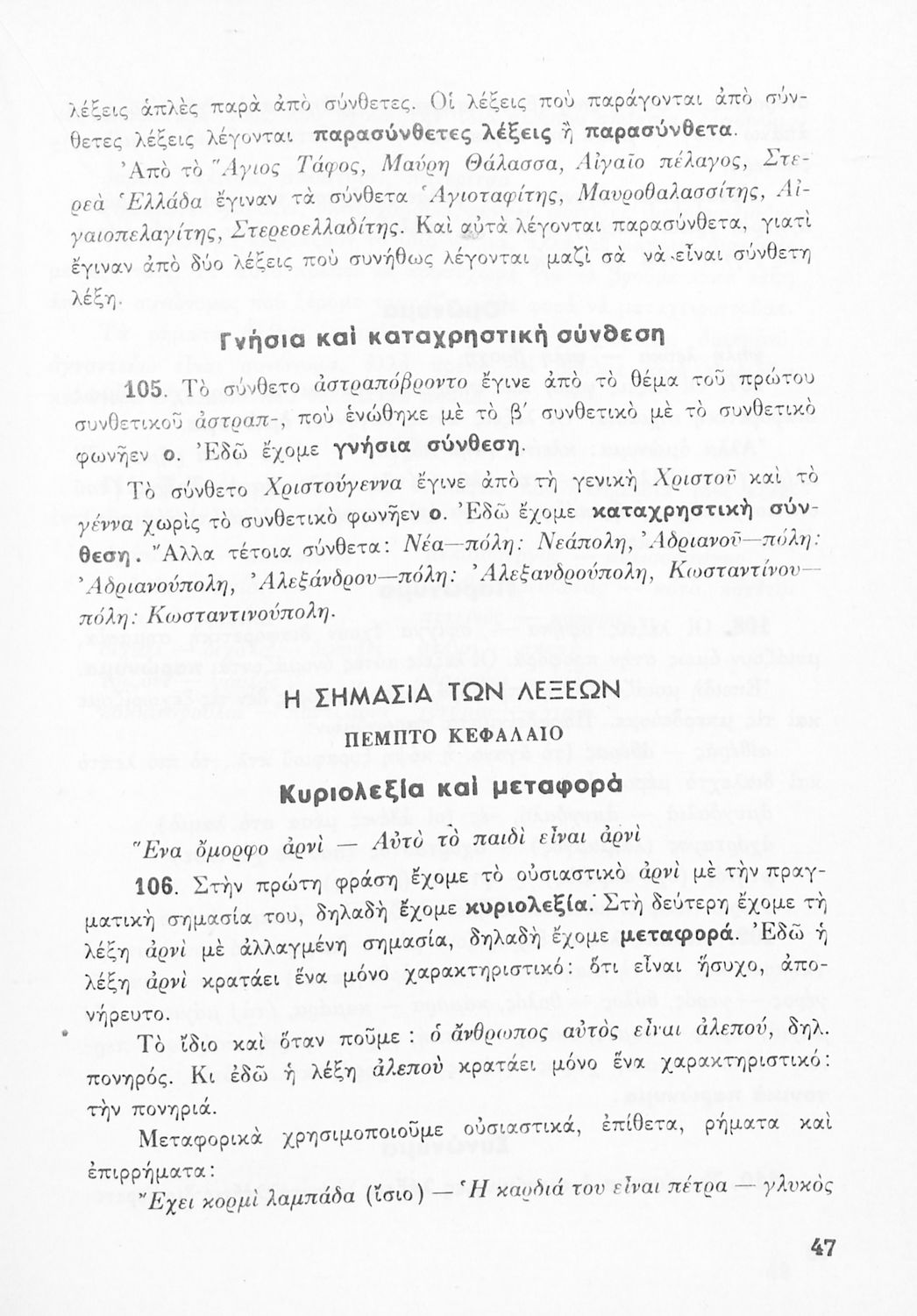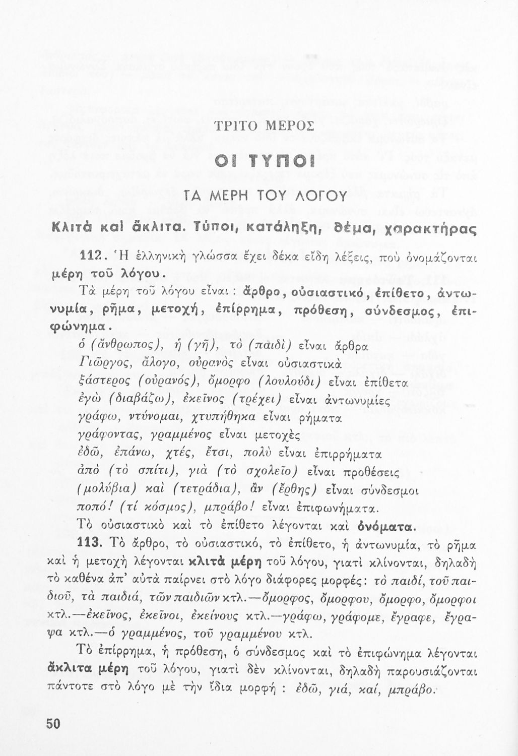 Μαθητικό βοήθημα Γραμματικής για τους μαθητές της Ε΄ και ΣΤ΄ τάξης του Δημοτικού. Περιέχει τη διδασκαλία της γραμματικής της καθαρεύουσας.
