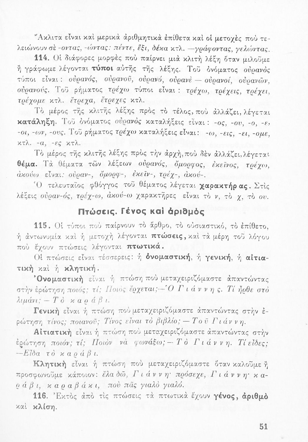 Σχολικό εγχειρίδιο γραμματικής για τους μαθητές της Ε΄ και ΣΤ΄ τάξης του Δημοτικού. Περιέχει τη διδασκαλία της γραμματικής της καθαρεύουσας με κανόνες και παραδείγματα.