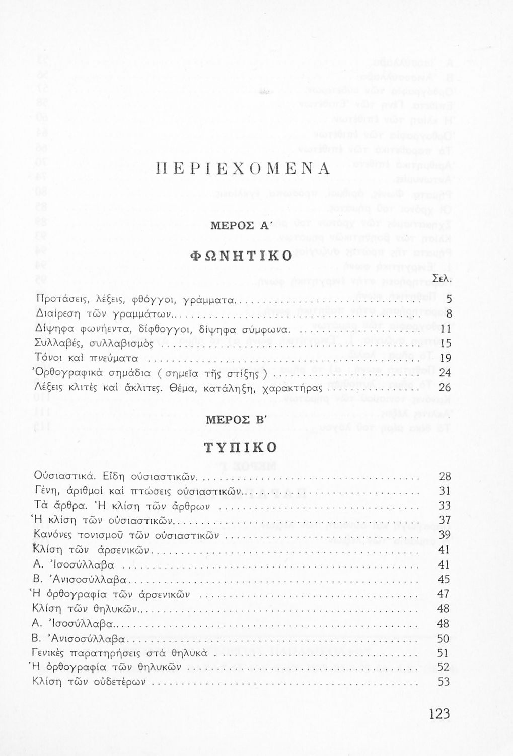 Σχολικό εγχειρίδιο Γ΄ και Δ΄ Δημοτικού που περιλαμβάνει τους κανόνες γραμματικής και τη δομή της νέας ελληνικής και είναι χωρισμένο στο φωνητικό, τυπικό και παραγωγικό μέρος.