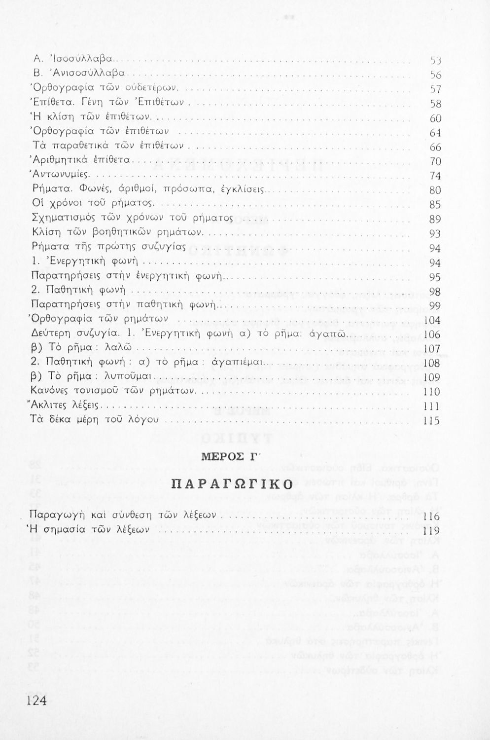 520 ## _aΣχολικό εγχειρίδιο Γ΄ και Δ΄ Δημοτικού που περιλαμβάνει τους κανόνες γραμματικής και τη δομή της νέας ελληνικής και είναι χωρισμένο στο φωνητικό, τυπικό και παραγωγικό μέρος.