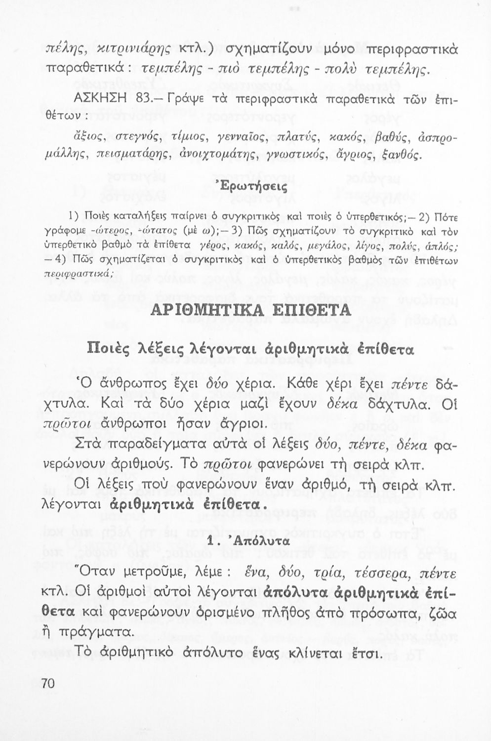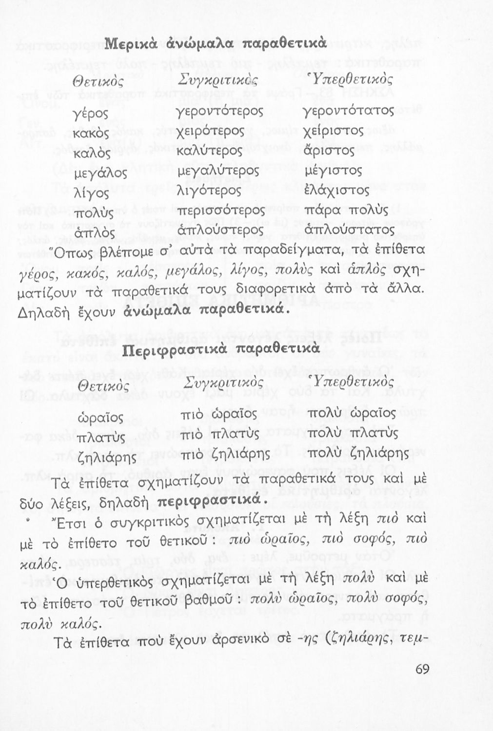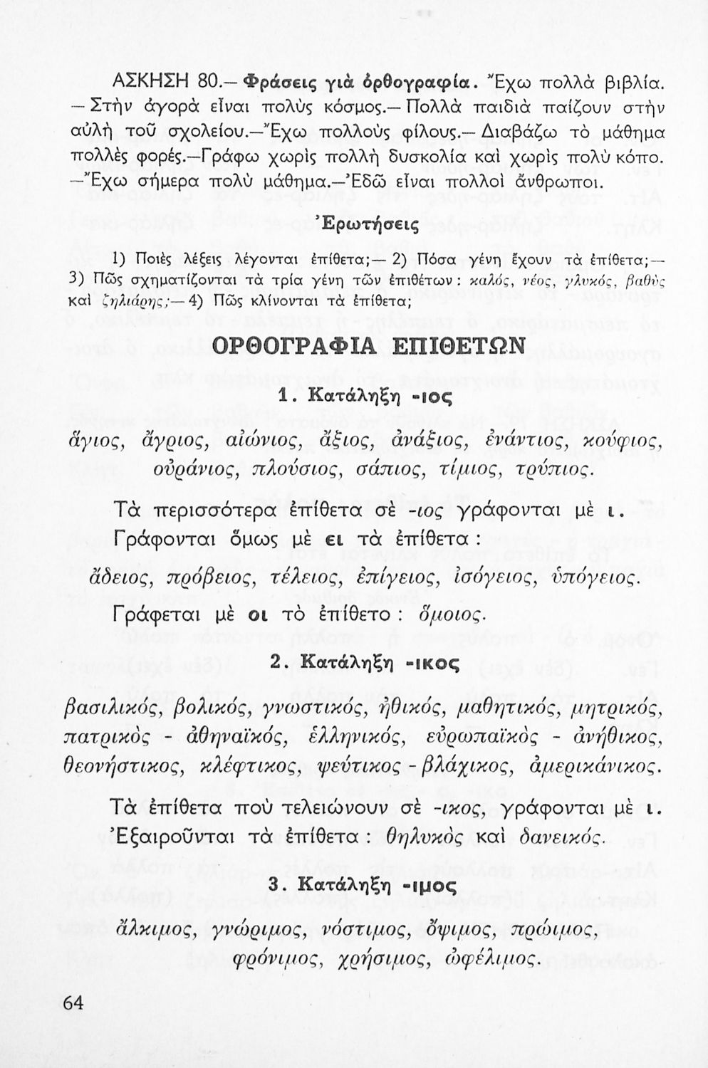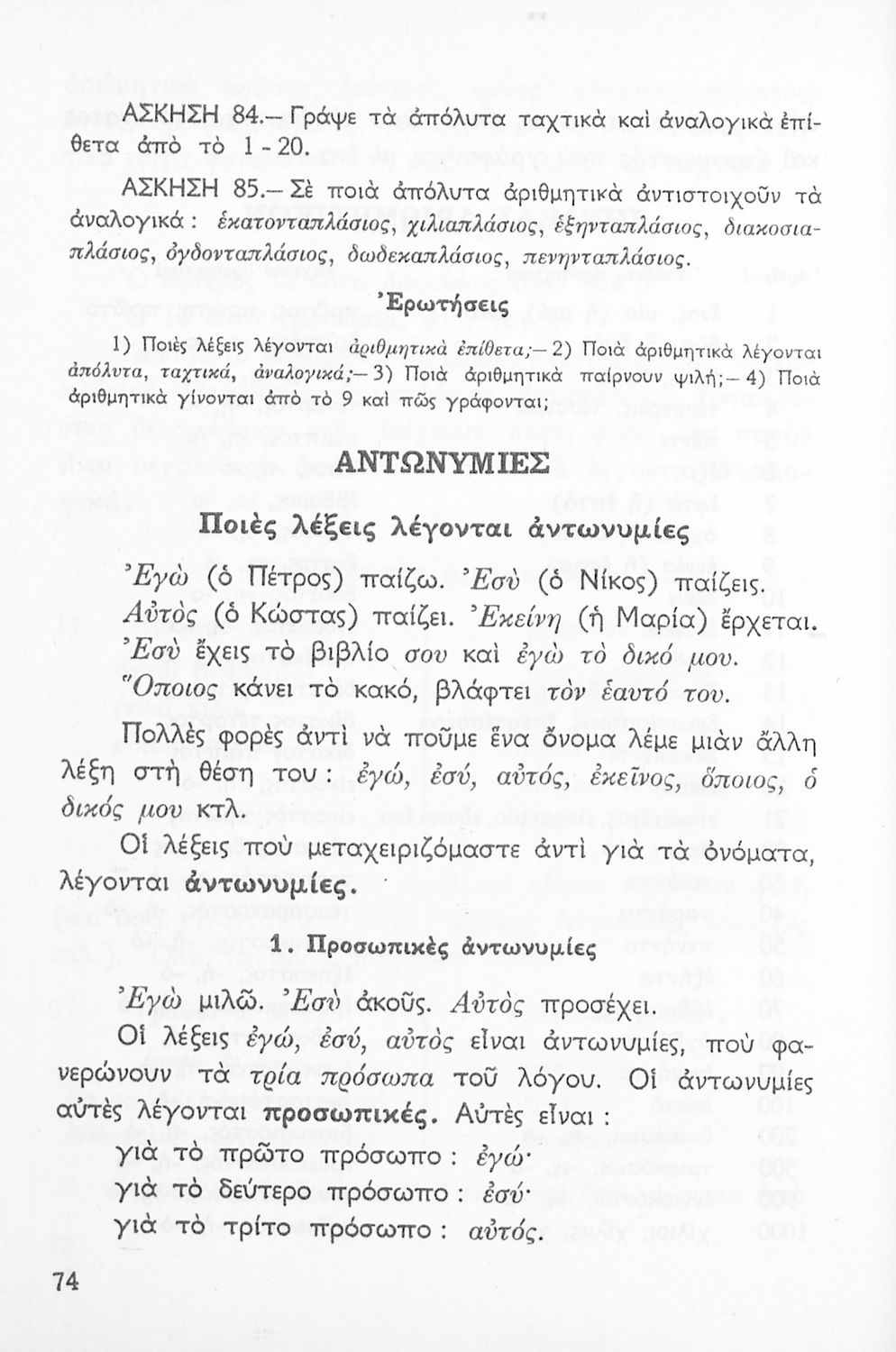 Σχολικό εγχειρίδιο Γ΄ και Δ΄ Δημοτικού που περιλαμβάνει τους κανόνες γραμματικής και τη δομή της νέας ελληνικής και είναι χωρισμένο στο φωνητικό, τυπικό και παραγωγικό μέρος.
