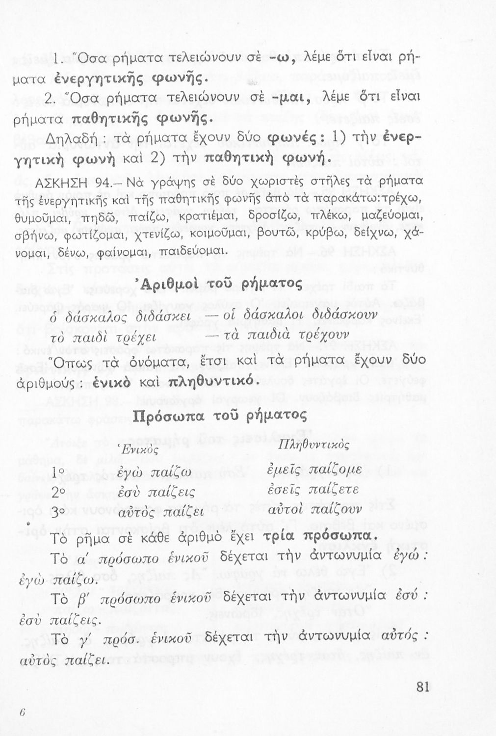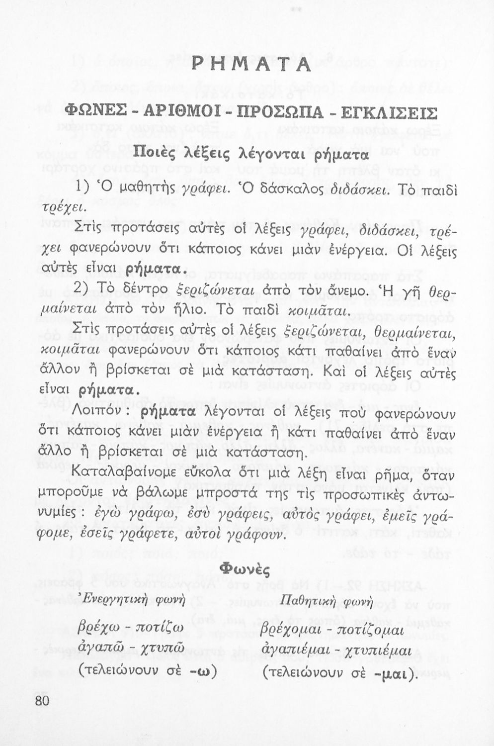 Σχολικό εγχειρίδιο Γλώσσας Γ΄ και Δ΄ Δημοτικού που περιλαμβάνει τους κανόνες γραμματικής και τη δομή της νέας ελληνικής και είναι χωρισμένο στο φωνητικό, τυπικό και παραγωγικό μέρος.