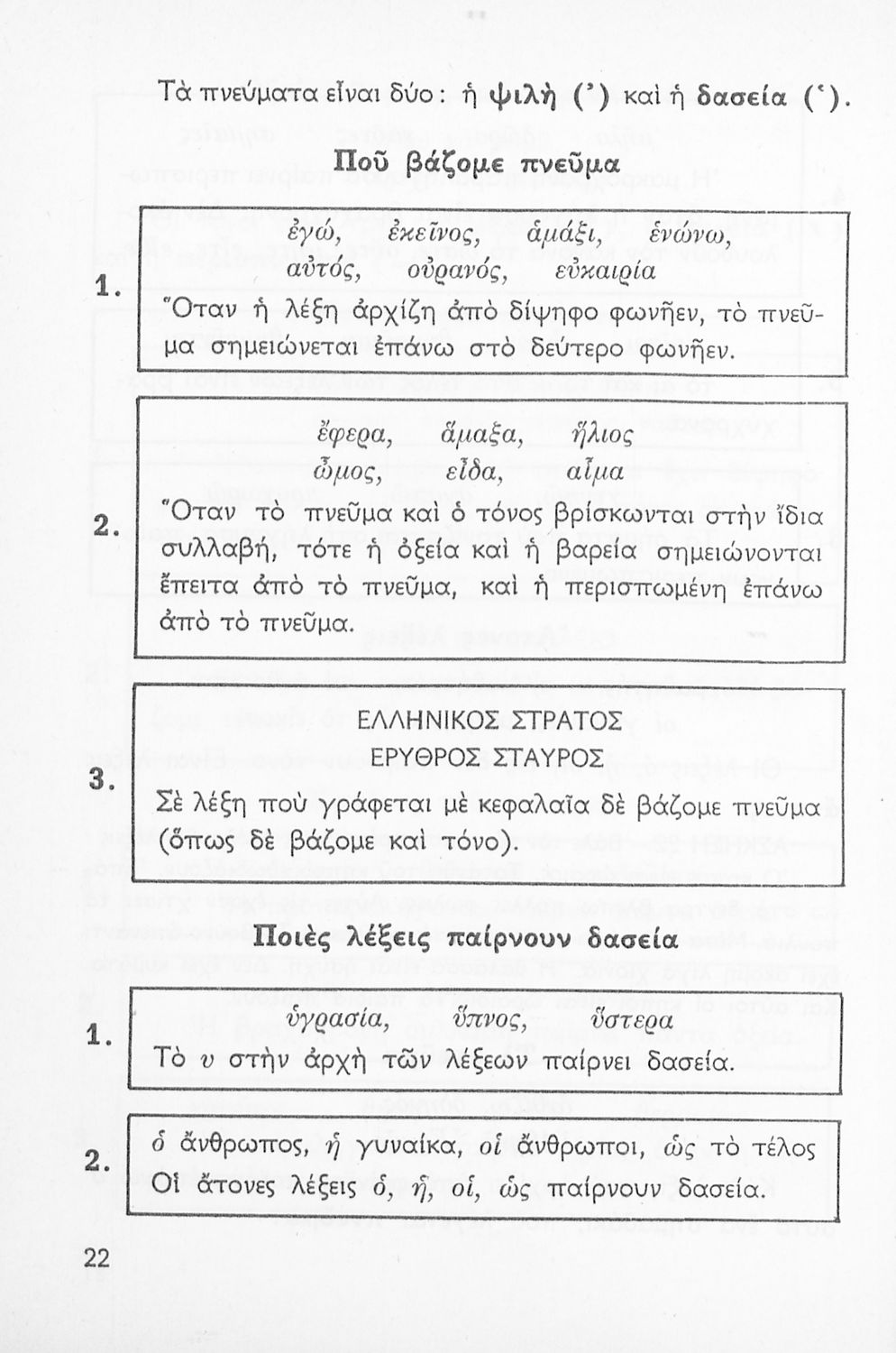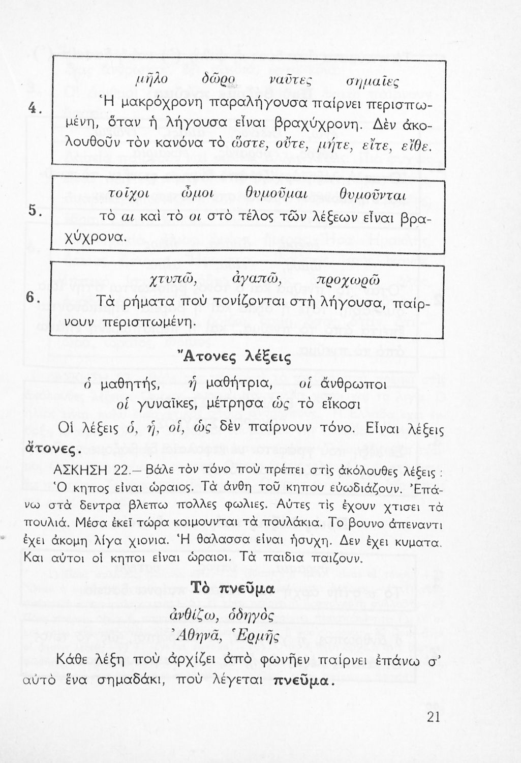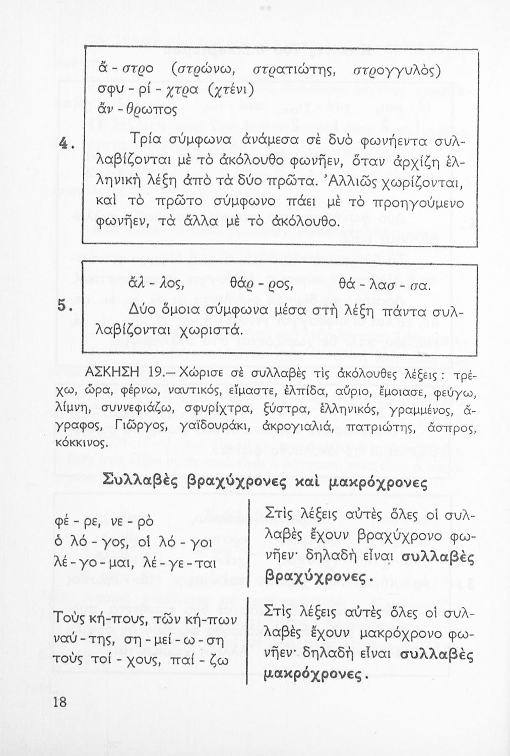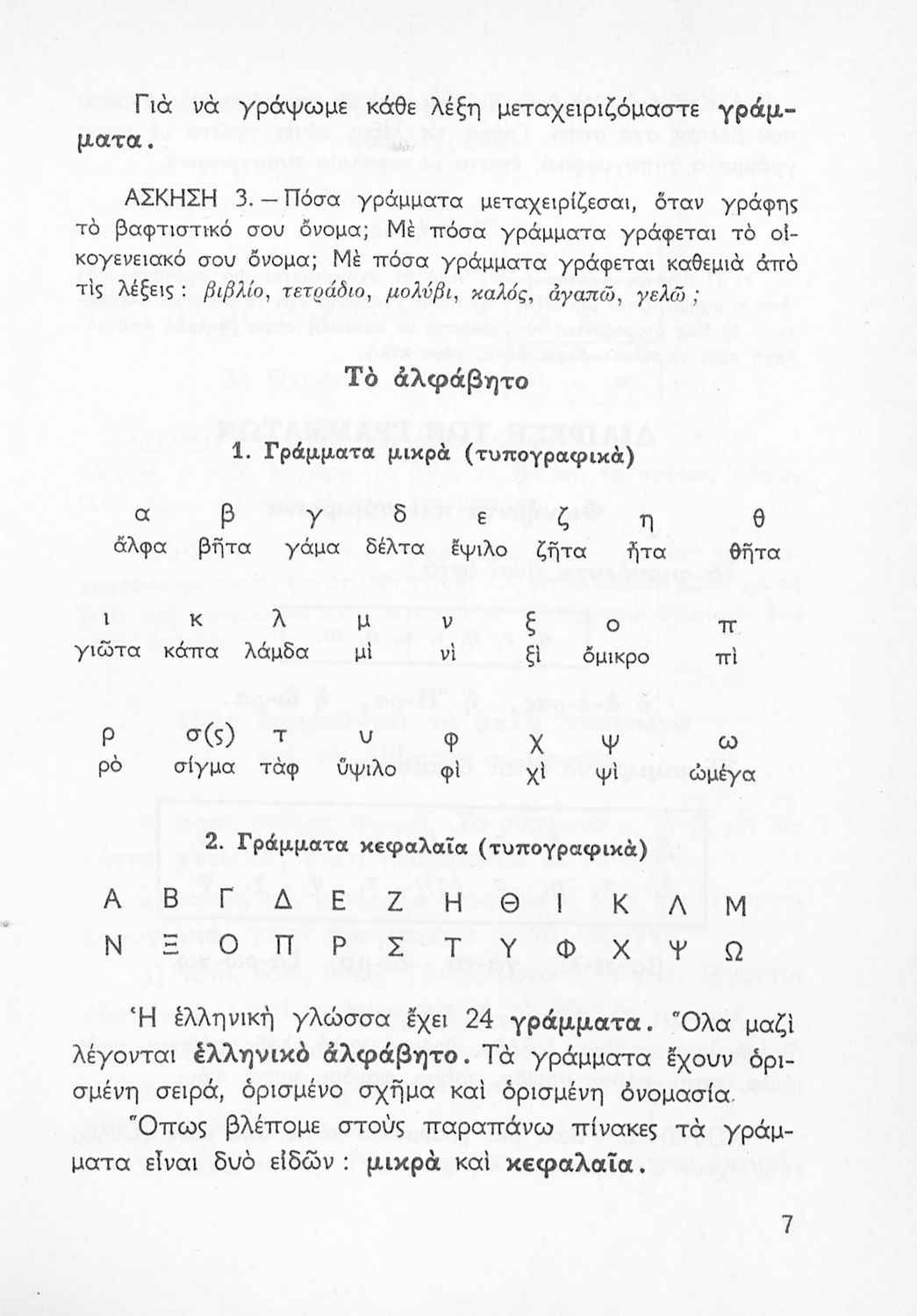 Σχολικό εγχειρίδιο Γ΄ και Δ΄ Δημοτικού που περιλαμβάνει τους κανόνες γραμματικής και τη δομή της νέας ελληνικής και είναι χωρισμένο στο φωνητικό, τυπικό και παραγωγικό μέρος.