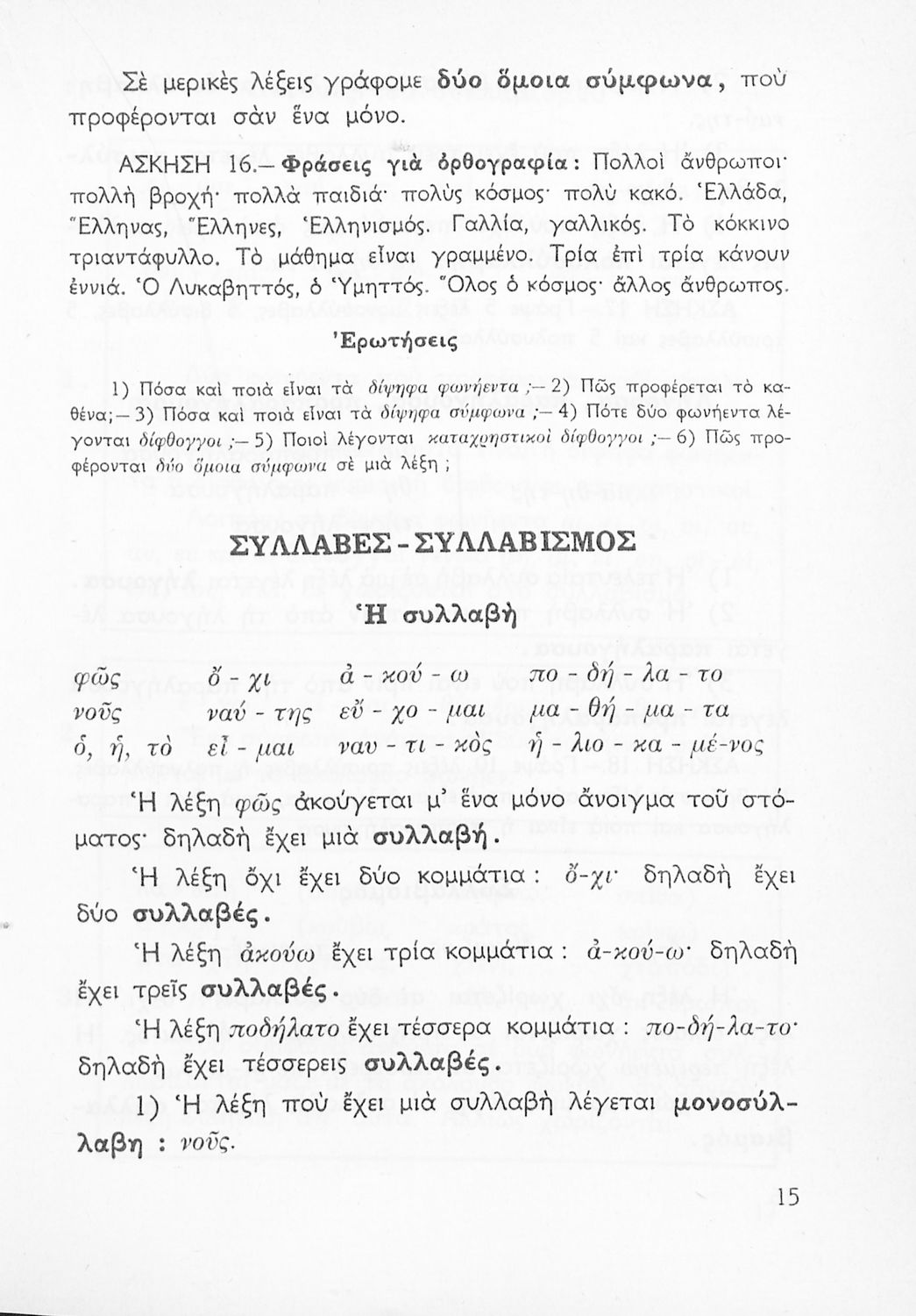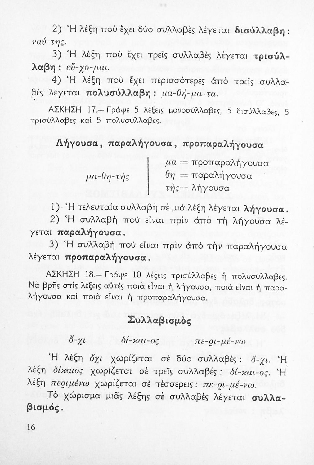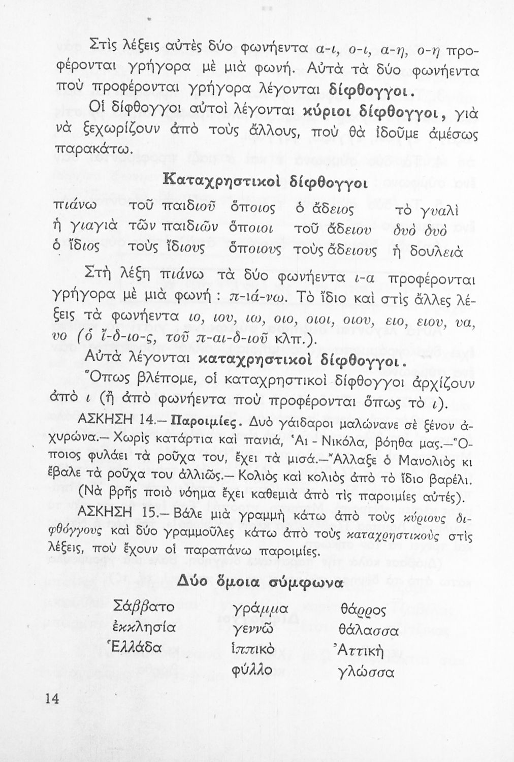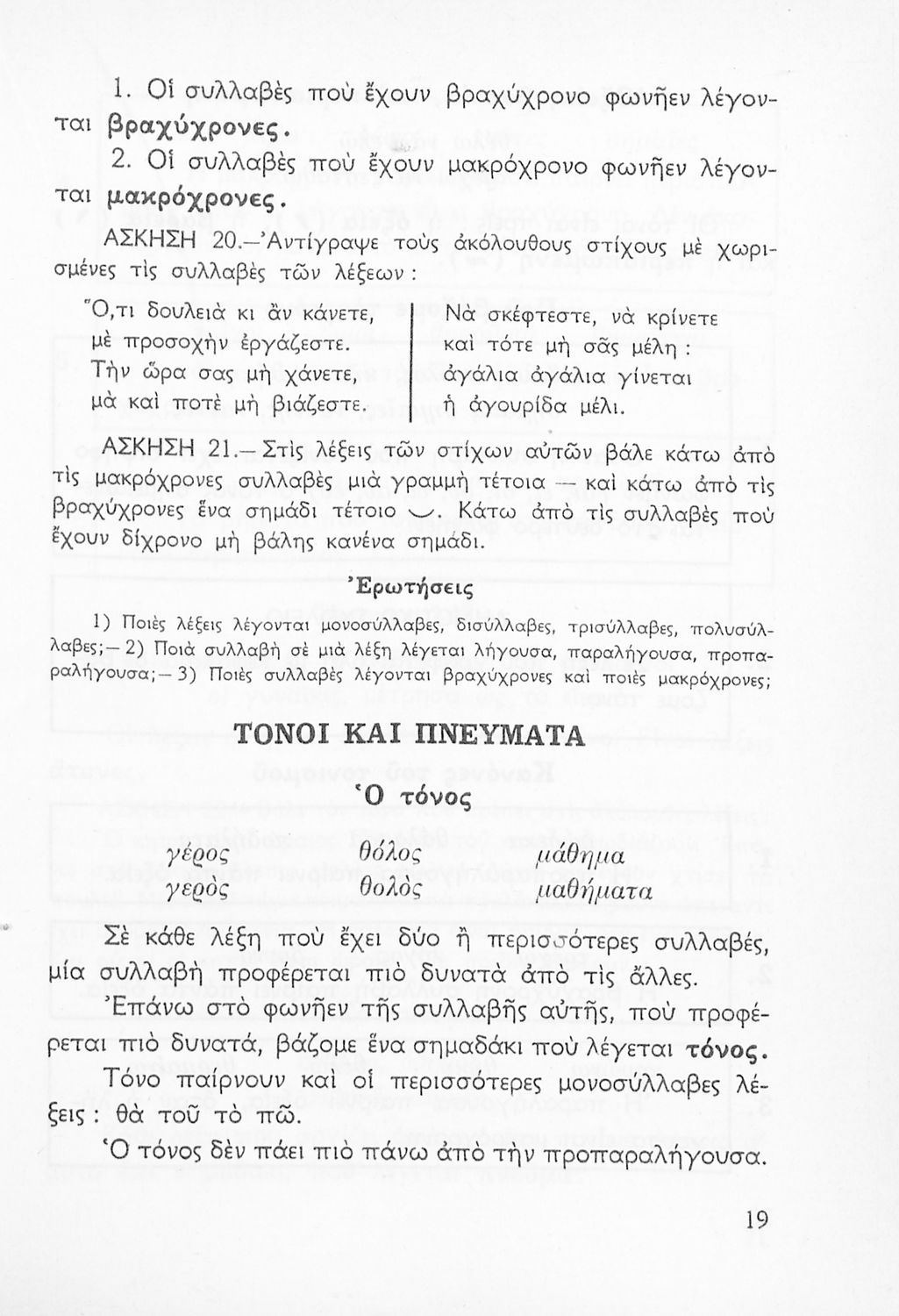 Σχολικό εγχειρίδιο Γ΄ και Δ΄ Δημοτικού που περιλαμβάνει τους κανόνες γραμματικής και τη δομή της νέας ελληνικής και είναι χωρισμένο στο φωνητικό, τυπικό και παραγωγικό μέρος.