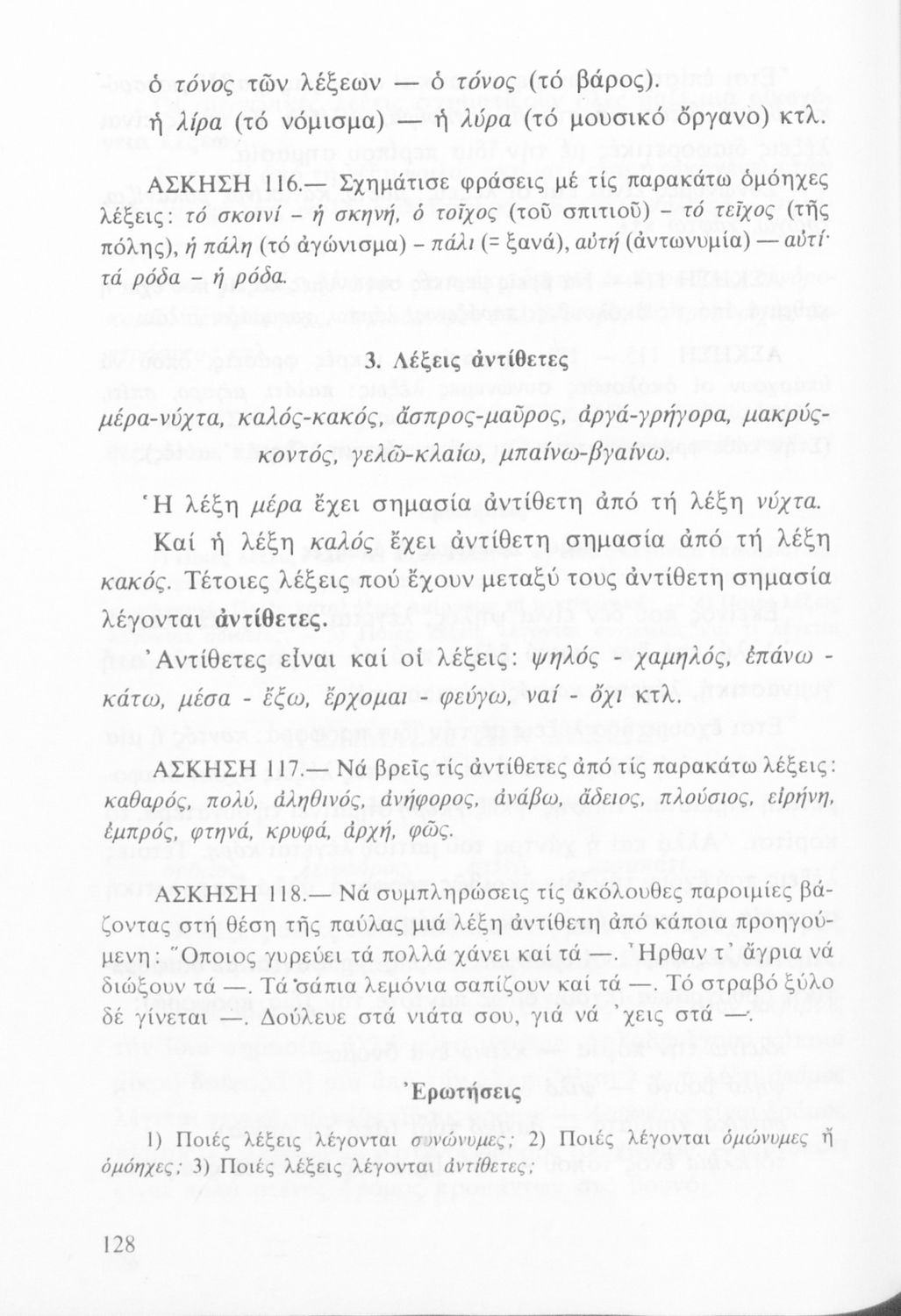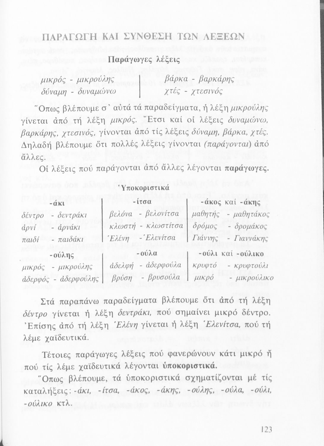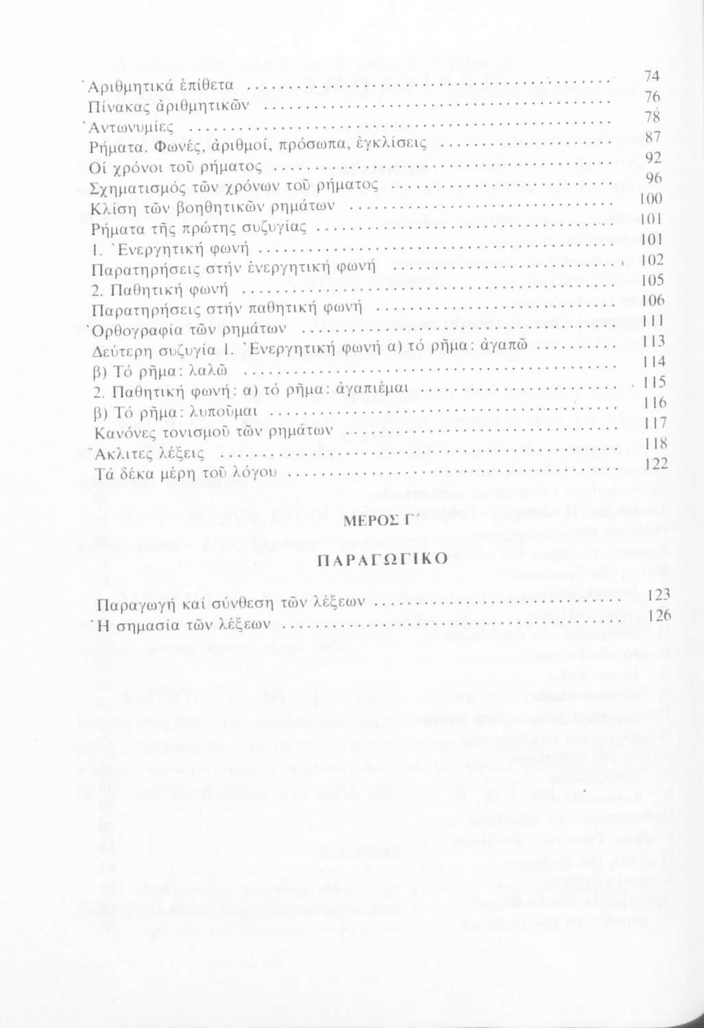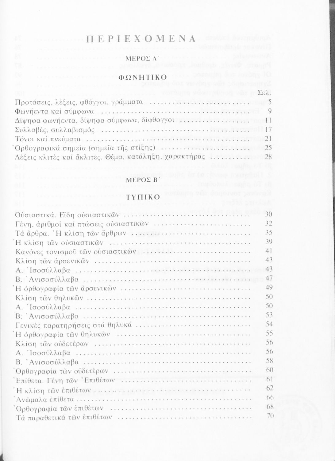 Σχολικό εγχειρίδιο Γ΄ και Δ΄ Δημοτικού που περιλαμβάνει τους κανόνες γραμματικής και τη δομή της νέας ελληνικής και είναι χωρισμένο στο φωνητικό, τυπικό και παραγωγικό μέρος.