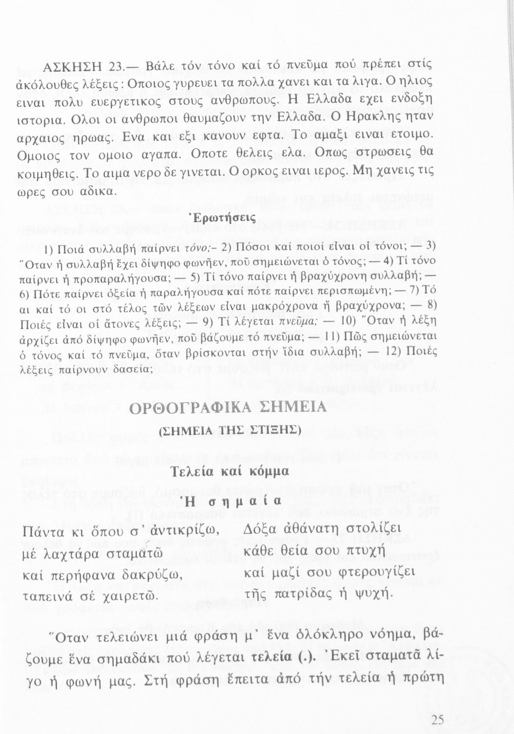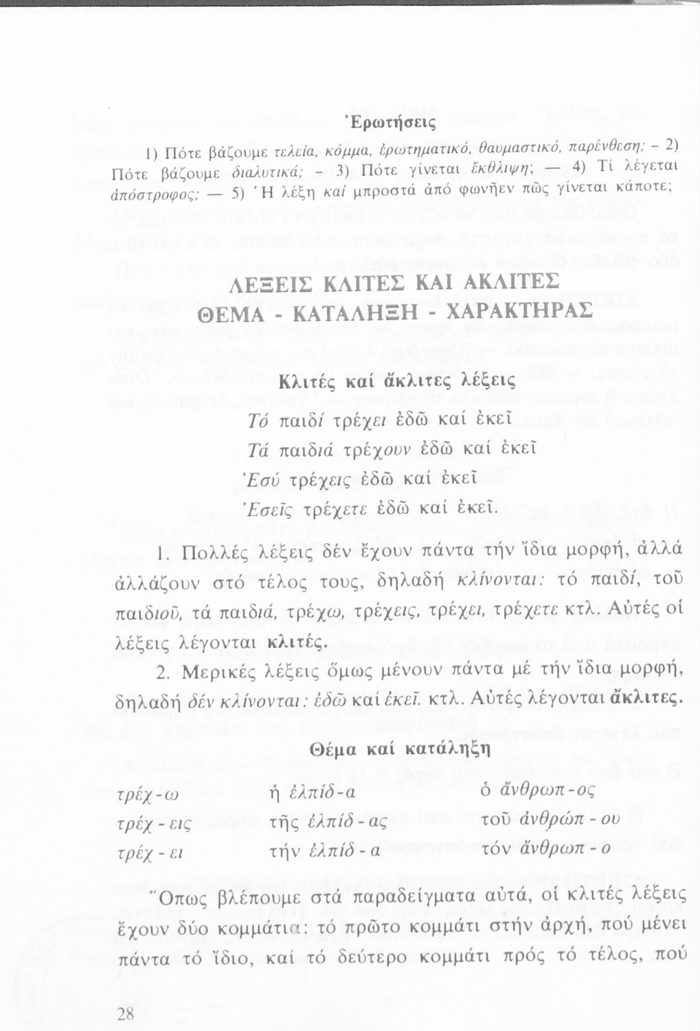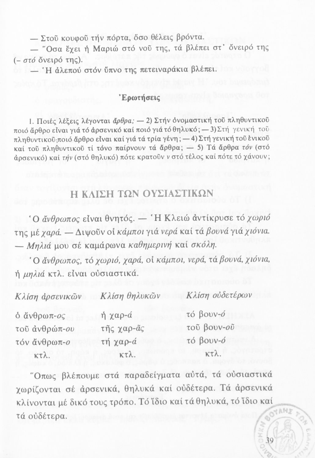 Σχολικό εγχειρίδιο Γ΄ και Δ΄ Δημοτικού που περιλαμβάνει τους κανόνες γραμματικής και τη δομή της νέας ελληνικής και είναι χωρισμένο στο φωνητικό, τυπικό και παραγωγικό μέρος.