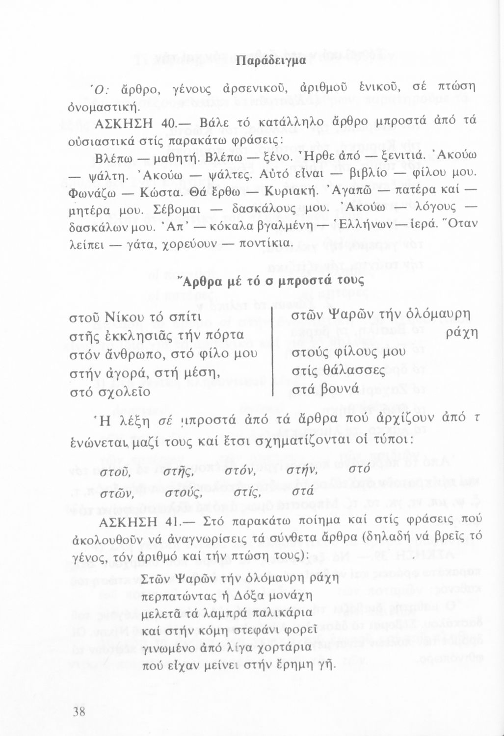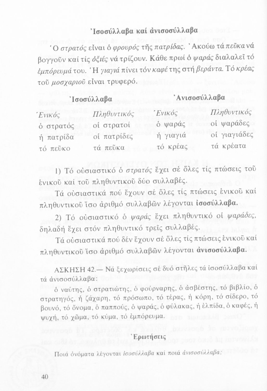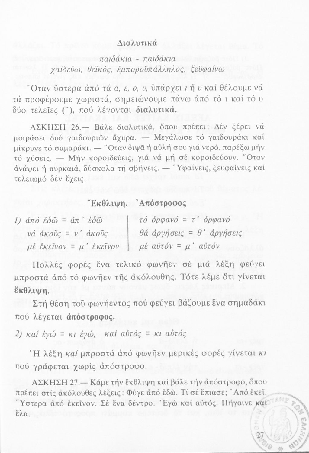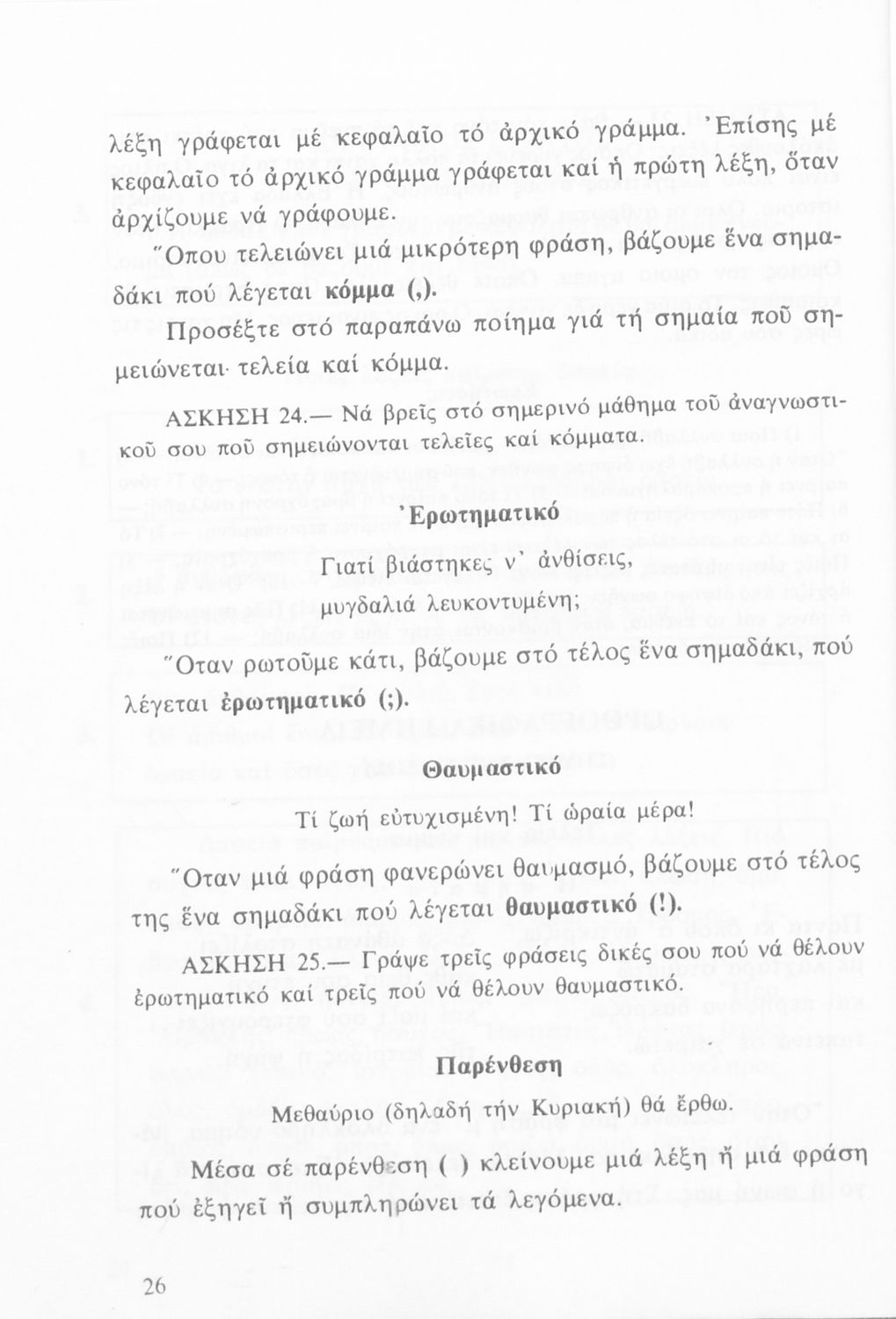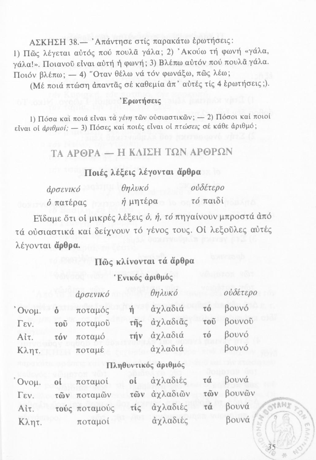 Σχολικό εγχειρίδιο Γλώσσας Γ΄ και Δ΄ Δημοτικού που περιλαμβάνει τους κανόνες γραμματικής και τη δομή της νέας ελληνικής και είναι χωρισμένο στο φωνητικό, τυπικό και παραγωγικό μέρος.