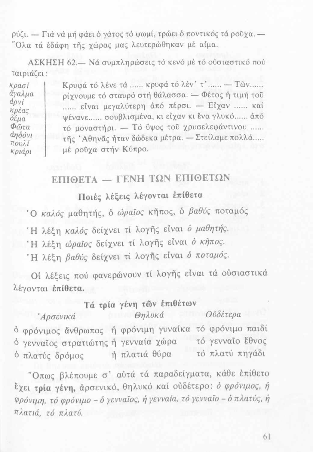 Σχετιζόμενοι όροι:  φθόγγοι, ουσιαστικά επίθετα, ρήματα