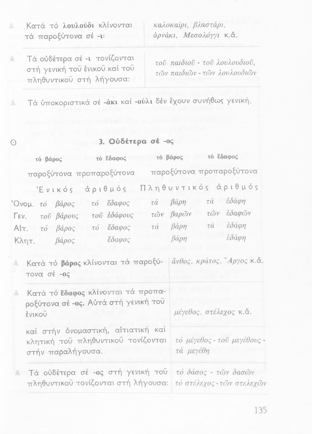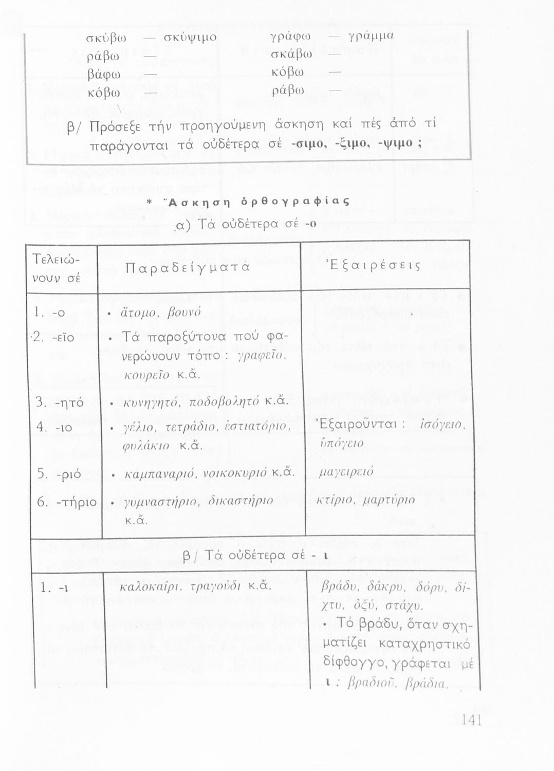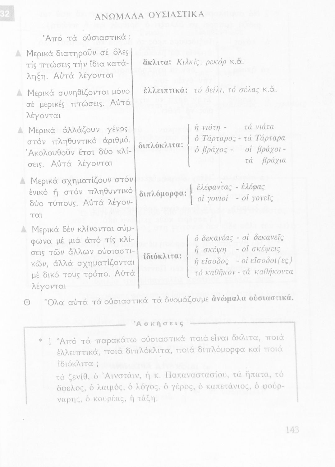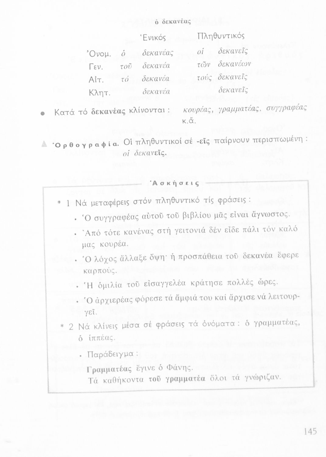 Σχολικό εγχειρίδιο της Ε΄ και ΣΤ΄ τάξης Δημοτικού για την γραμματική της ελληνικής γλώσσας με κανόνες και παραδείγματα. Στο επίμετρο υπάρχουν πίνακες με ανώμαλους σχηματισμούς ρημάτων.