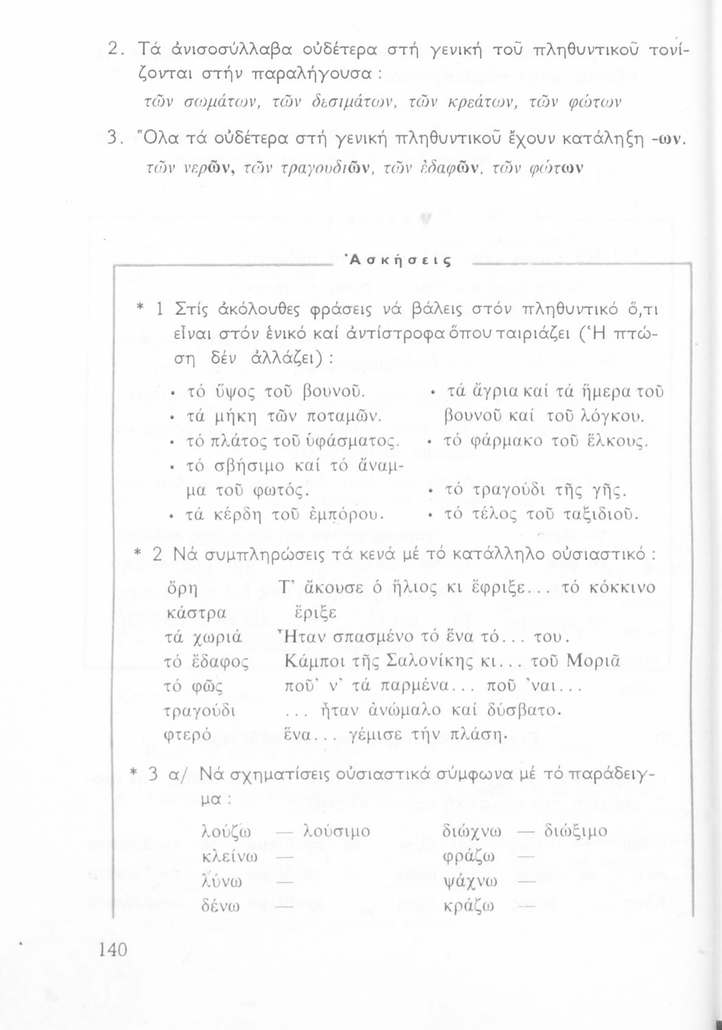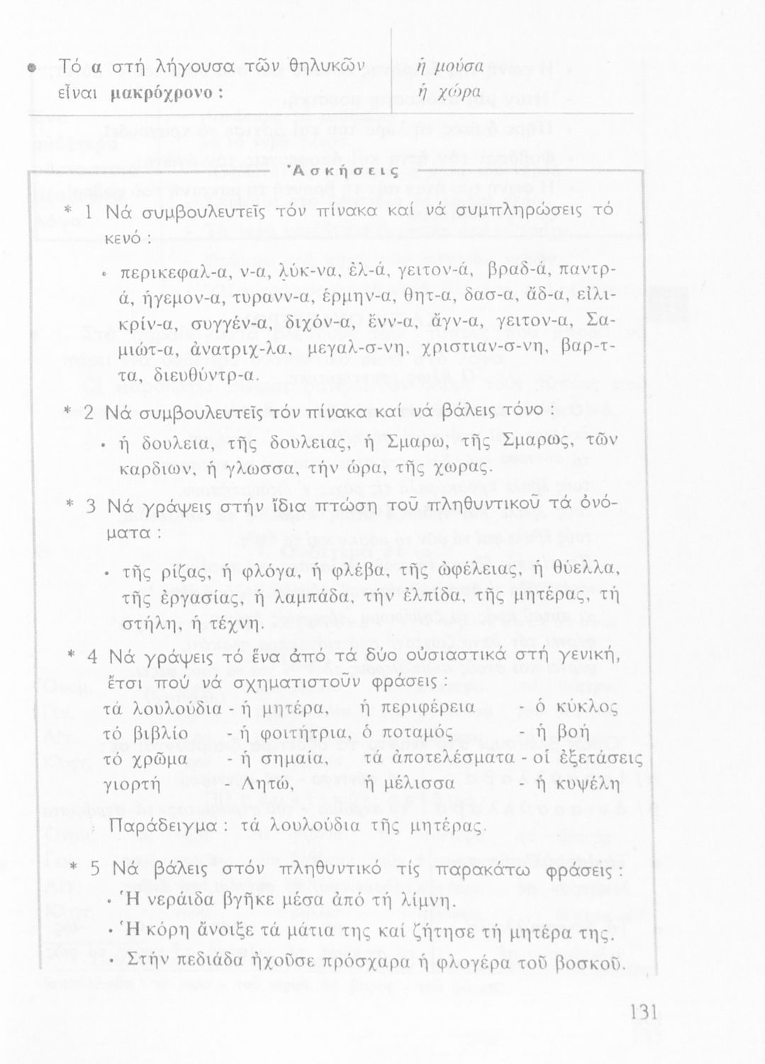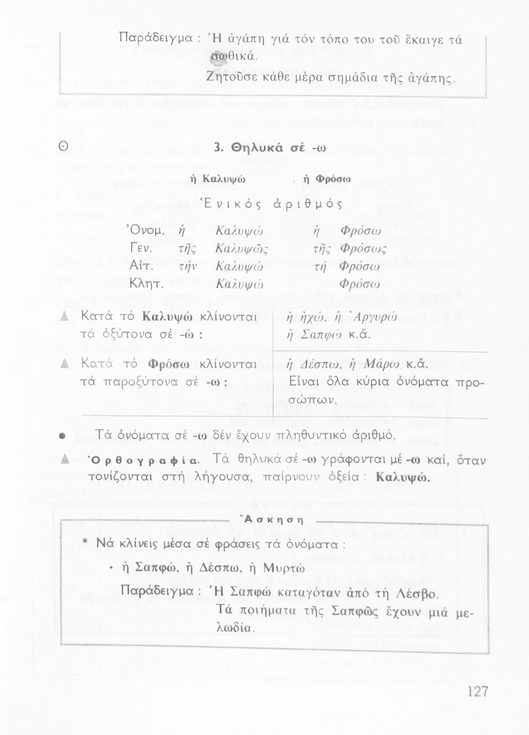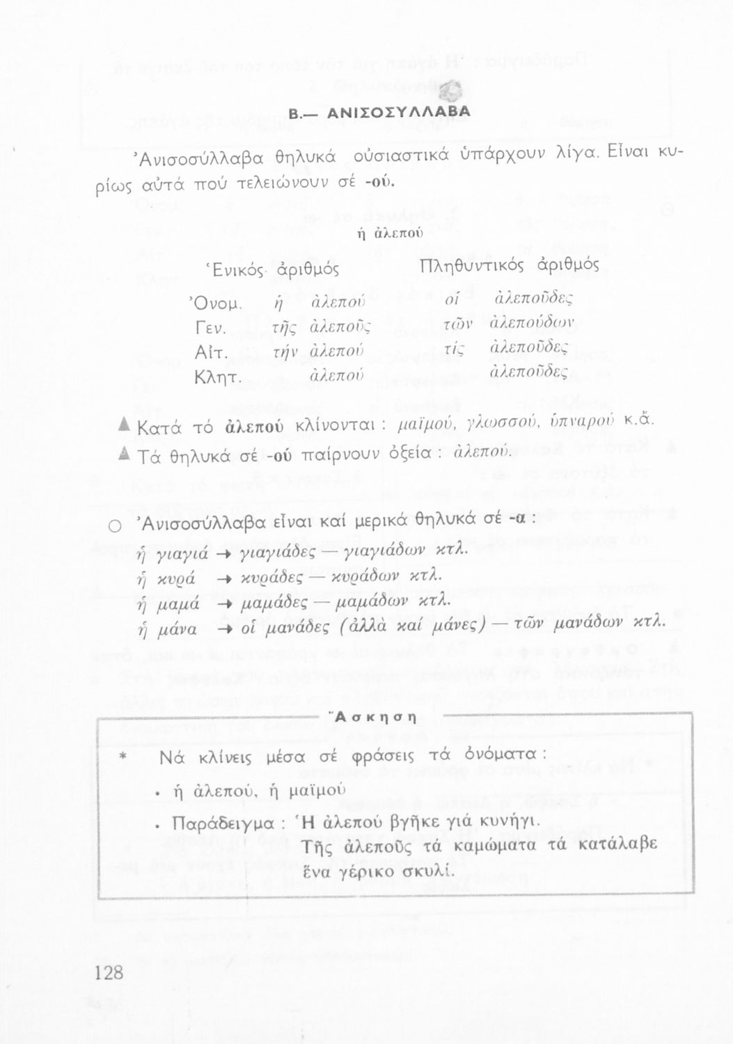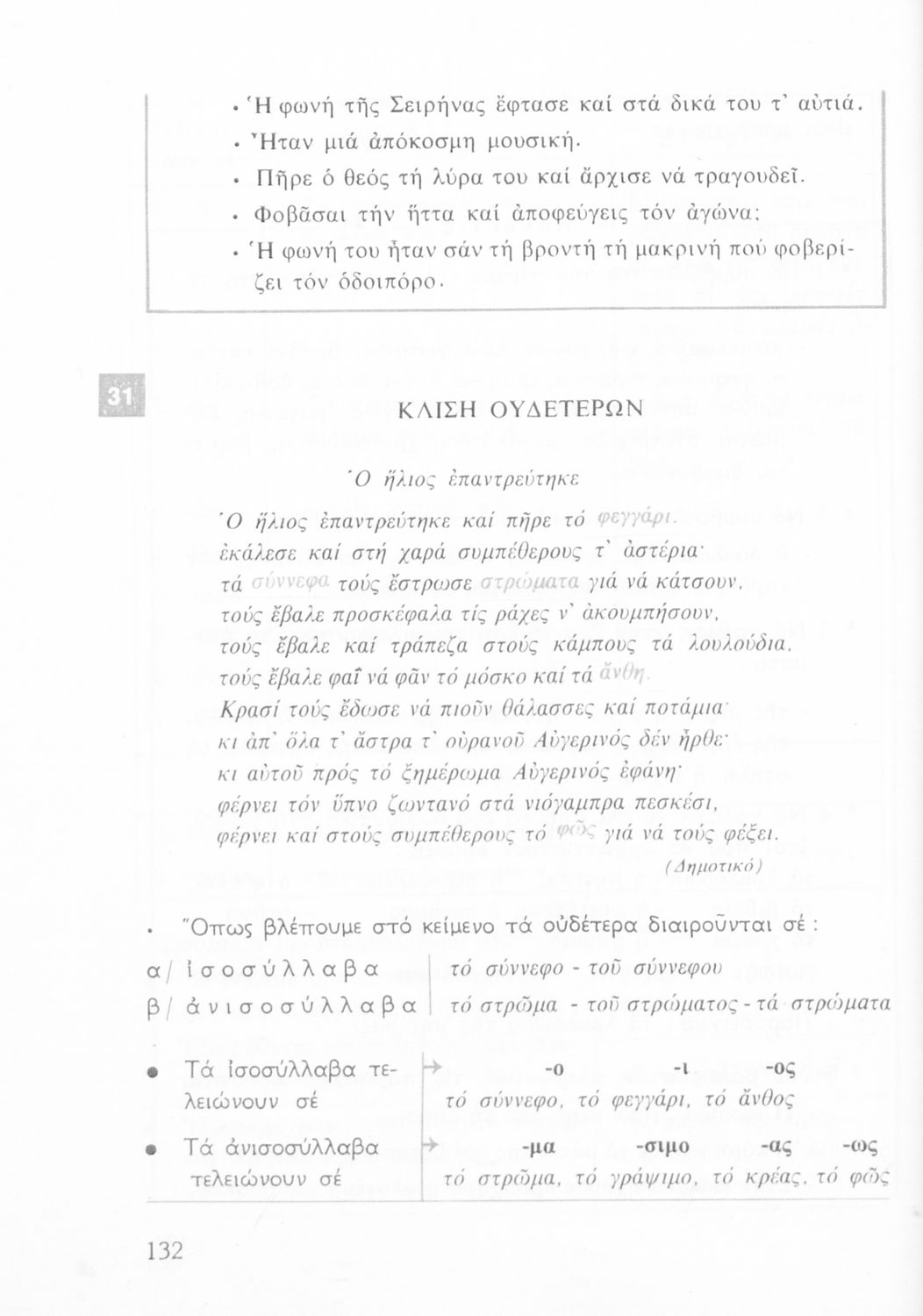 Σχολικό εγχειρίδιο της Ε΄ και ΣΤ΄ τάξης Δημοτικού για την γραμματική της ελληνικής γλώσσας με κανόνες και παραδείγματα. Στο επίμετρο υπάρχουν πίνακες με ανώμαλους σχηματισμούς ρημάτων.
