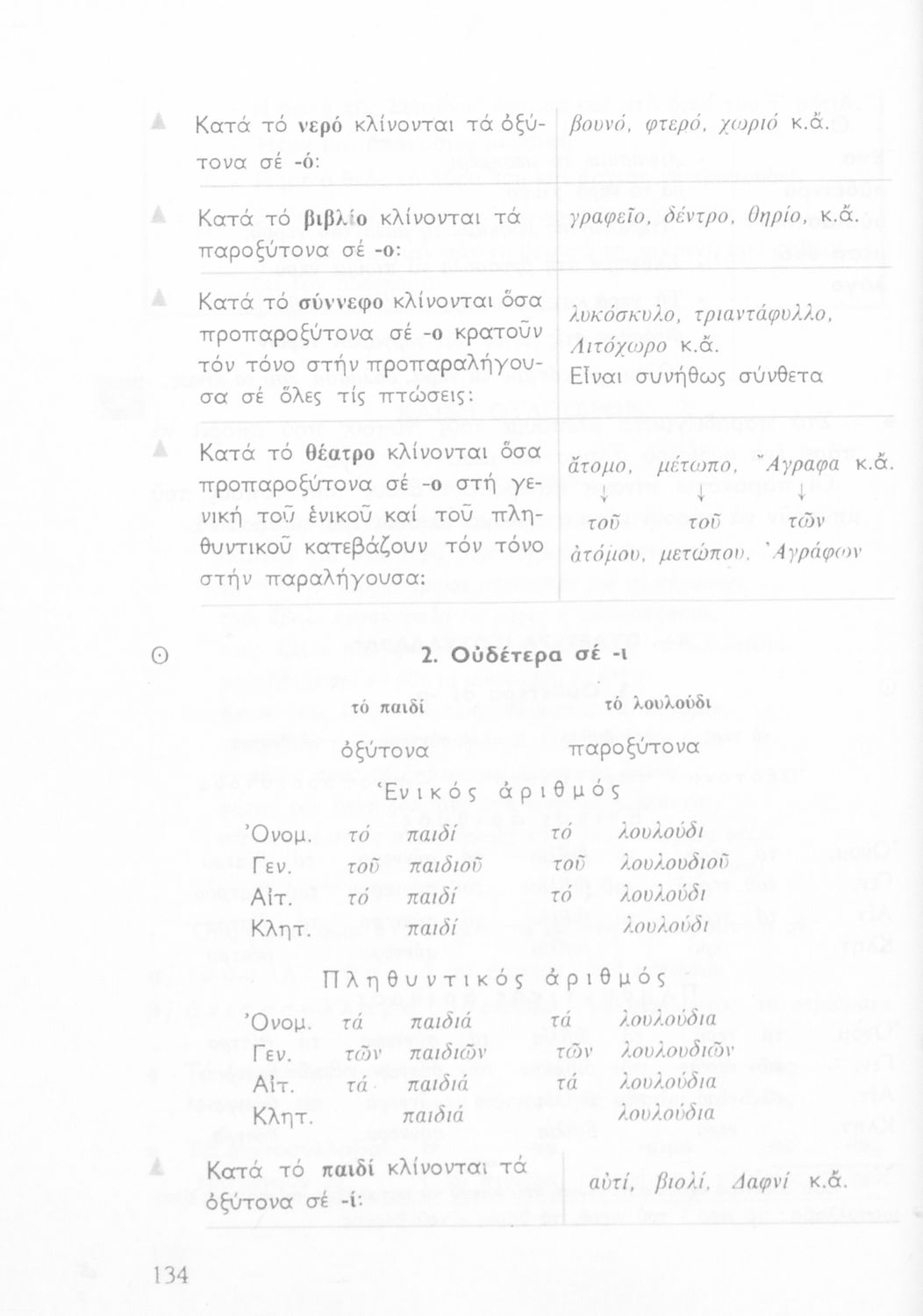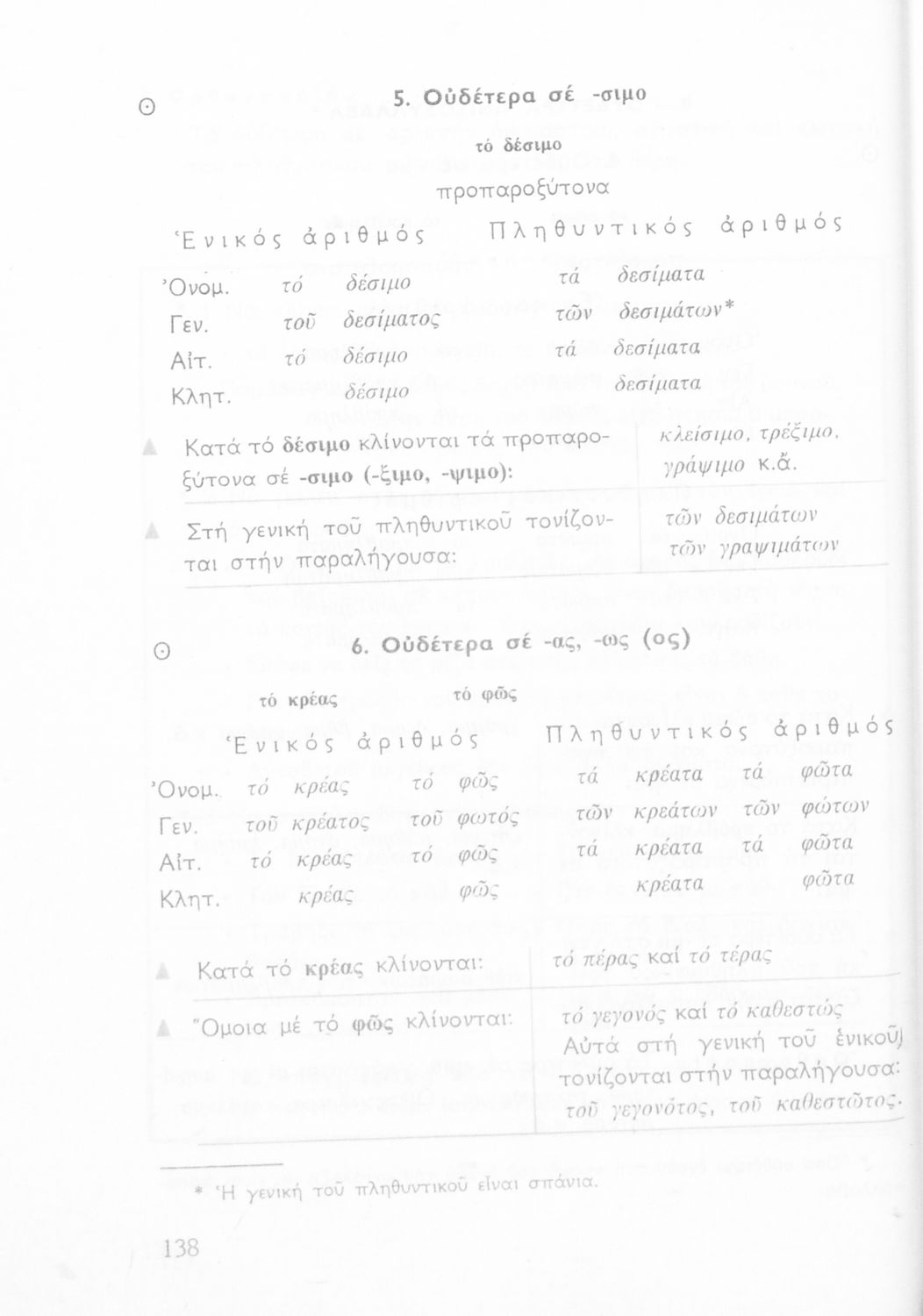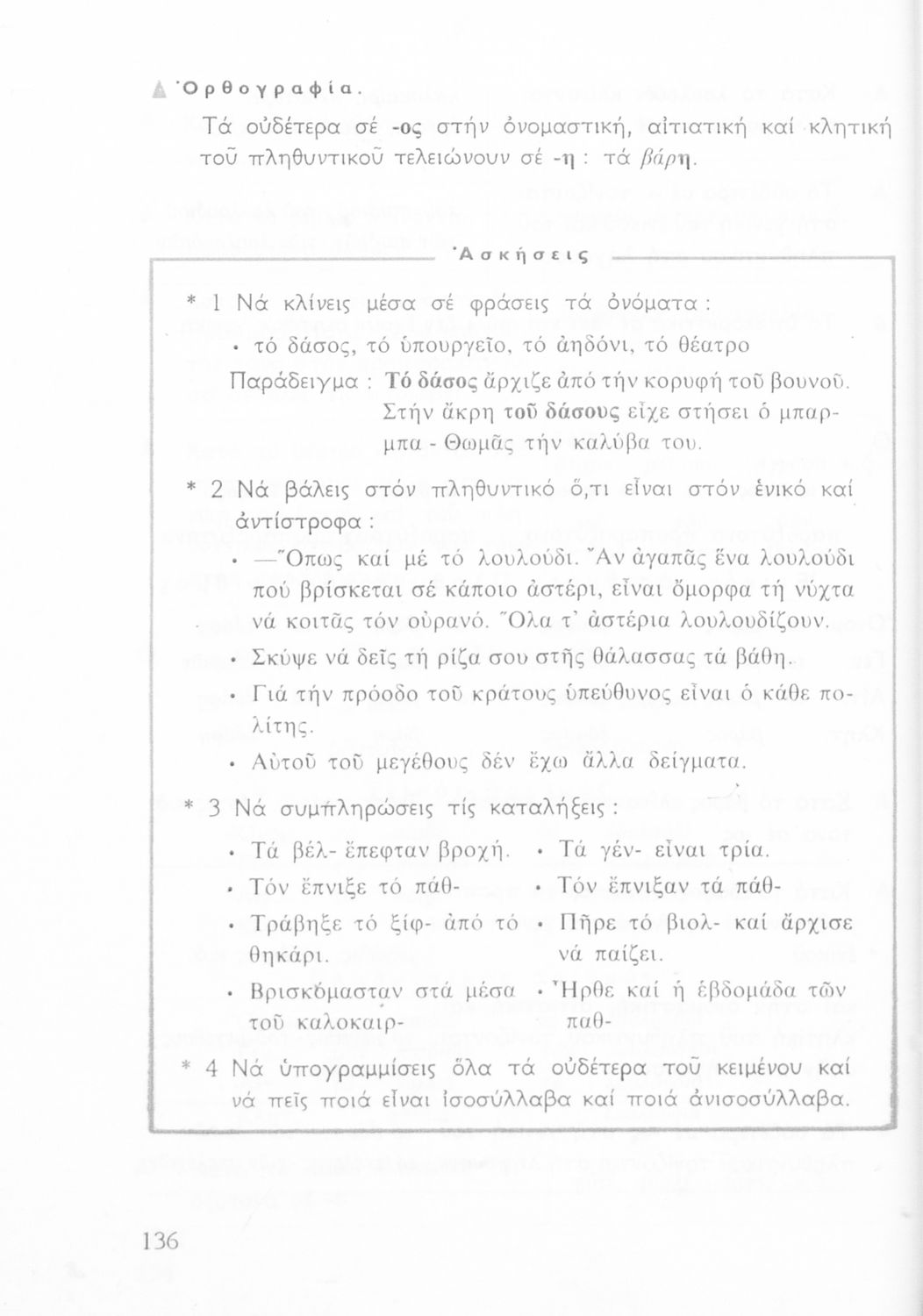 Σχολικό εγχειρίδιο για την Ε΄ και ΣΤ΄ τάξη Δημοτικού με γραμματικούς κανόνες και παραδείγματα για τα κλιτά και άκλιτα μέρη του λόγου.