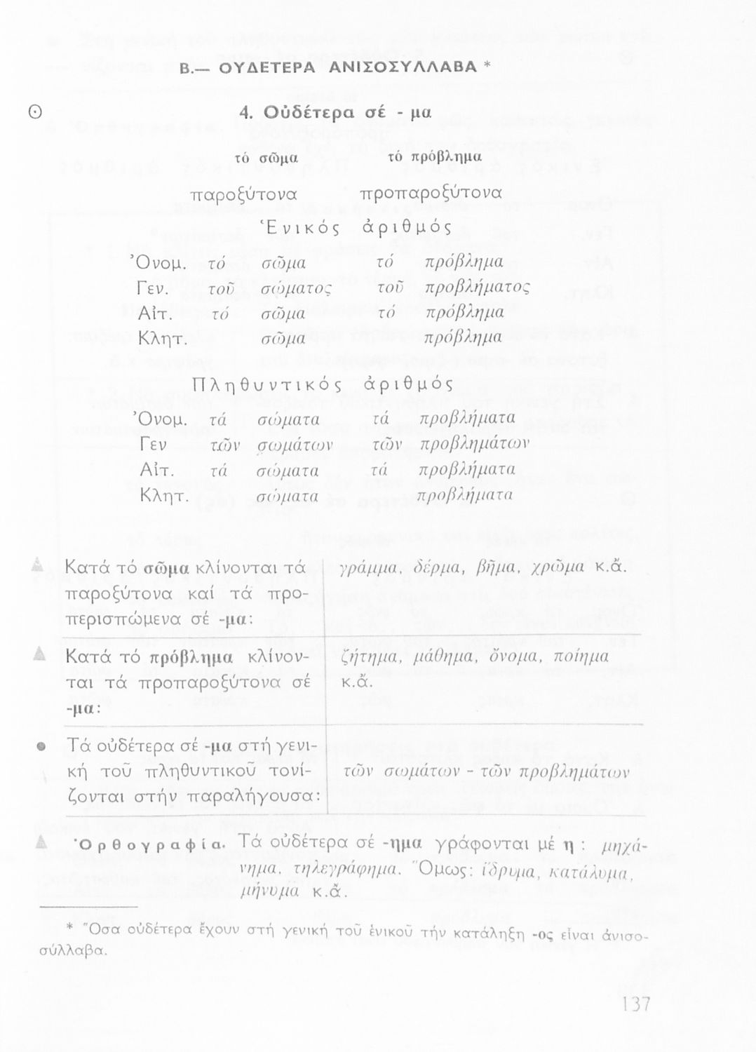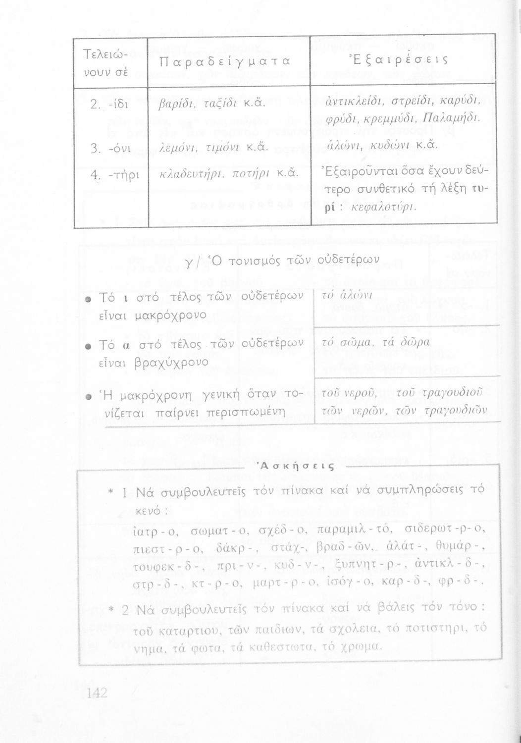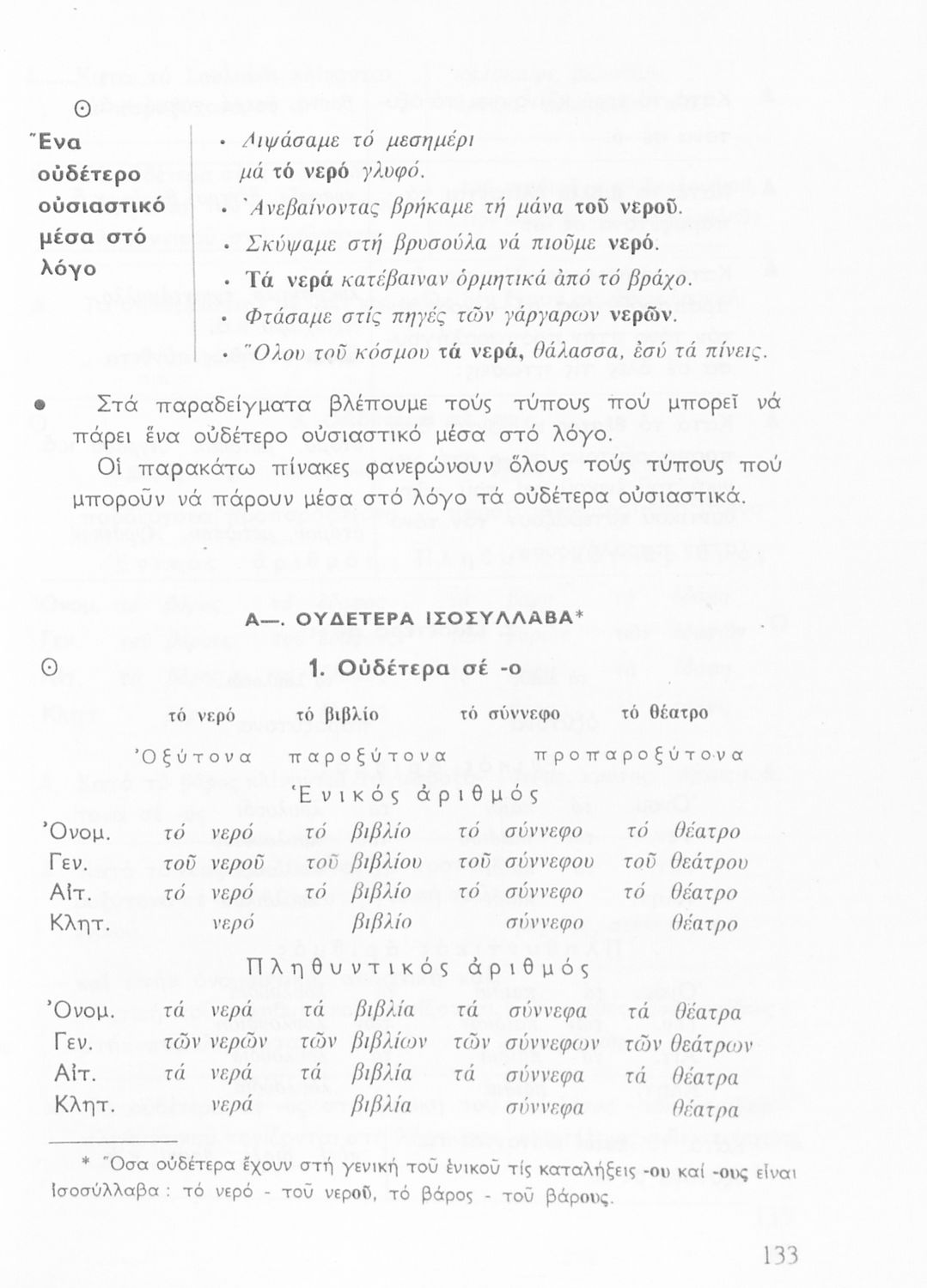 Σχολικό εγχειρίδιο για την Ε΄ και ΣΤ΄ τάξη Δημοτικού με γραμματικούς κανόνες και παραδείγματα για τα κλιτά και άκλιτα μέρη του λόγου.