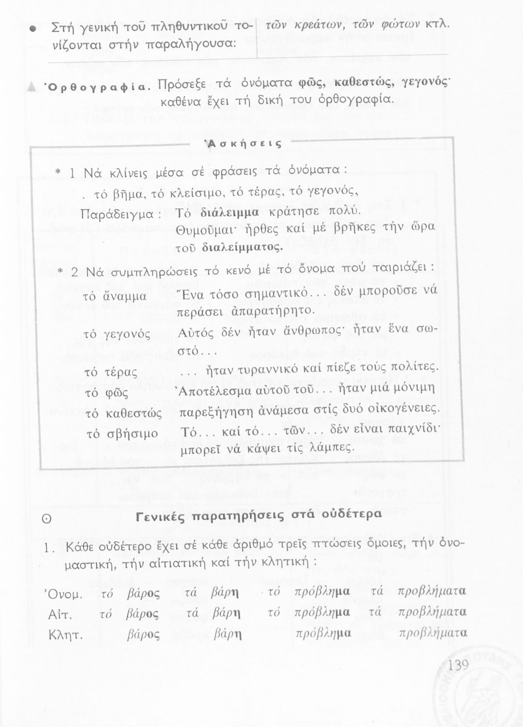 Σχολικό εγχειρίδιο Γλώσσας για τις Ε΄ και ΣΤ΄ Δημοτικού που περιλαμβάνει με κείμενα και ασκήσεις για τη διδασκαλία των γραμματικών φαινομένων.