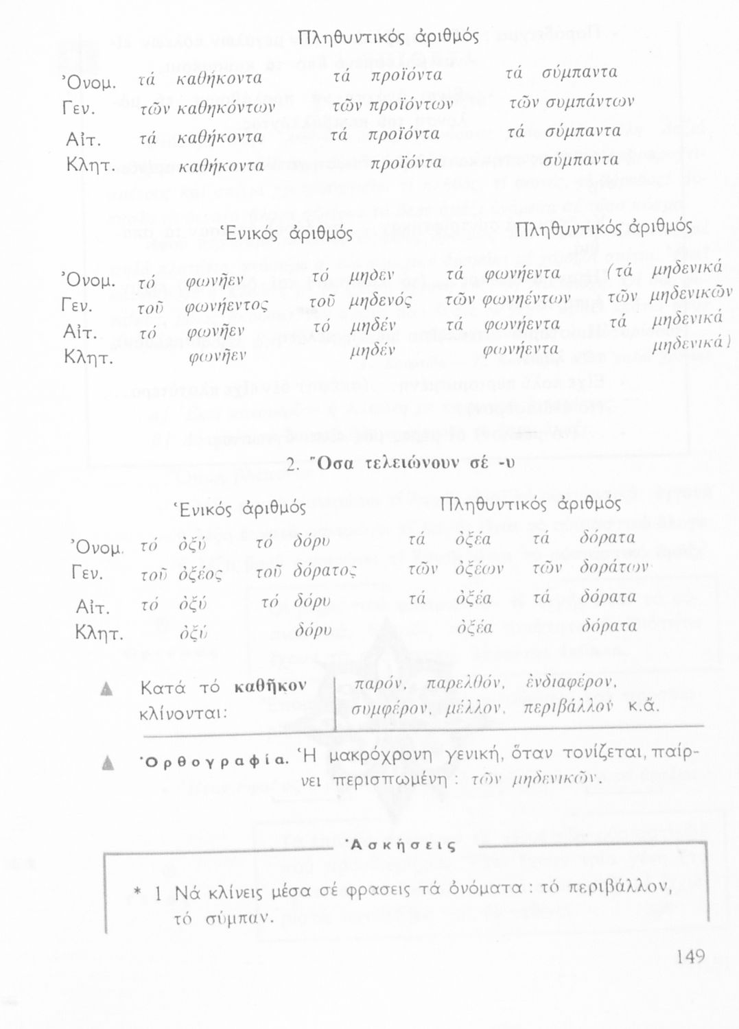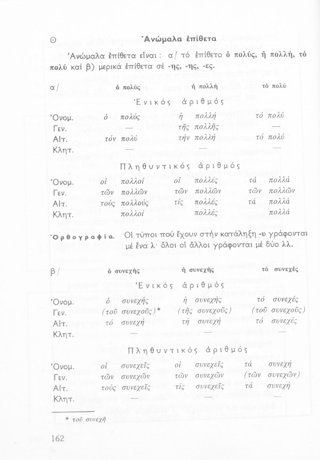 Σχολικό εγχειρίδιο της Ε΄ και ΣΤ΄ τάξης Δημοτικού για την γραμματική της ελληνικής γλώσσας με κανόνες και παραδείγματα. Στο επίμετρο υπάρχουν πίνακες με ανώμαλους σχηματισμούς ρημάτων.