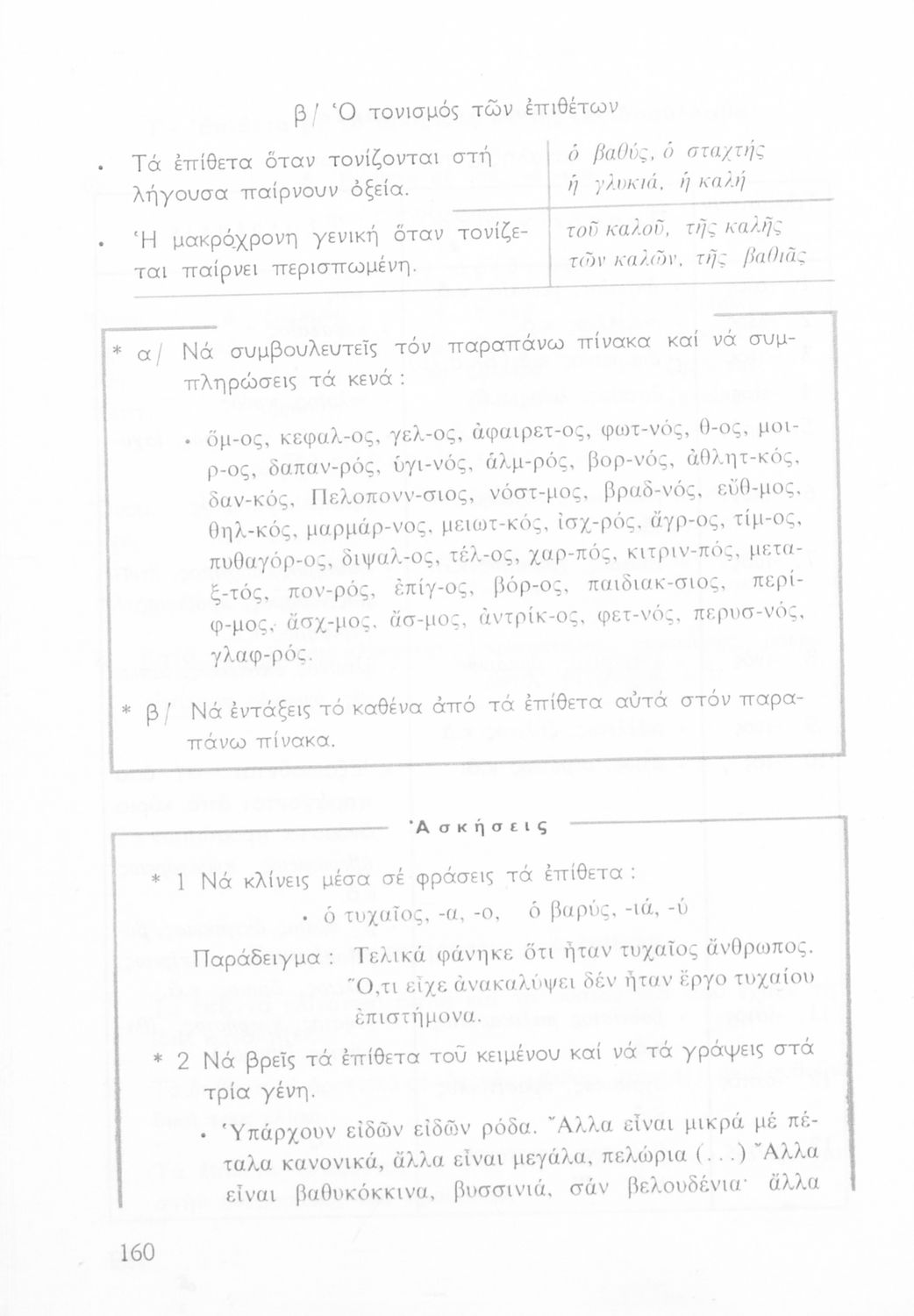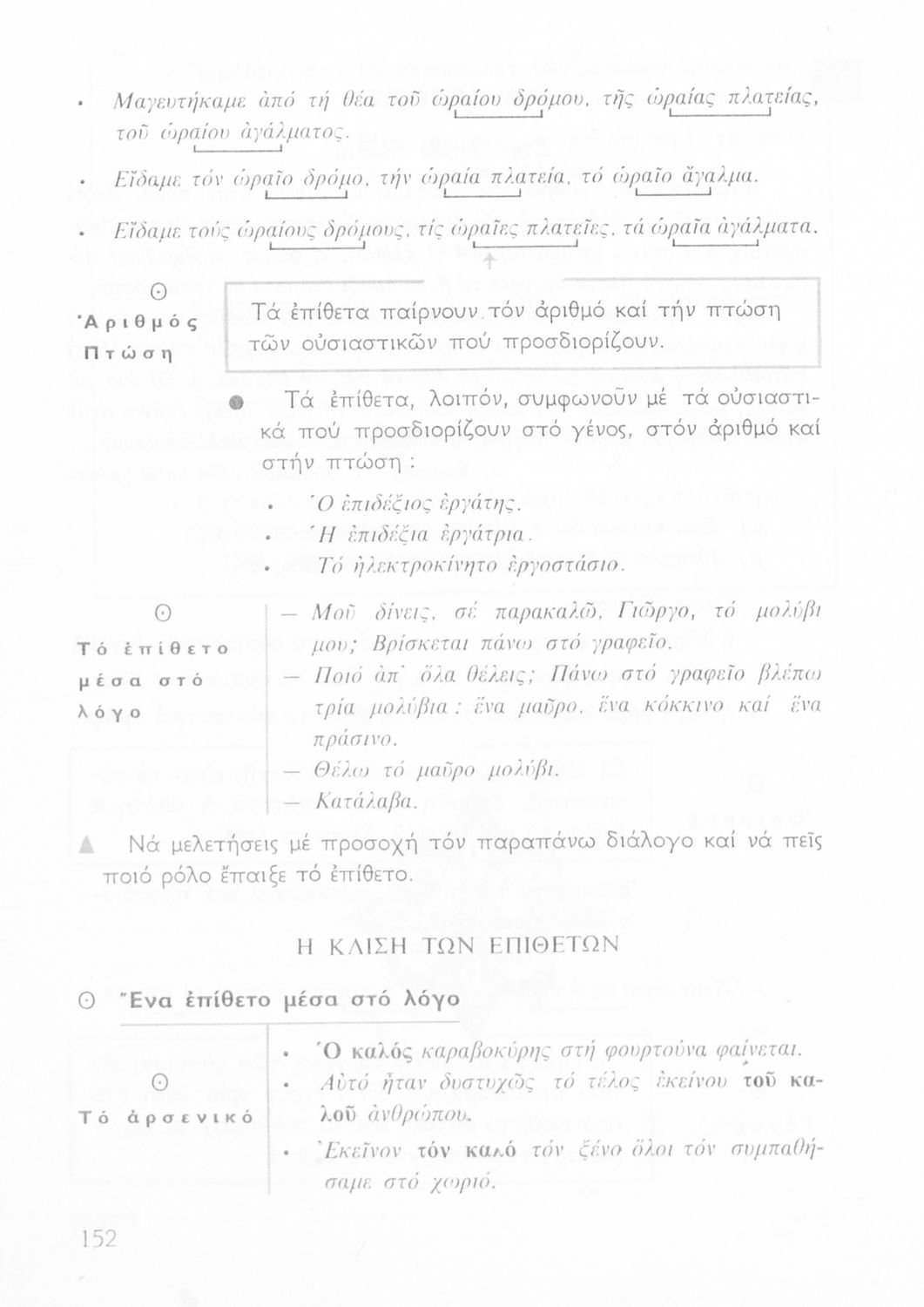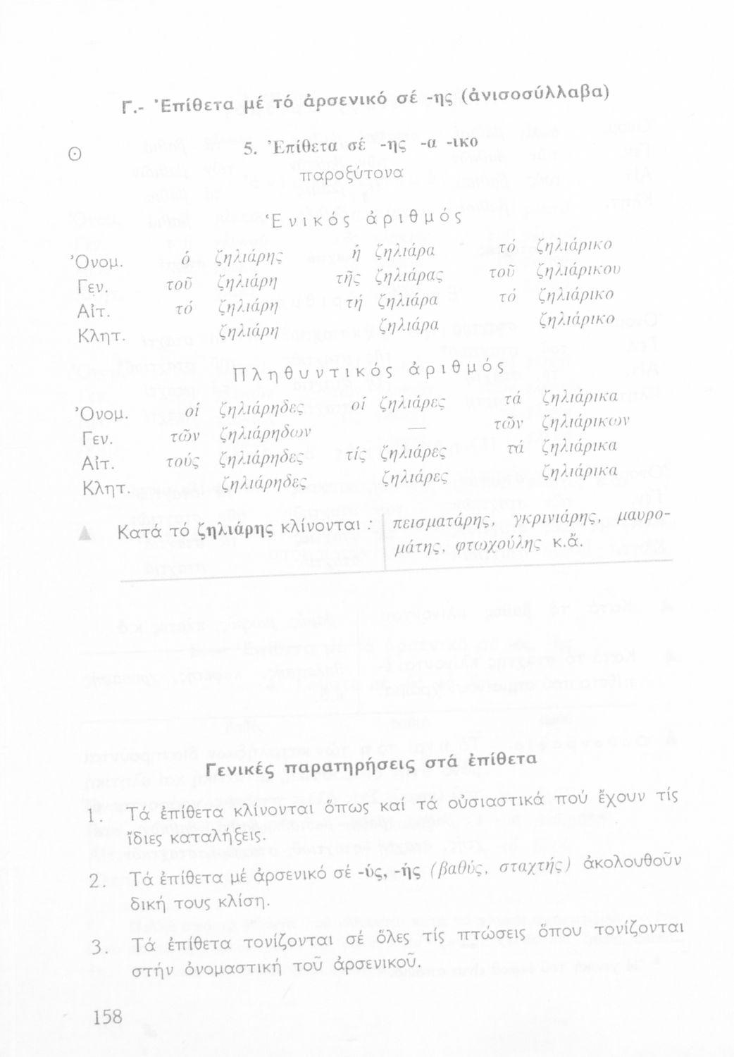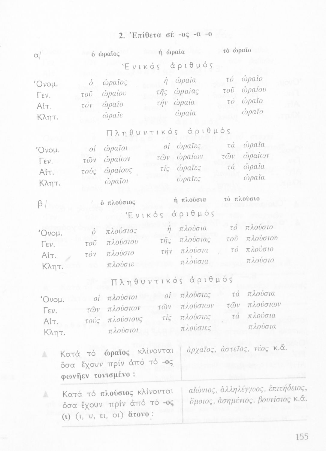 Σχολικό εγχειρίδιο για την Ε΄ και ΣΤ΄ τάξη Δημοτικού με γραμματικούς κανόνες και παραδείγματα για τα κλιτά και άκλιτα μέρη του λόγου.
