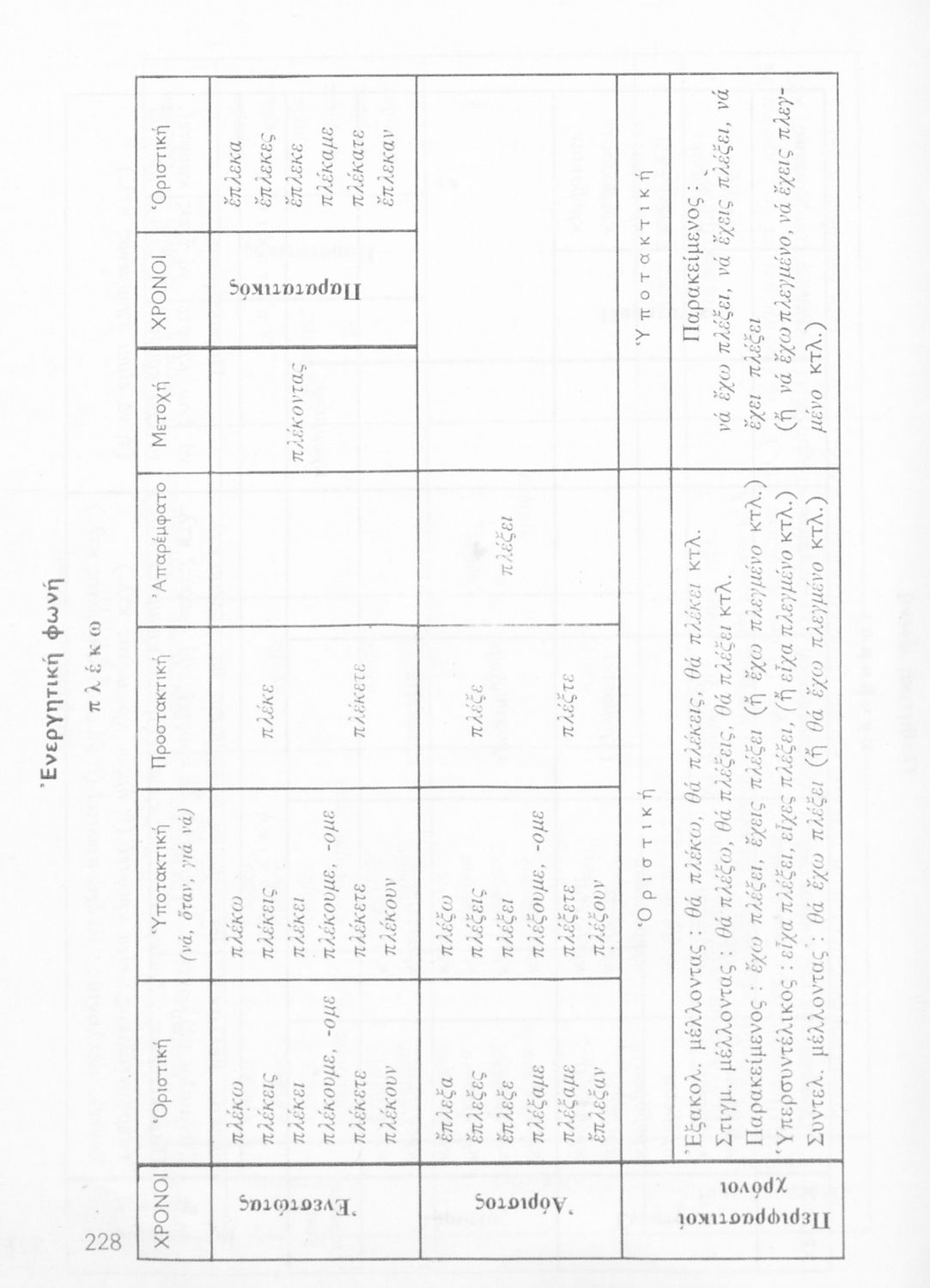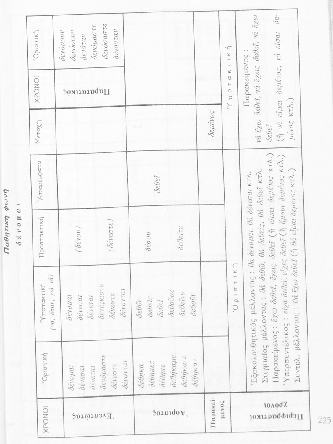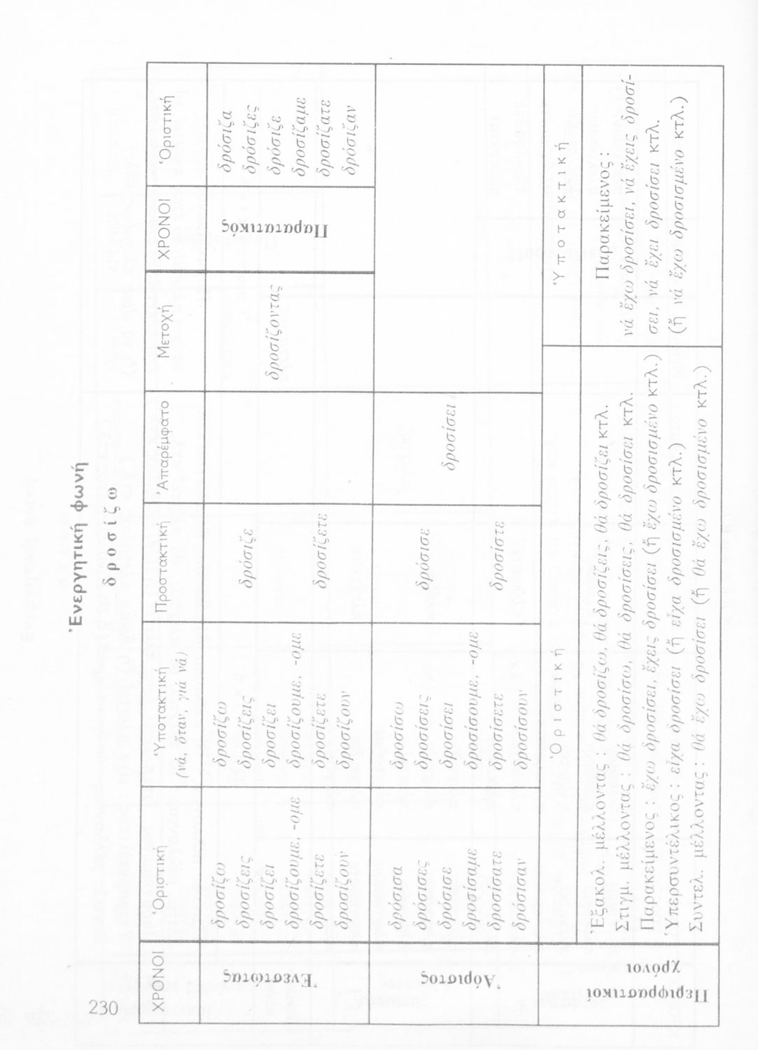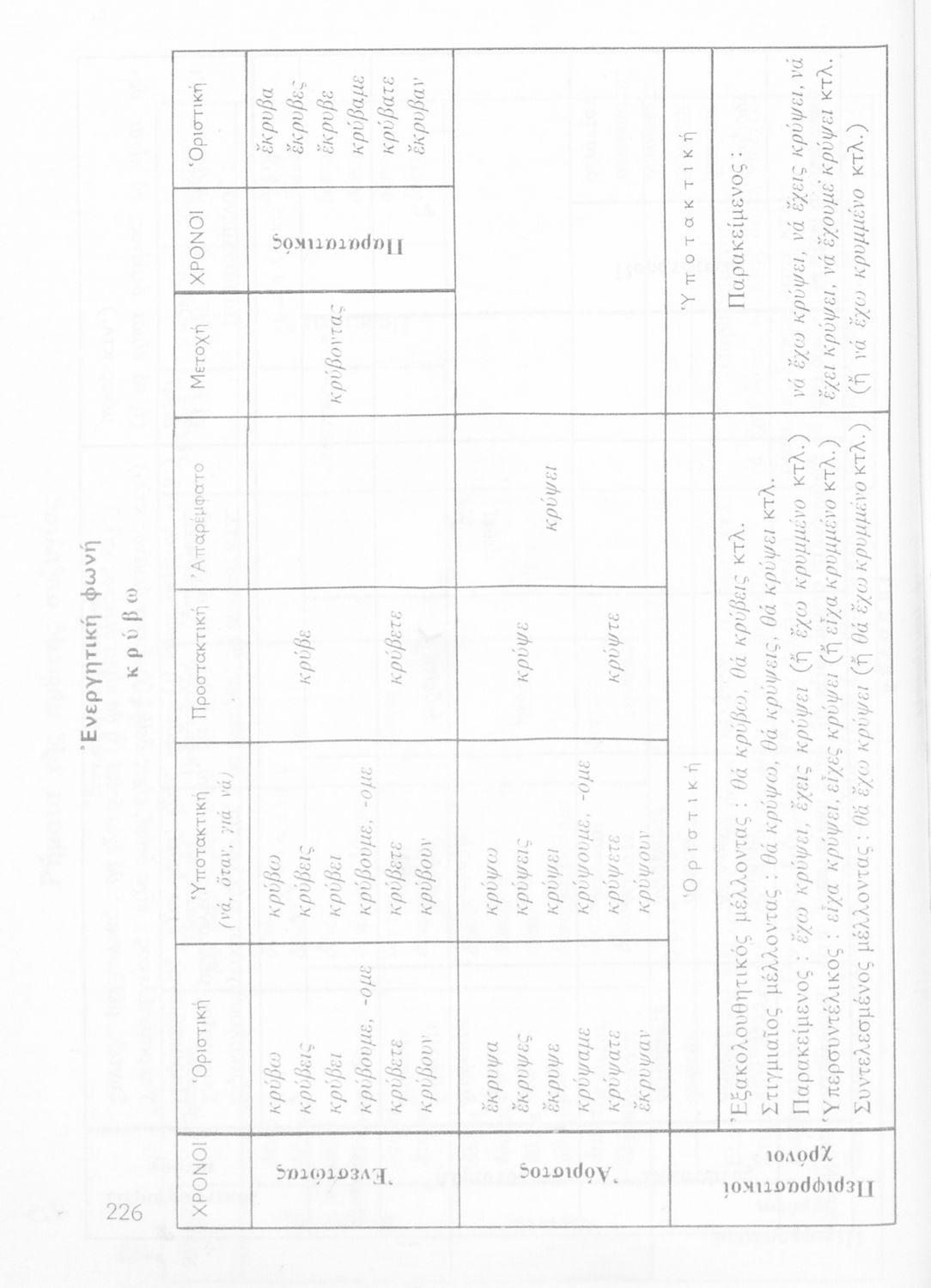 Σχολικό εγχειρίδιο της Ε΄ και ΣΤ΄ τάξης Δημοτικού για την γραμματική της ελληνικής γλώσσας με κανόνες και παραδείγματα. Στο επίμετρο υπάρχουν πίνακες με ανώμαλους σχηματισμούς ρημάτων.