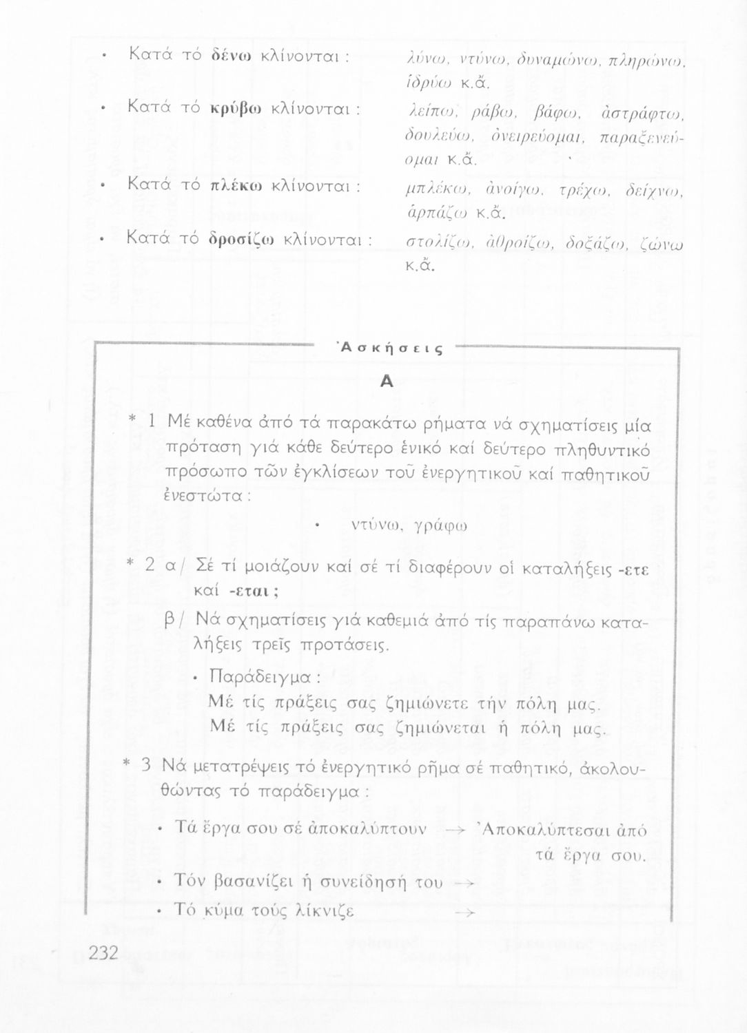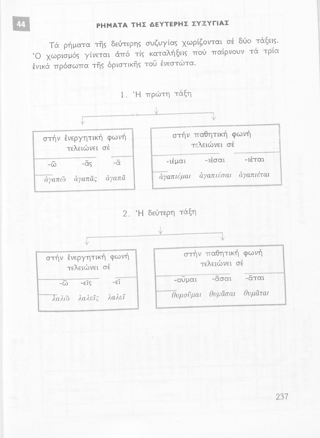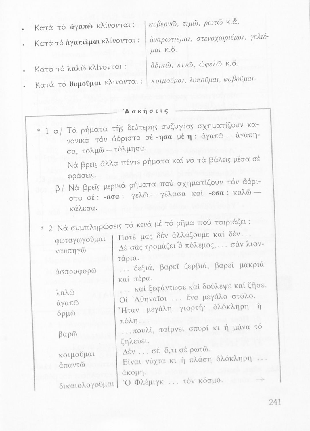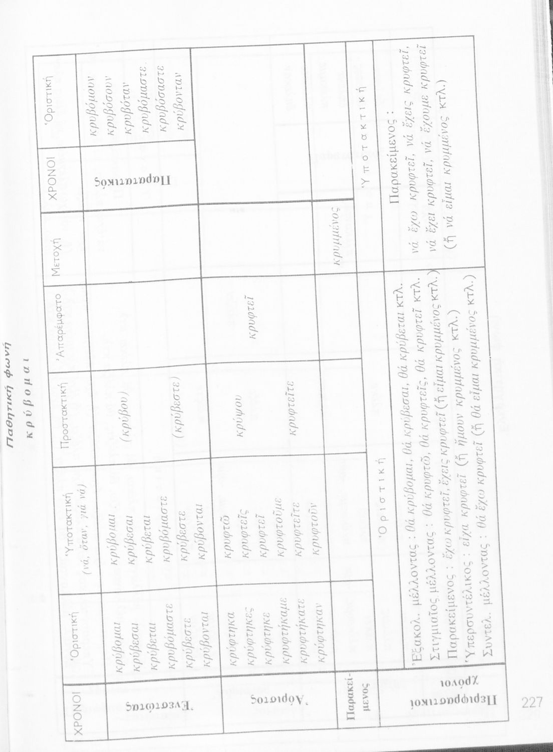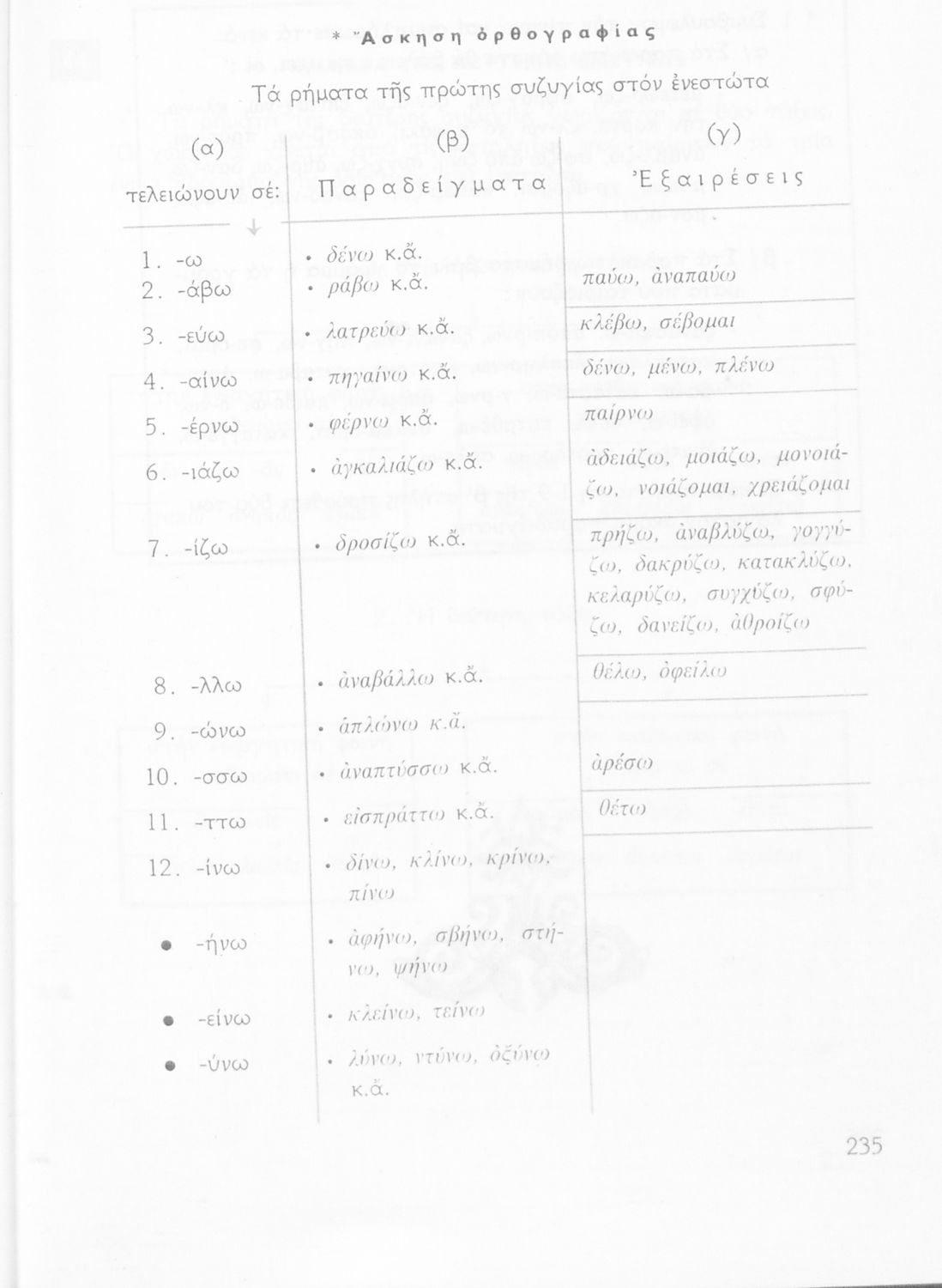 Σχολικό εγχειρίδιο της Ε΄ και ΣΤ΄ τάξης Δημοτικού για την γραμματική της ελληνικής γλώσσας με κανόνες και παραδείγματα. Στο επίμετρο υπάρχουν πίνακες με ανώμαλους σχηματισμούς ρημάτων.