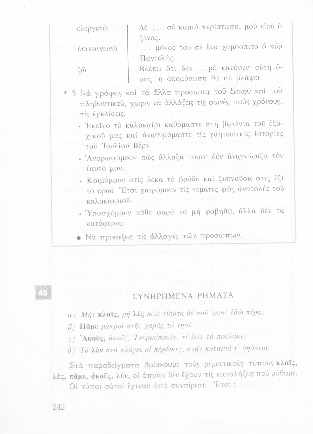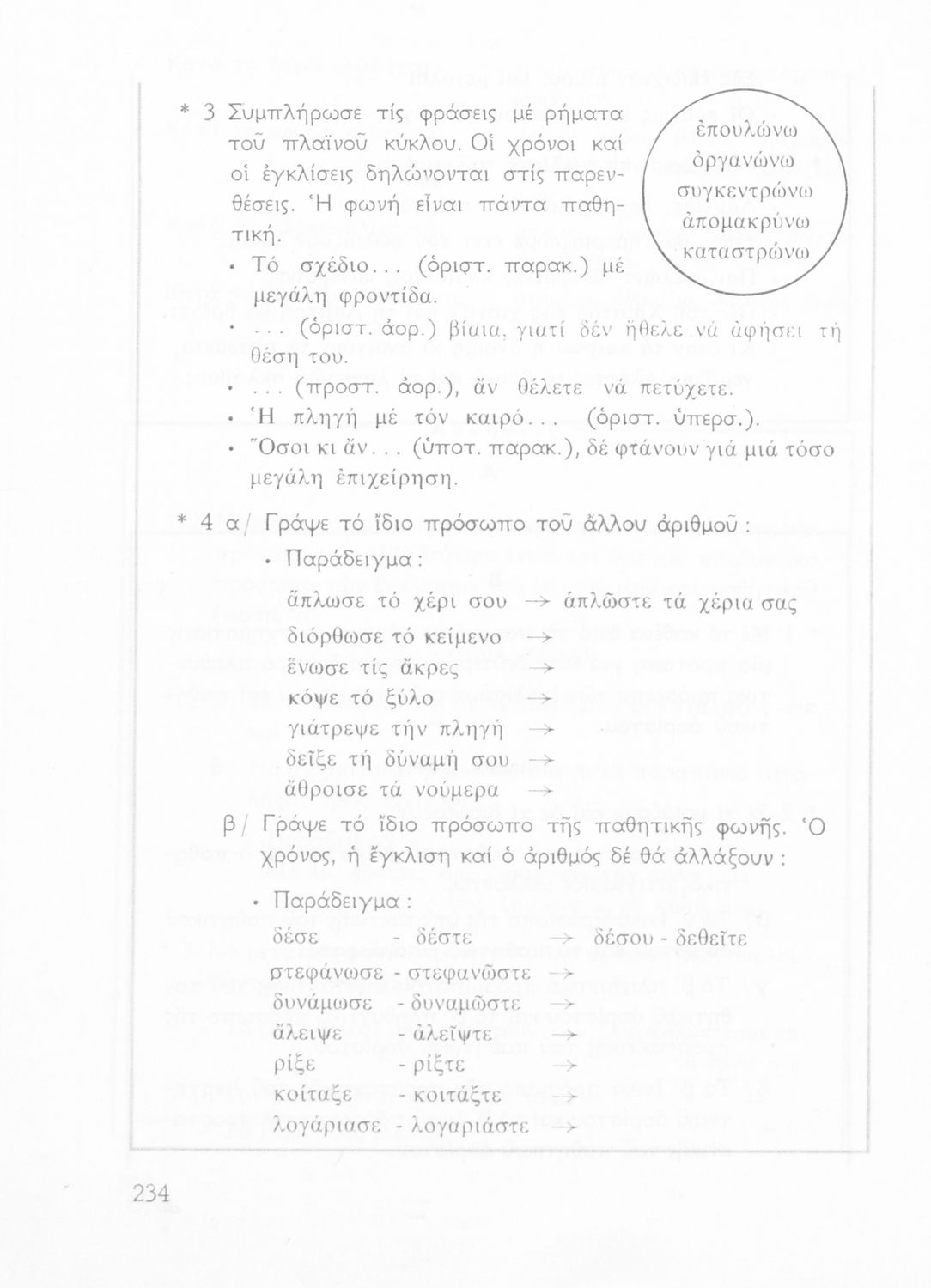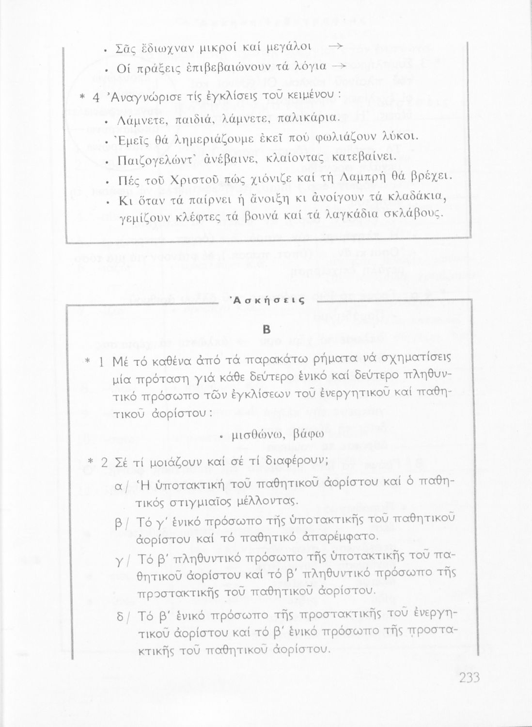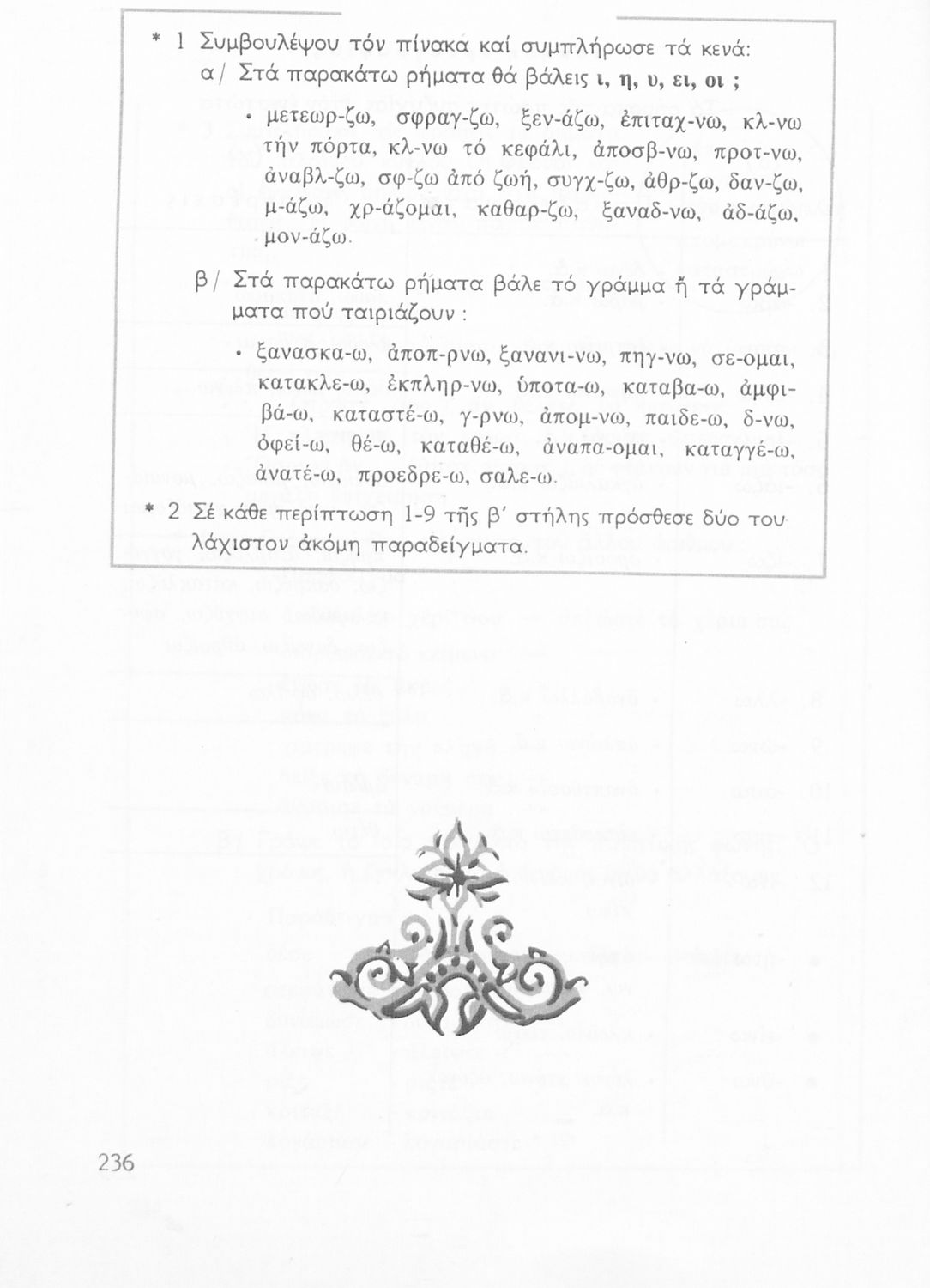 Σχολικό εγχειρίδιο της Ε΄ και ΣΤ΄ τάξης Δημοτικού για την γραμματική της ελληνικής γλώσσας με κανόνες και παραδείγματα. Στο επίμετρο υπάρχουν πίνακες με ανώμαλους σχηματισμούς ρημάτων.