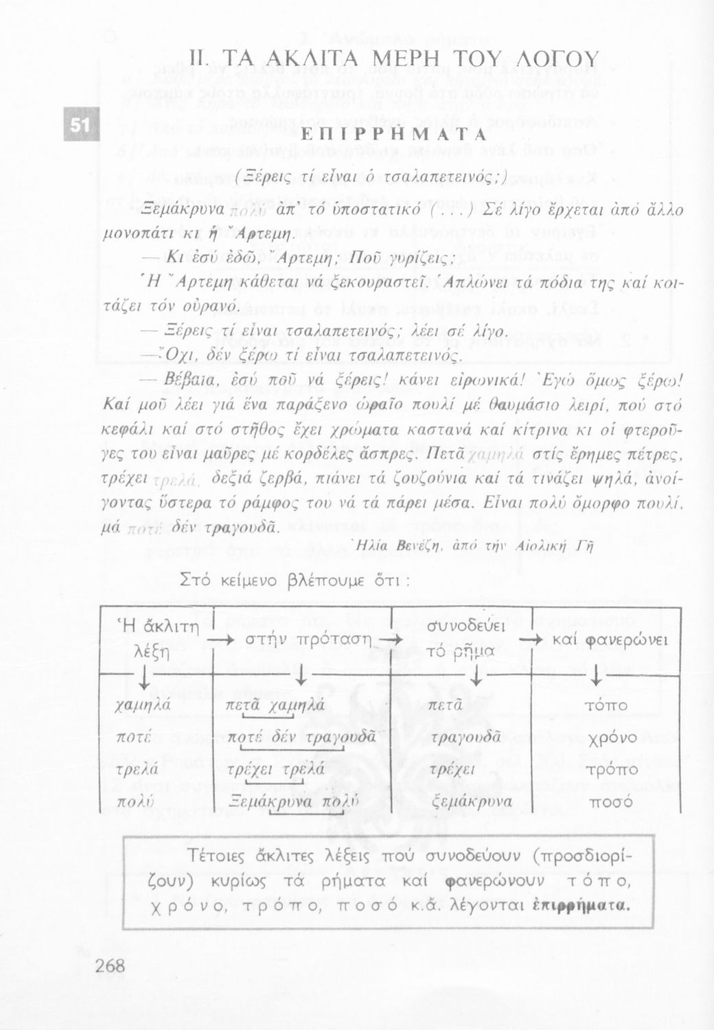Σχολικό εγχειρίδιο για την Ε΄ και ΣΤ΄ τάξη Δημοτικού με γραμματικούς κανόνες και παραδείγματα για τα κλιτά και άκλιτα μέρη του λόγου.