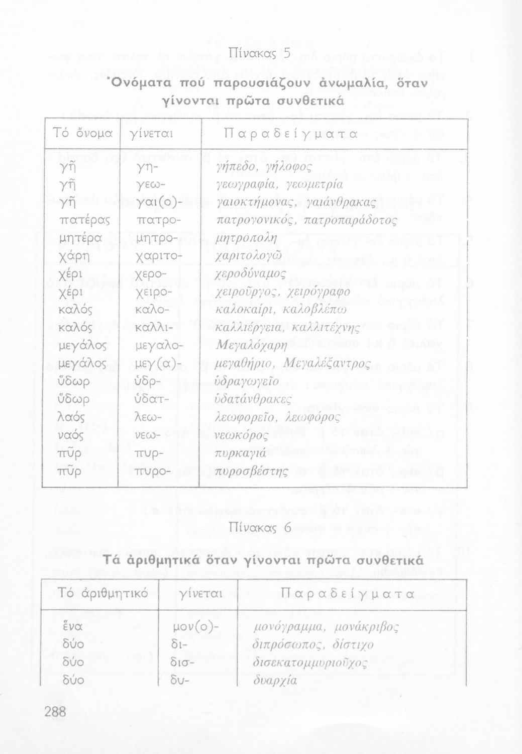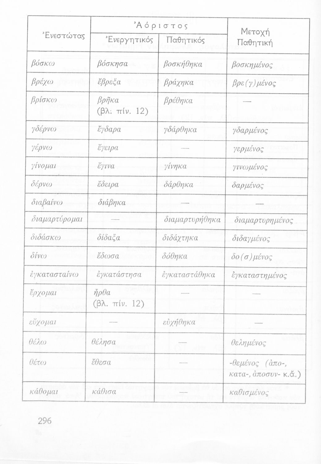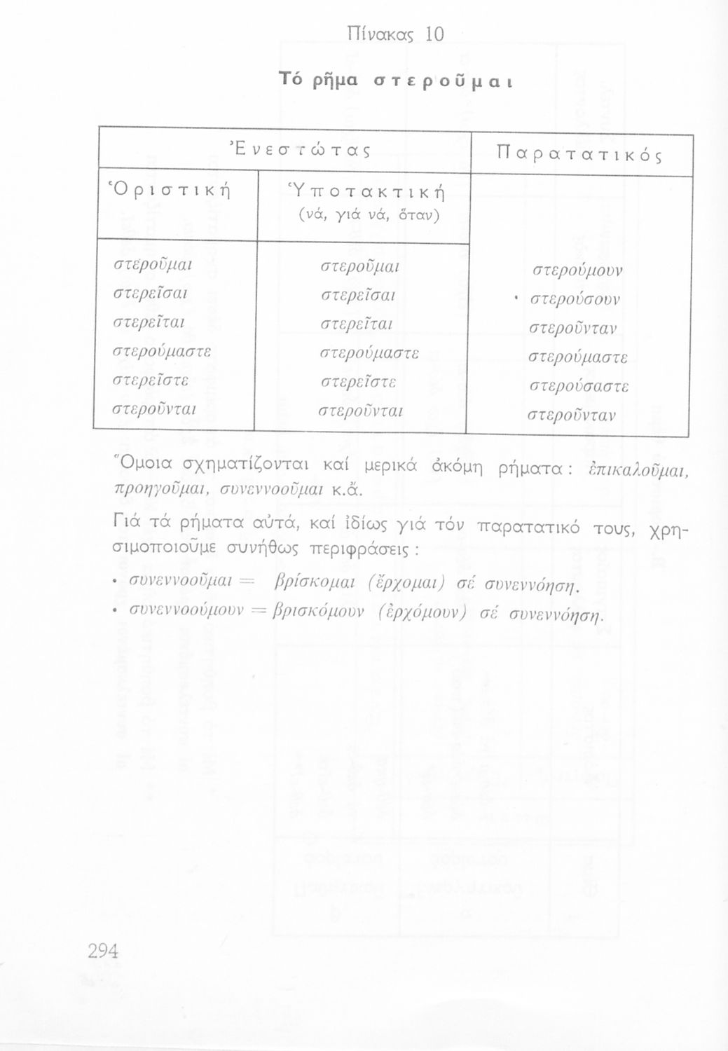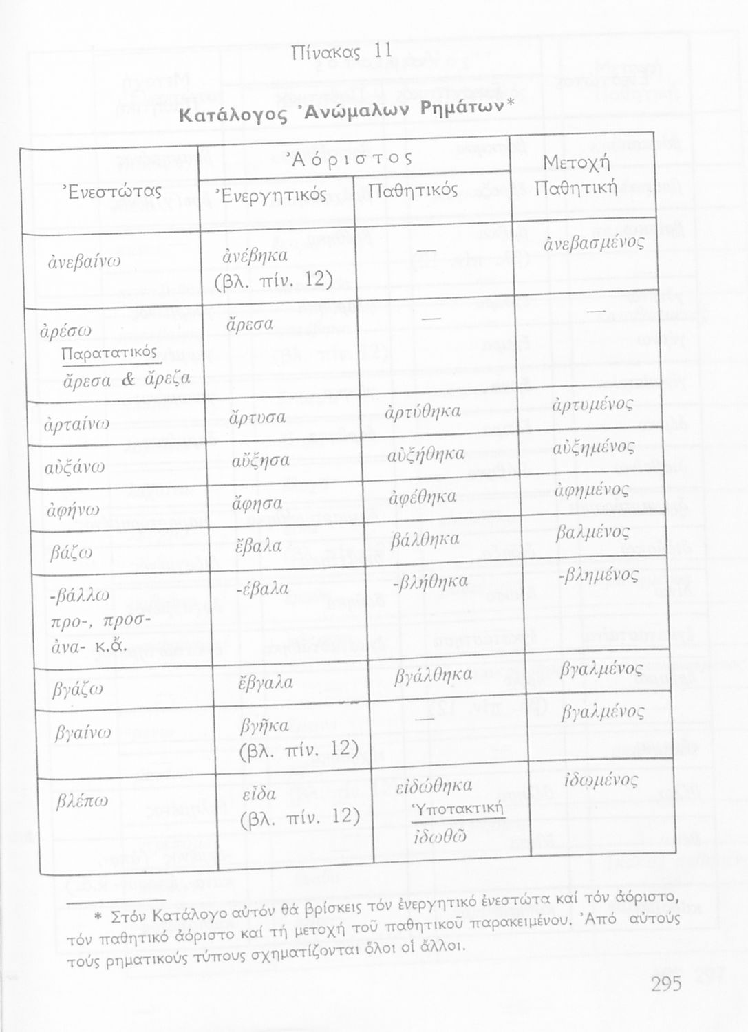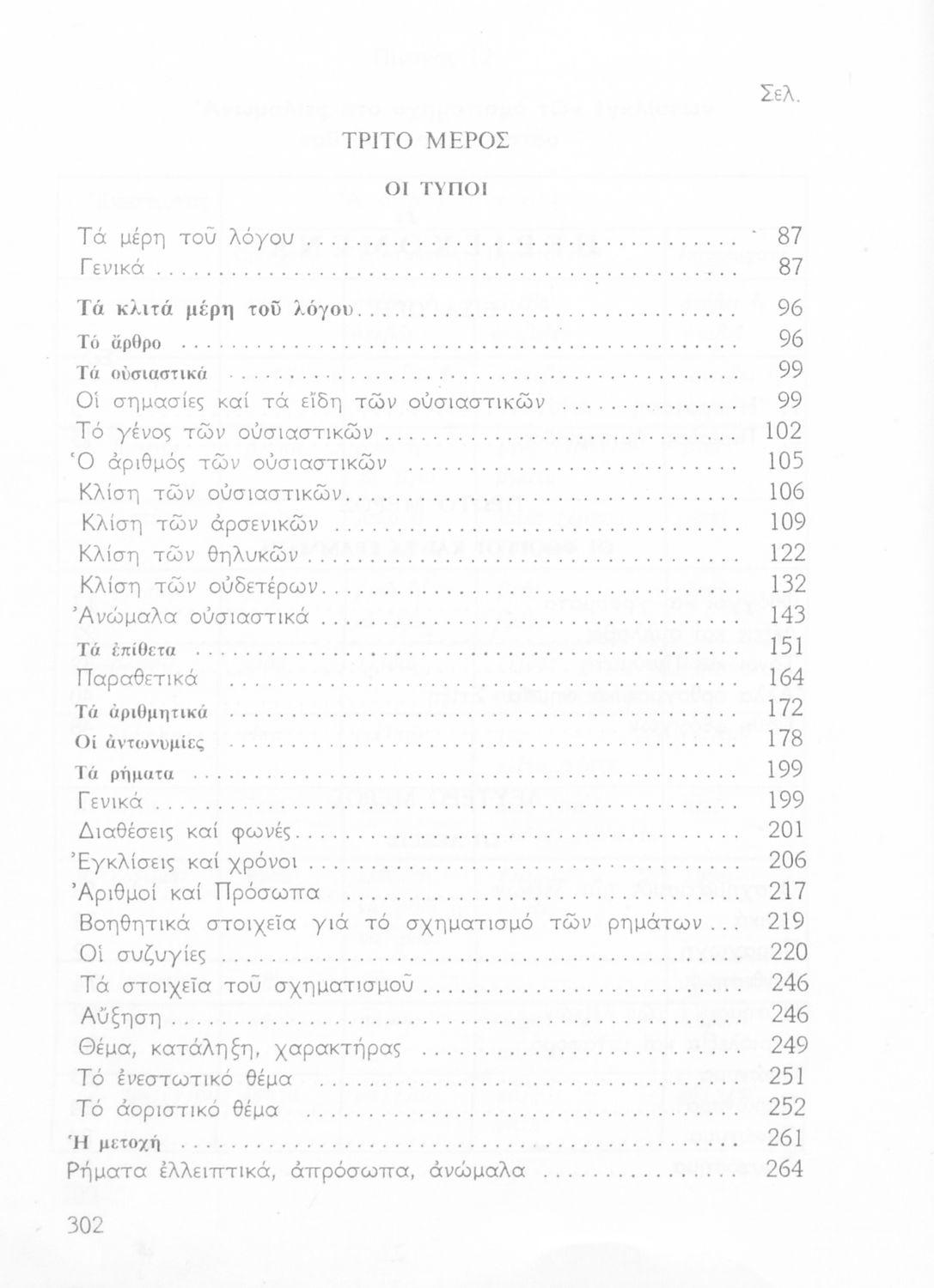 Σχολικό εγχειρίδιο της Ε΄ και ΣΤ΄ τάξης Δημοτικού για την γραμματική της ελληνικής γλώσσας με κανόνες και παραδείγματα. Στο επίμετρο υπάρχουν πίνακες με ανώμαλους σχηματισμούς ρημάτων.