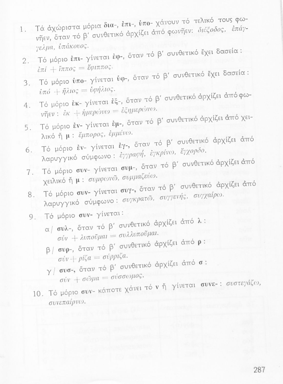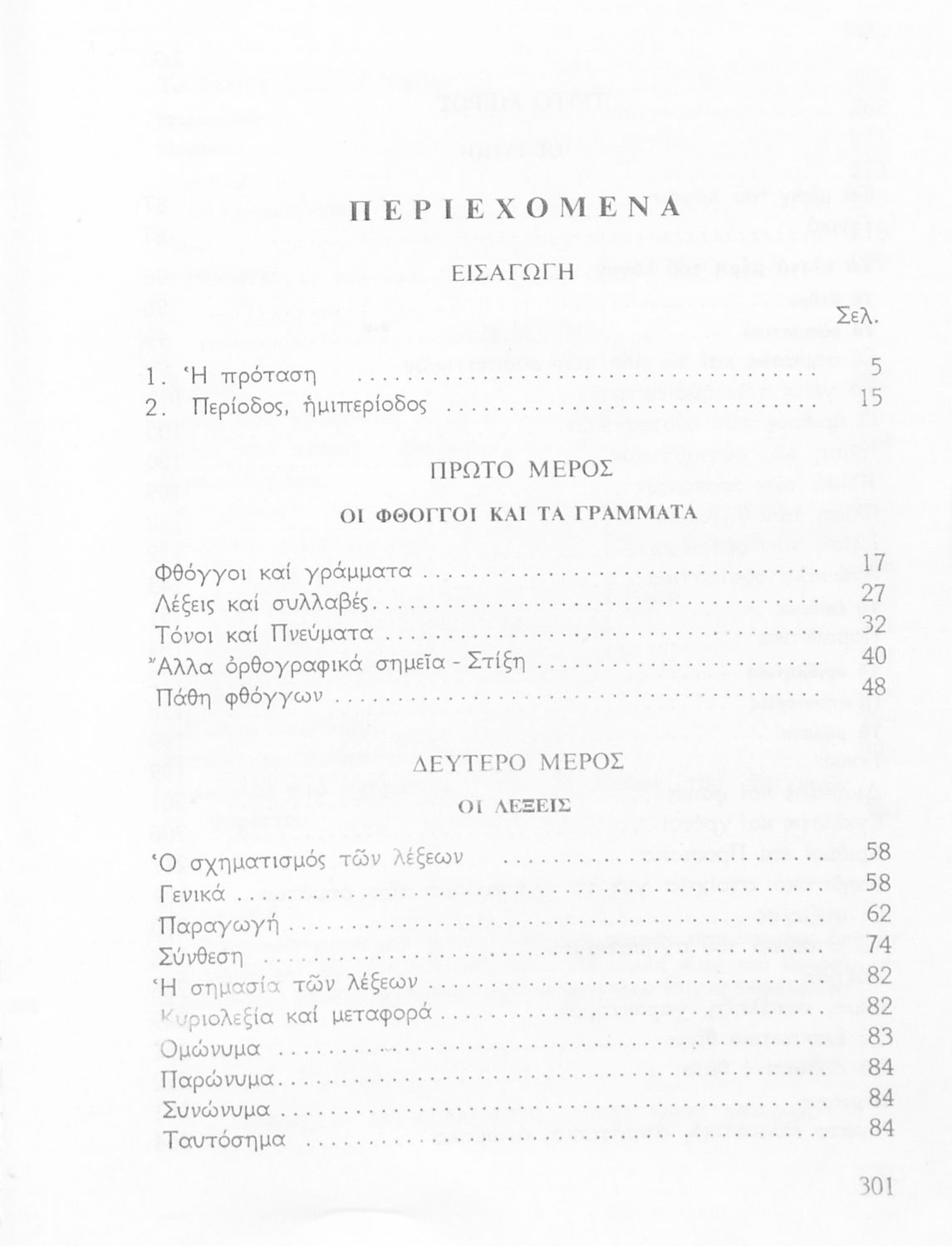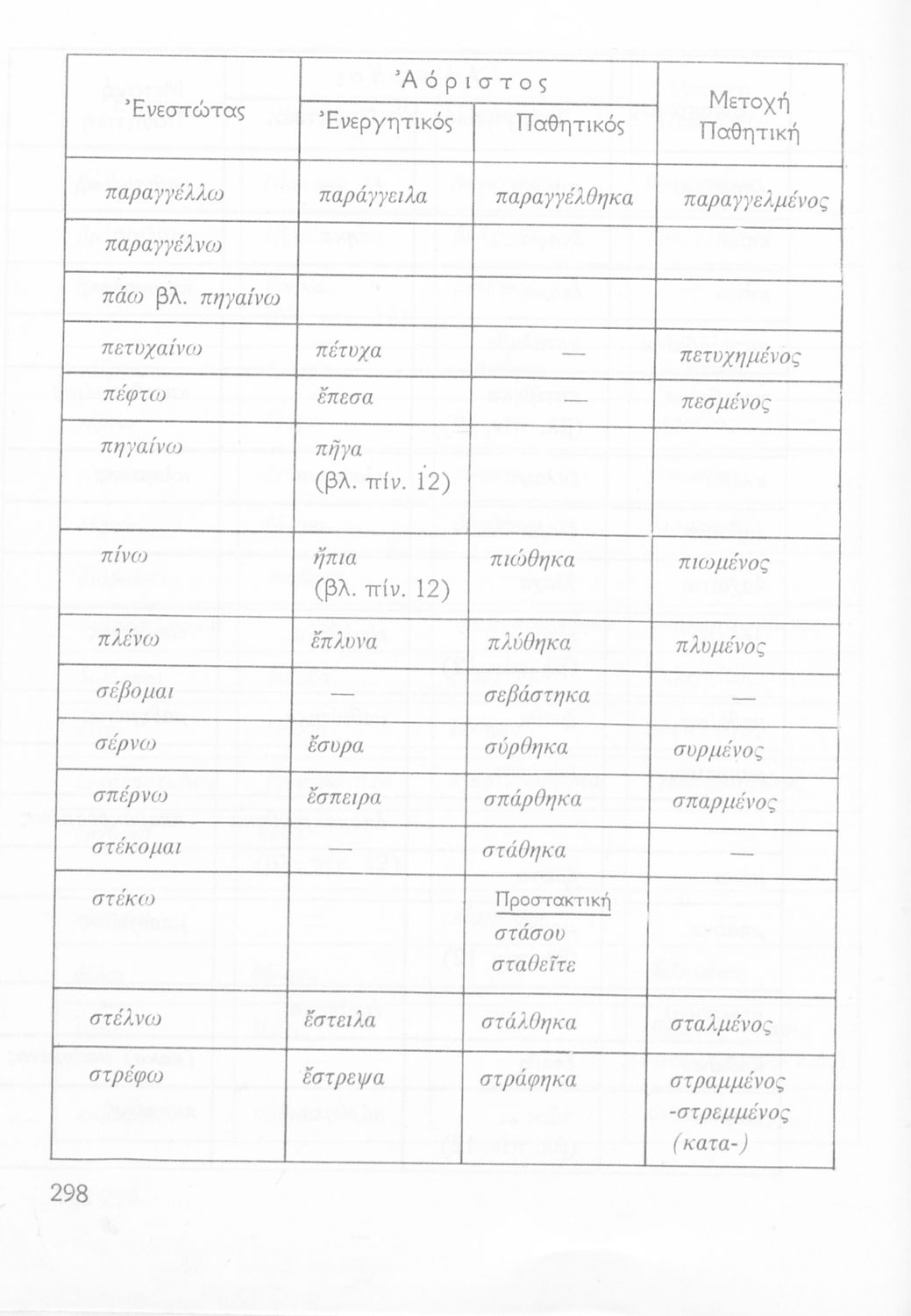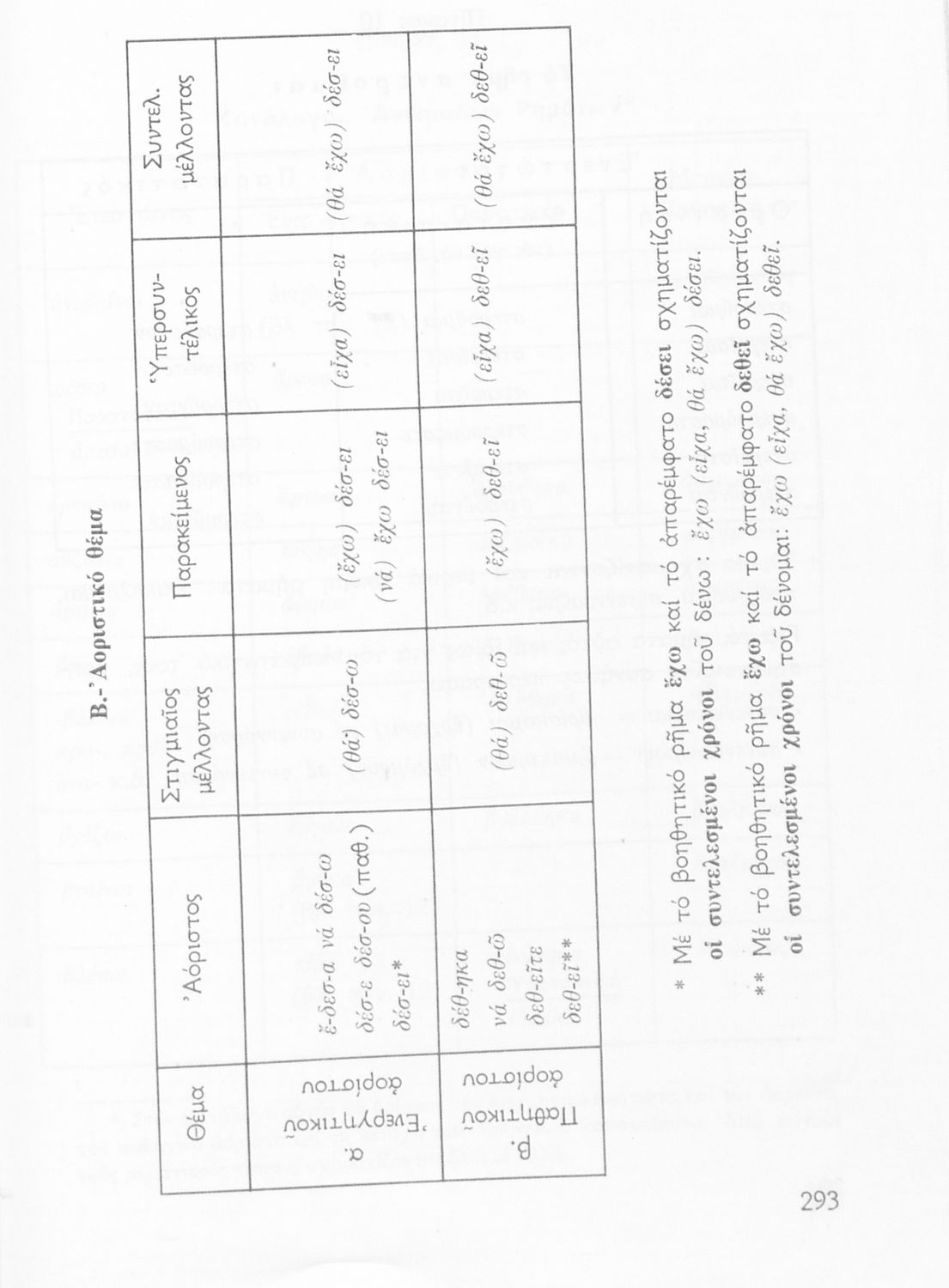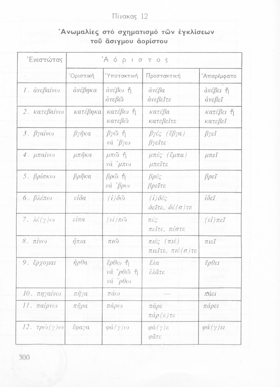 Σχολικό εγχειρίδιο της Ε΄ και ΣΤ΄ τάξης Δημοτικού για την γραμματική της ελληνικής γλώσσας με κανόνες και παραδείγματα. Στο επίμετρο υπάρχουν πίνακες με ανώμαλους σχηματισμούς ρημάτων.