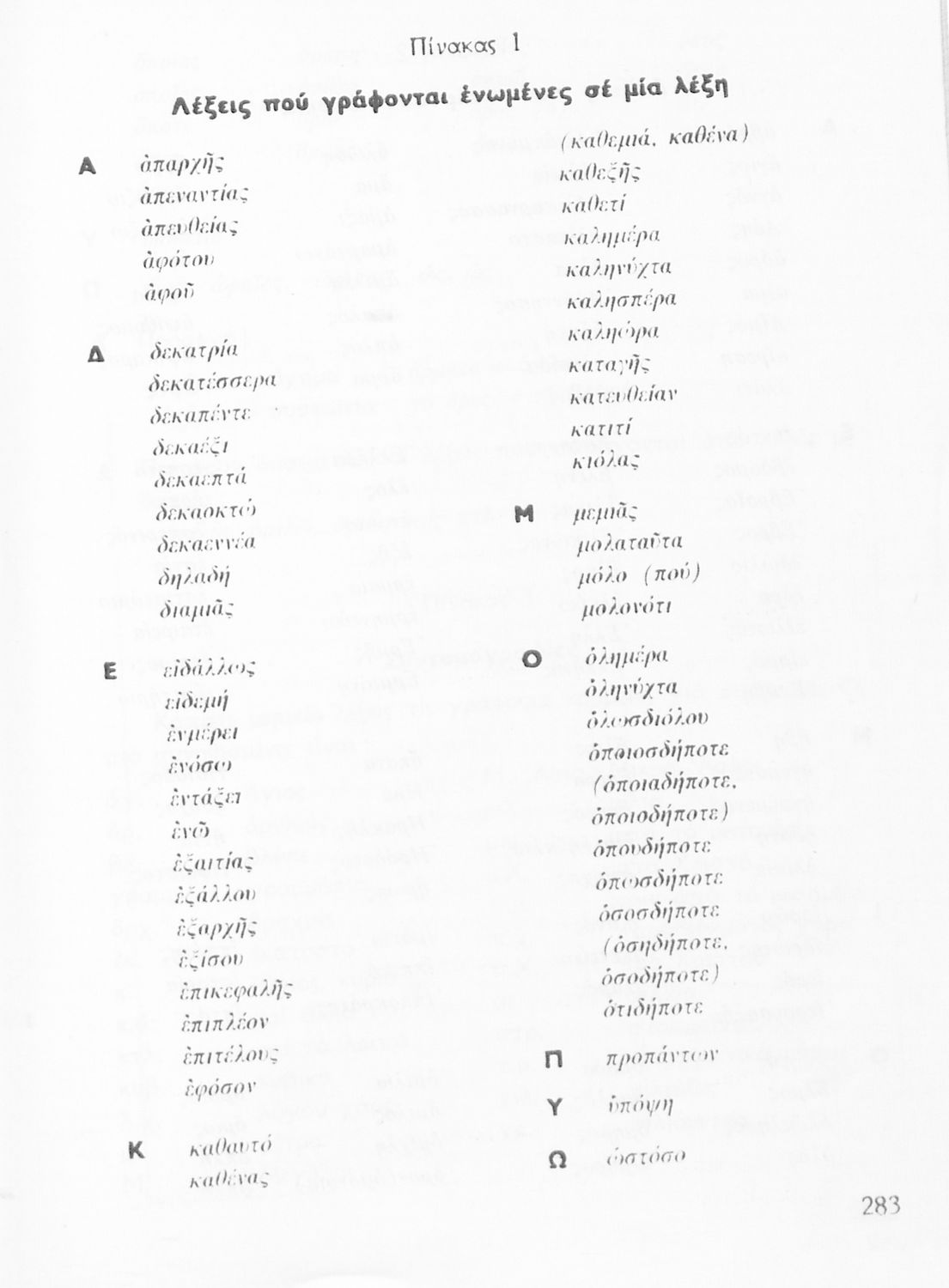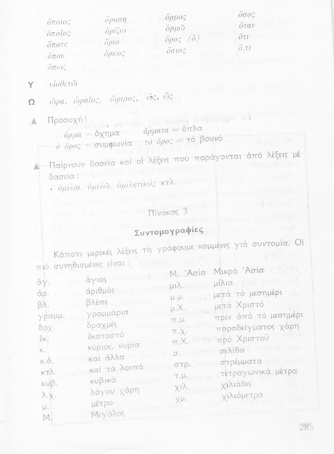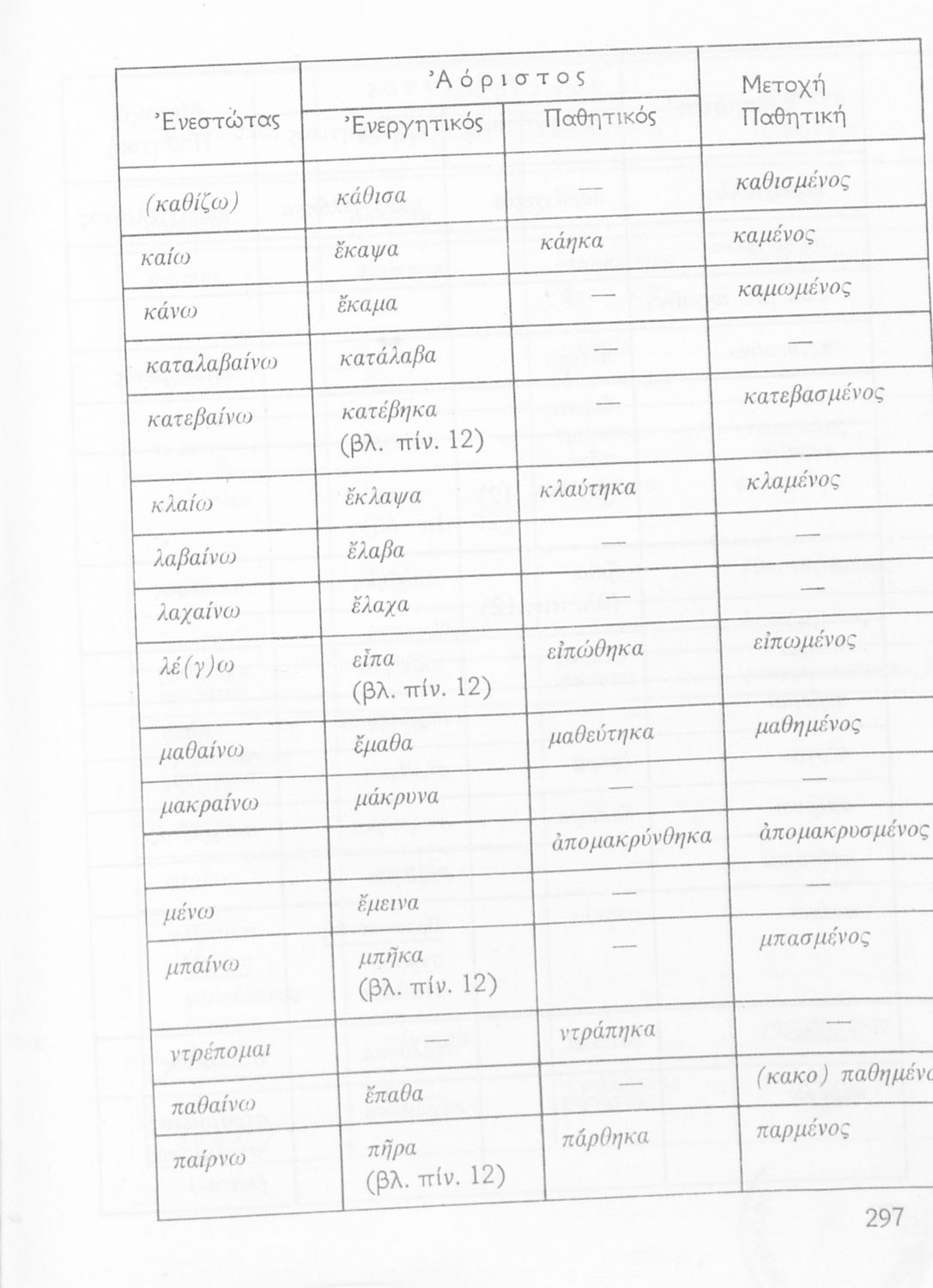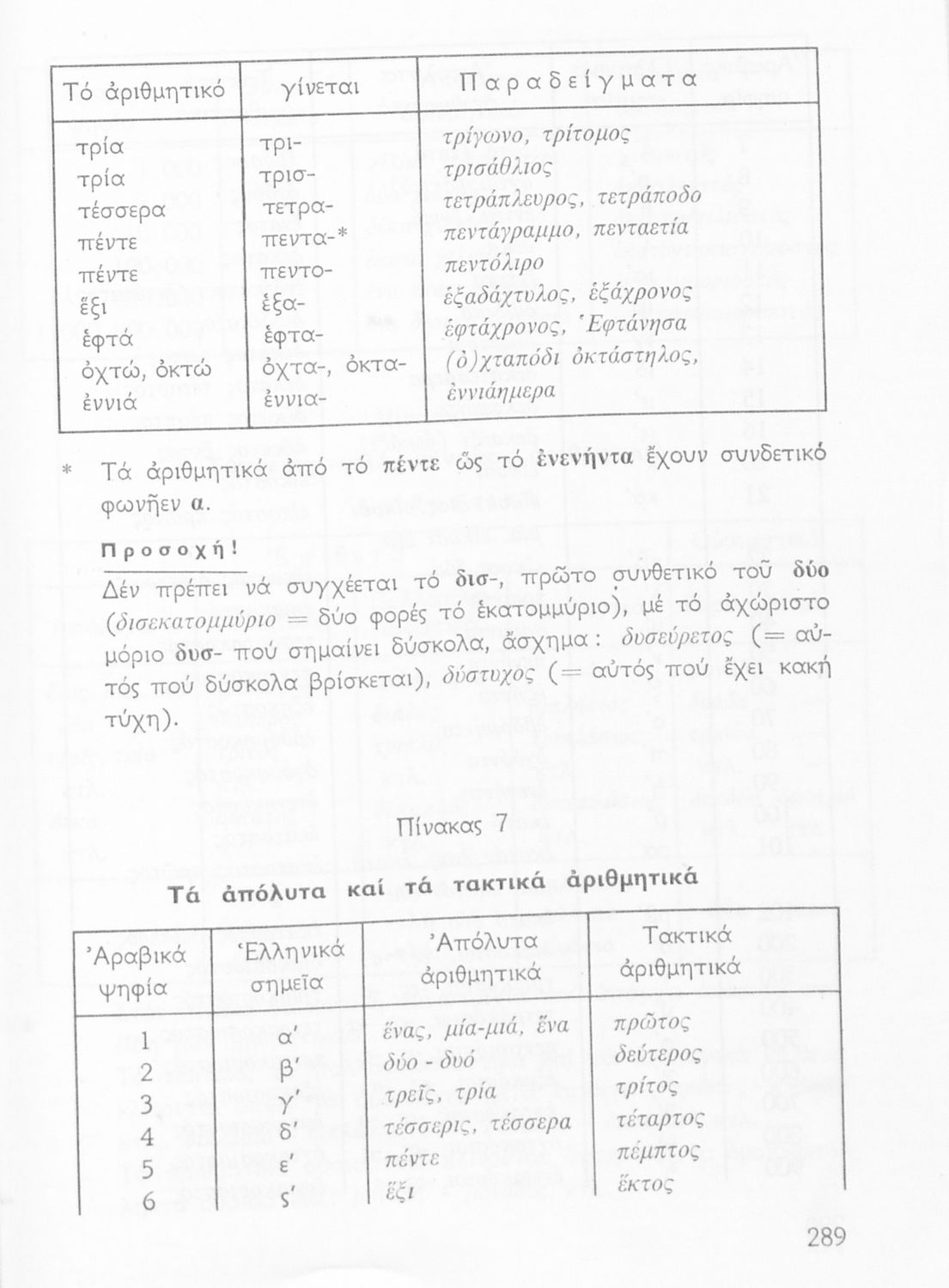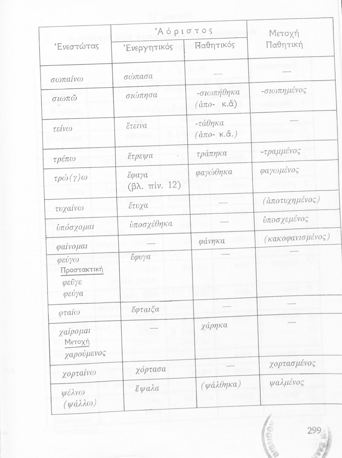 Σχολικό εγχειρίδιο της Ε΄ και ΣΤ΄ τάξης Δημοτικού για την γραμματική της ελληνικής γλώσσας με κανόνες και παραδείγματα. Στο επίμετρο υπάρχουν πίνακες με ανώμαλους σχηματισμούς ρημάτων.