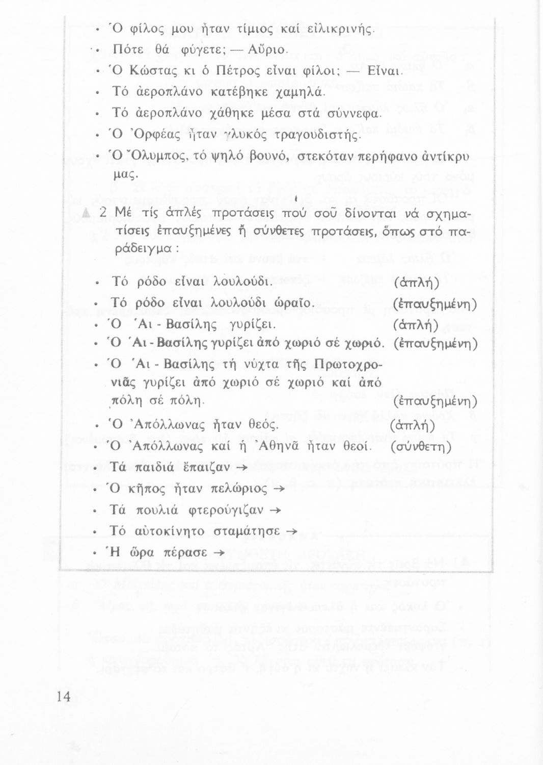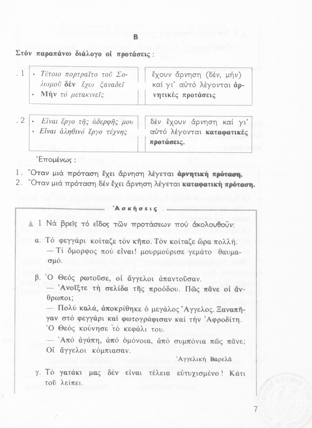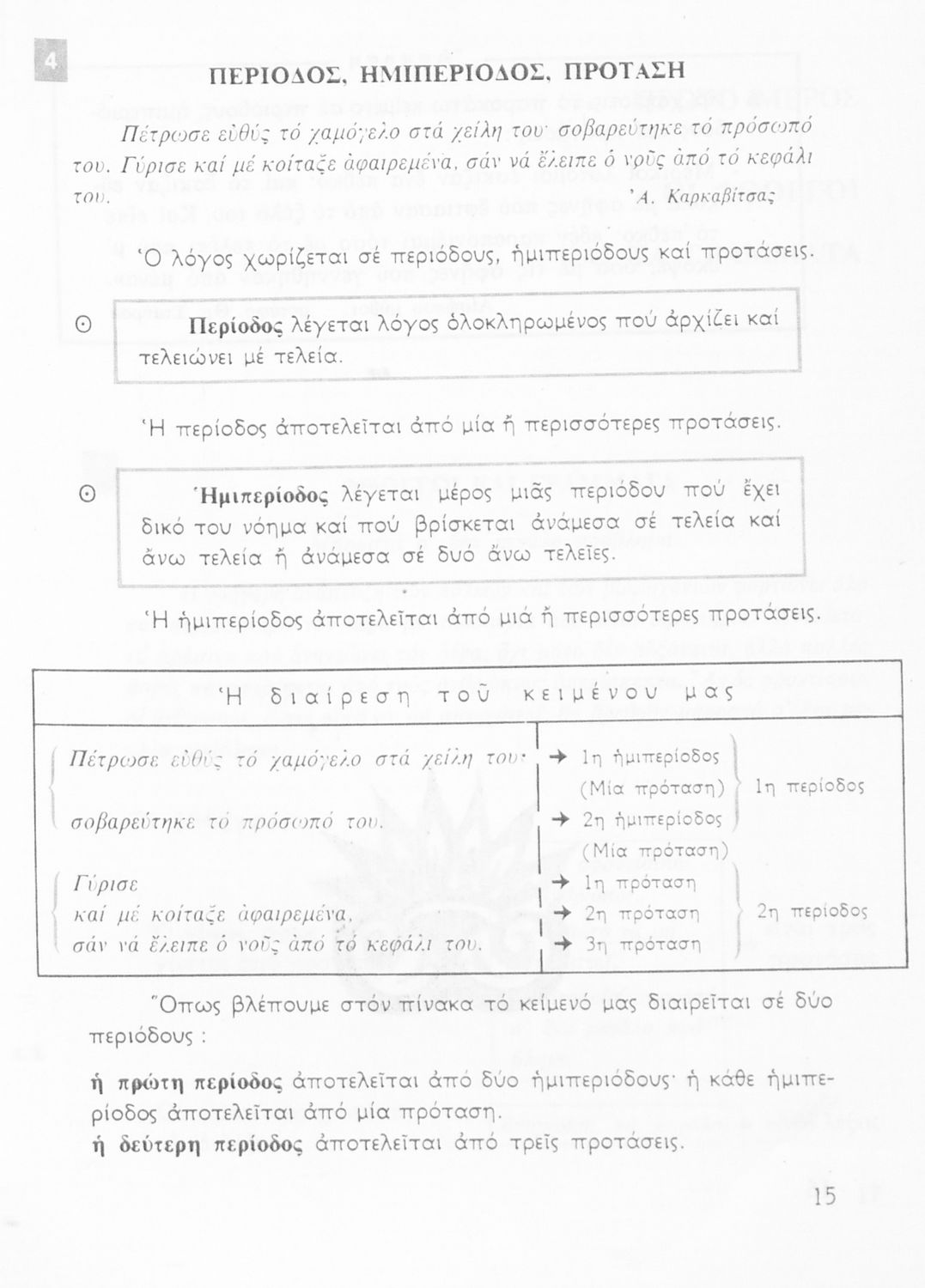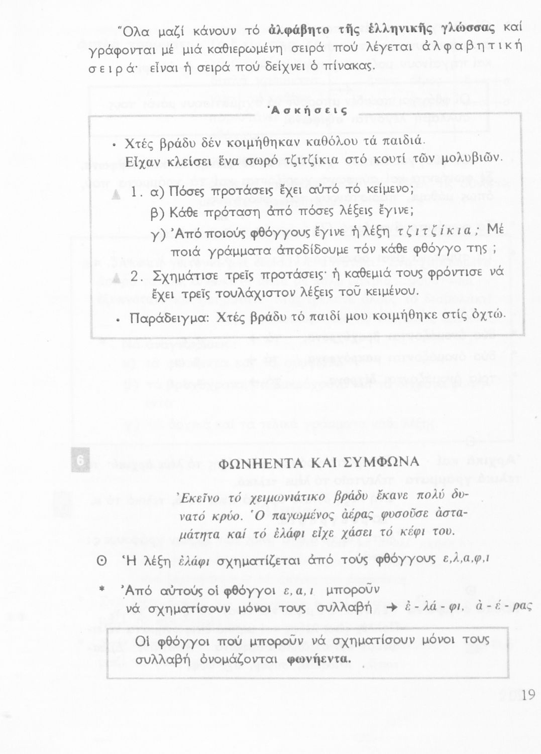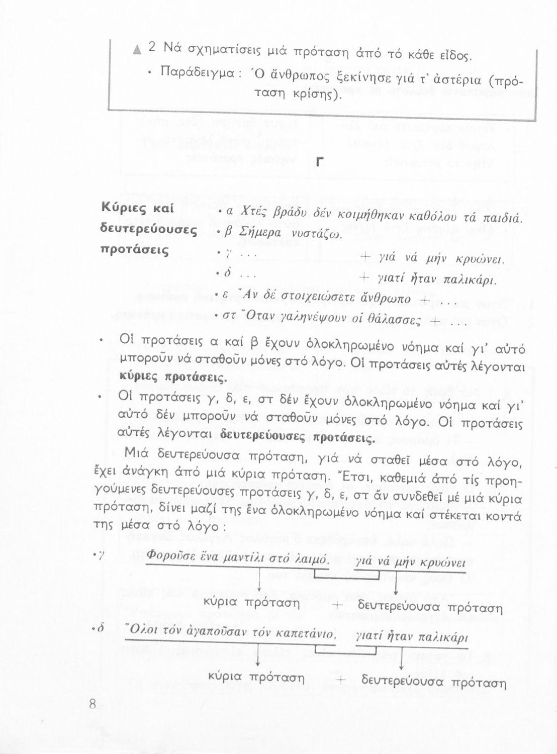 Βαθμίδα εκπαίδευσης: Πρωτοβάθμια Τάξη: Ε' Δημοτικού / ΣΤ' Δημοτικού Μάθημα: Νέα Ελληνικά Γλώσσα: Δημοτική Παρουσίαση περιεχομένου: Το σύγγραμμα ήταν σχολικό εγχειρίδιο για το μάθημα της Ελληνικής Γλώσσας. Πρόκειται για τη σύνοψη της νεοελληνικής γραμματική για τους μαθητές του Δημοτικού. Περιλαμβάνει τη θεωρία των γραμματικών φαινόμενων, καθώς διαθέτει πίνακες και παραδείγματα. Το τελευταίο περιέχει μέρος επίμετρο με ανώμαλα ρήματα, λέξεις και πίνακες. |