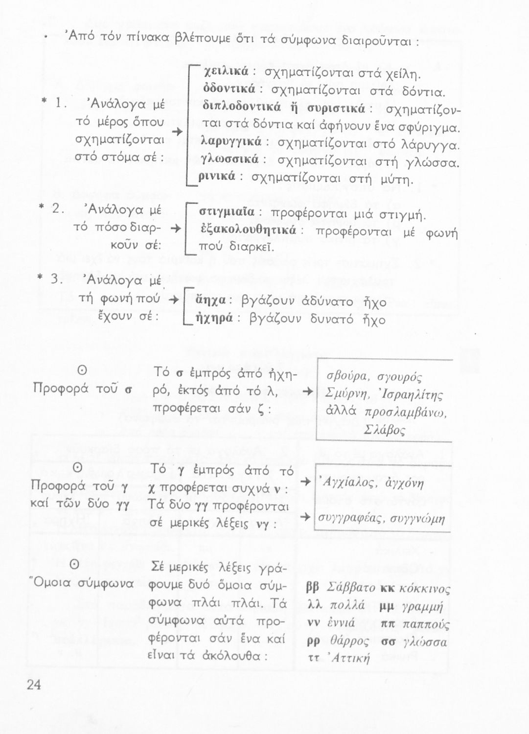 Το σύγγραμμα ήταν σχολικό εγχειρίδιο για το μάθημα της Ελληνικής Γλώσσας. Πρόκειται για τη σύνοψη της νεοελληνικής γραμματική για τους μαθητές του Δημοτικού. Περιλαμβάνει τη θεωρία των γραμματικών φαινόμενων, καθώς διαθέτει πίνακες και παραδείγματα. Το τελευταίο περιέχει μέρος επίμετρο με ανώμαλα ρήματα, λέξεις και πίνακες.