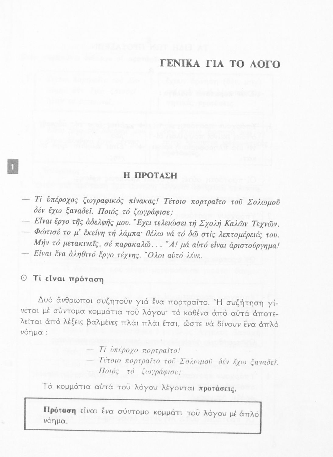 LDR 01552 2200229 4500 035 ## _a03-20555776 040 ## _aΒιβλιοθήκη της Βουλής των Ελλήνων 041 ## _ael 100 ## _aΧ. Τσολάκης 110 ## _a20555776 245 0# _aΝεοελληνική Γραμματική της Ε' και ΣΤ΄ Δημοτικού 250 ## _a5η Έκδοση 260 ## _aΑθήνα _bΟργανισμός Εκδόσεως Διδακτικών Βιβλίων _c1982 300 ## _a302 _bΕξώφυλλο (έγχρωμο), Σκίτσα (έγχρωμα) 520 ## _aΤο σύγγραμμα ήταν σχολικό εγχειρίδιο για το μάθημα της Ελληνικής Γλώσσας. Πρόκειται για τη σύνοψη της νεοελληνικής γραμματική για τους μαθητές του Δημοτικού. Περιλαμβάνει τη θεωρία των γραμματικών φαινόμενων, καθώς διαθέτει πίνακες και παραδείγματα. Το τελευταίο περιέχει μέρος επίμετρο με ανώμαλα ρήματα, λέξεις και πίνακες. 521 ## _aΕ' Δημοτικού / ΣΤ' Δημοτικού 522 ## _aΕλλάδα 546 ## _aΔημοτική 563 ## _aΜαλακό Εξώφυλλο 583 ## _a3720/11-1-1982 _c1982 650 #4 _aΓλώσσα _aΓραμματική _aΕπίθετα _aΟυσιαστικά _aΠτώσεις _aΡήματα 700 ## _aΑναστ. Μουσταφέλλος