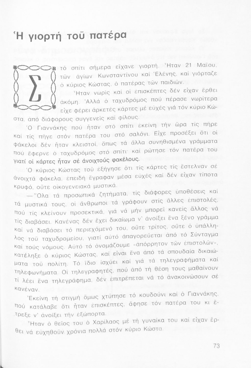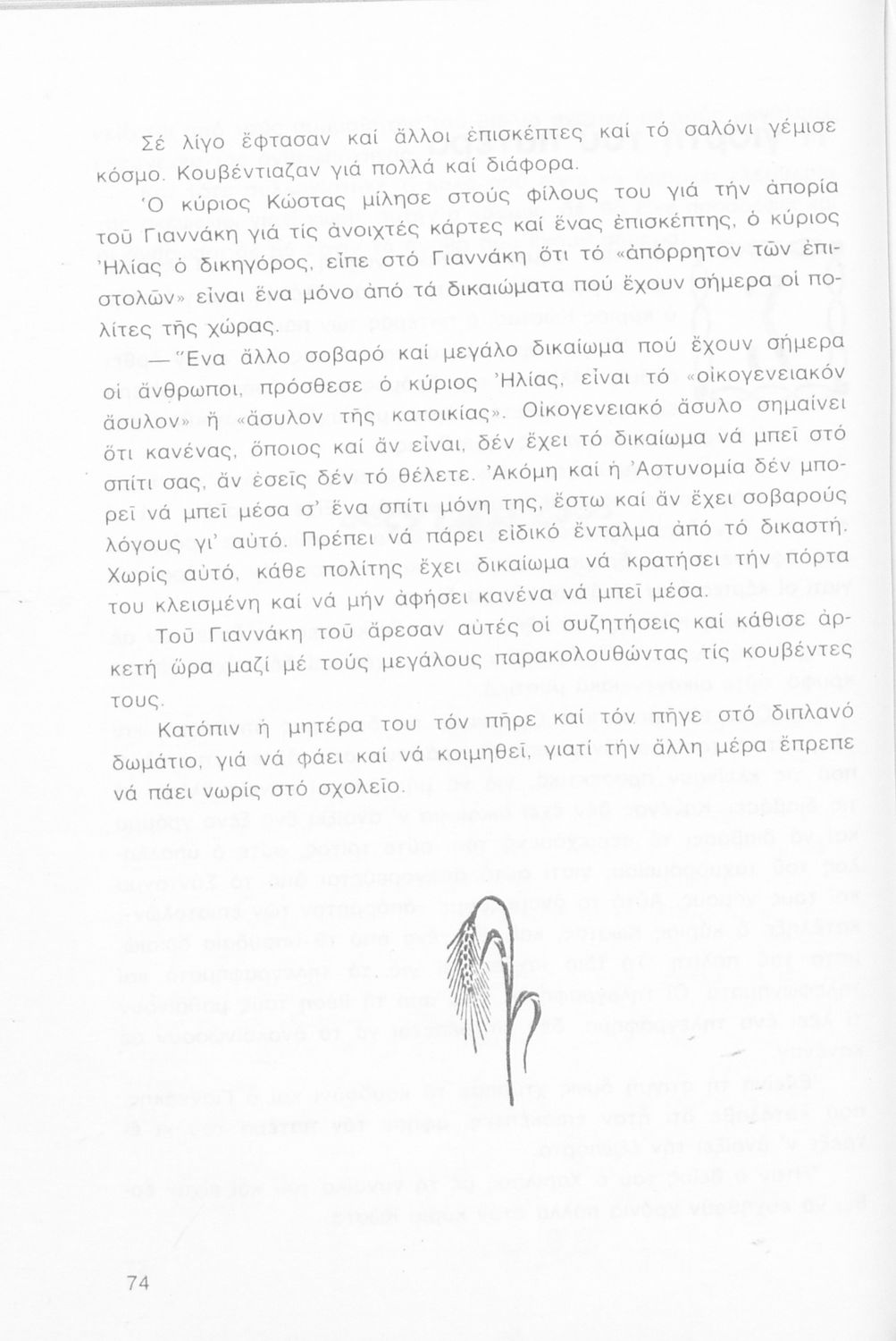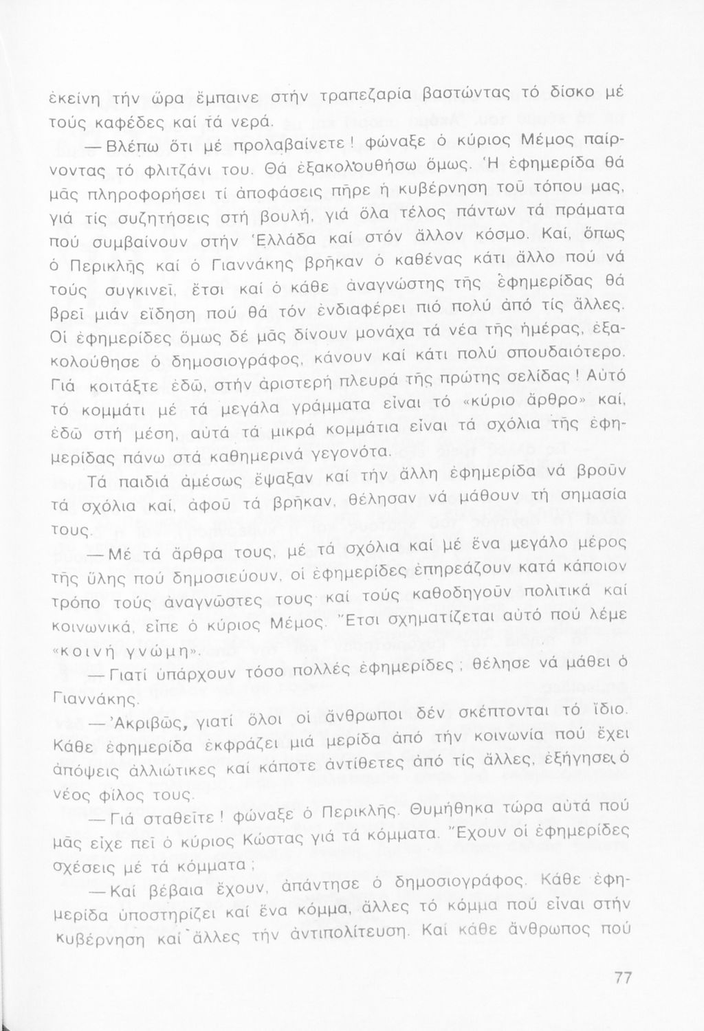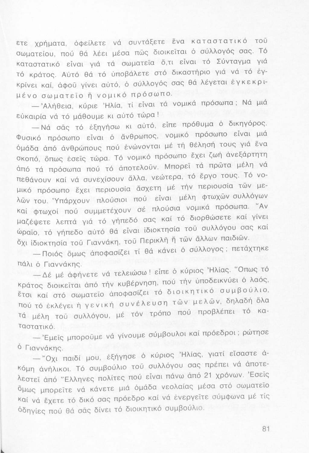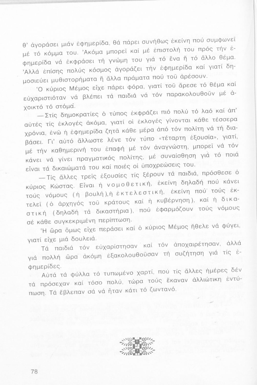 LDR 01702 2200217 4500 035 ## _a03-20555780 040 ## _aΒιβλιοθήκη της Βουλής των Ελλήνων 041 ## _ael 100 ## _aΑγνή Ρουσοπούλου 110 ## _a20555780 245 0# _aΑγωγή του Πολίτη για την ΣΤ΄ Δημοτικού 250 ## _a8η Έκδοση 260 ## _aΑθήνα _bΟργανισμός Εκδόσεως Διδακτικών Βιβλίων _c1982 300 ## _a104 _bΕικόνες, σκίτσα (ασπρόμαυρα) 520 ## _aΣχολικό εγχειρίδιο Αγωγής του Πολίτη ΣΤ΄ Δημοτικού που εστιάζει στα καθήκοντα πολίτη, τις βασικές αρχές του δημοκρατικού πολιτεύματος, τους νόμους, το ρόλο της κυβέρνησης, και της δικαιοσύνης, τη λειτουργία των θεσμών και την αξία των ανθρώπινων δικαιωμάτων. Αποσκοπεί στην κατανόηση της έννοιας του Δίκαιου και του Πολίτη. 521 ## _aΣΤ' Δημοτικού 522 ## _aΕλλάδα 546 ## _aΔημοτική 563 ## _aΜαλακό Εξώφυλλο 583 ## _a3737/25-1-1982 _c1982 650 #4 _aΑυτοδιοίκηση _aΔιεθνείς σχέσεις _aΔικαστική εξουσία _aΕκλογές _aΕκτελεστική εξουσία _aΕλευθερία εργασίας _aΕλευθερία τύπου _aΝομοθετική εξουσία _aΠολιτικά δικαστήρια _aΣτρατιωτική υποχρέωση _aΦιλοπατρία
