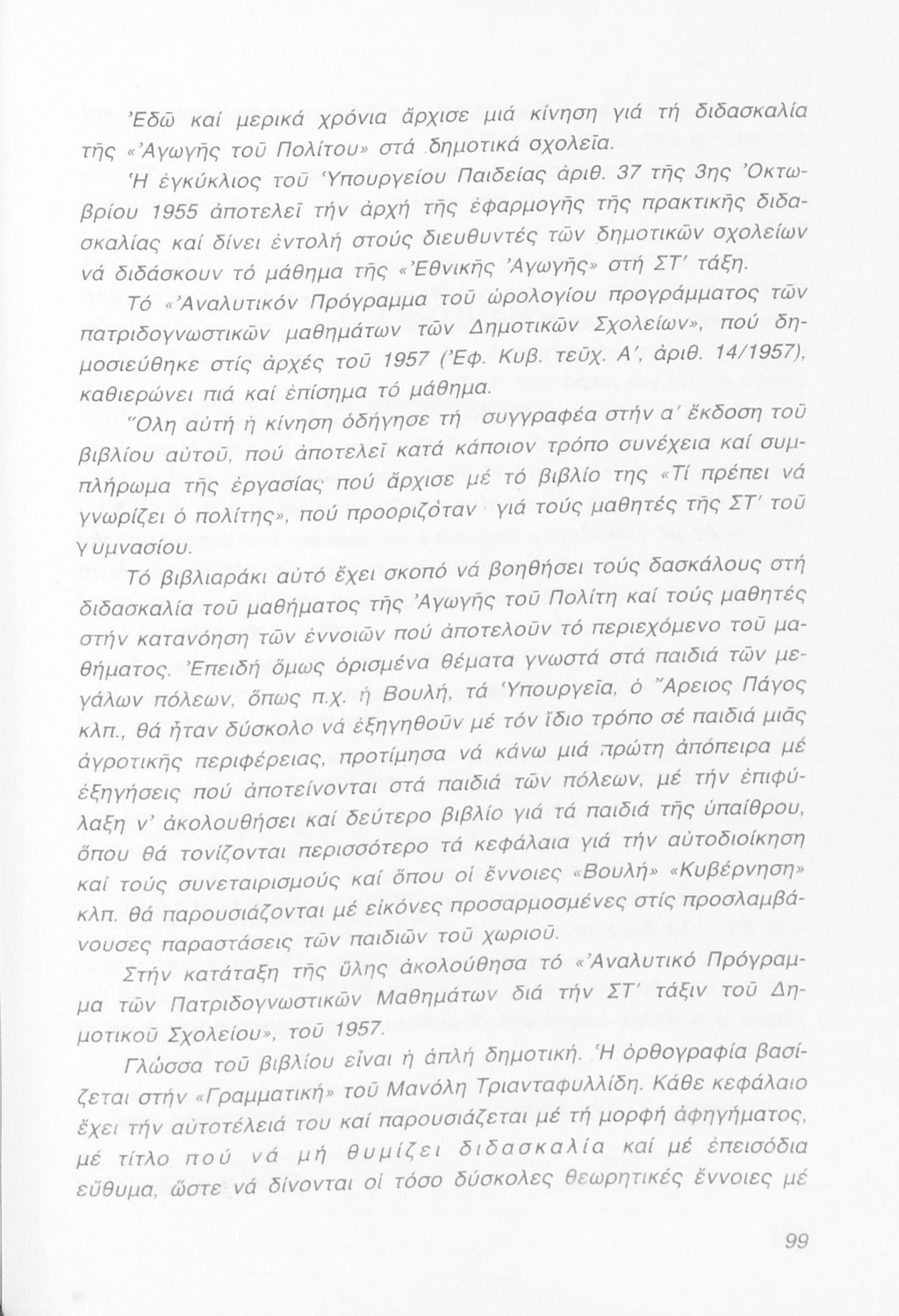 Βαθμίδα εκπαίδευσης: Πρωτοβάθμια Τάξη: ΣΤ' Δημοτικού Μάθημα: Αγωγή Του Πολίτη Γλώσσα: Δημοτική Παρουσίαση περιεχομένου: Σχολικό εγχειρίδιο Αγωγής του Πολίτη ΣΤ΄ Δημοτικού που εστιάζει στα καθήκοντα πολίτη, τις βασικές αρχές του δημοκρατικού πολιτεύματος, τους νόμους, το ρόλο της κυβέρνησης, και της δικαιοσύνης, τη λειτουργία των θεσμών και την αξία των ανθρώπινων δικαιωμάτων. Αποσκοπεί στην κατανόηση της έννοιας του Δίκαιου και του Πολίτη. |