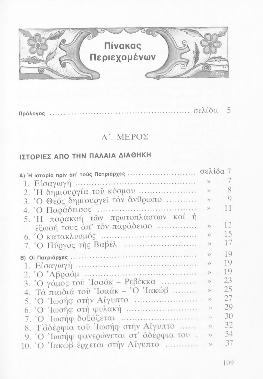 Σχολικό εγχειρίδιο Θρησκευτικών για την Γ΄ τάξη Δημοτικού. Περιέχει ιστορίες από την Παλαιά Διαθήκη. Ξεκινά με την δημιουργία του κόσμου και αναφέρει την ιστορία του εβραϊκού λαού.