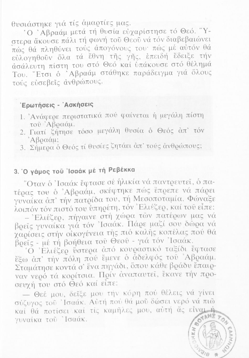 Σχολικό εγχειρίδιο Θρησκευτικών για την Γ΄ τάξη Δημοτικού. Περιέχει ιστορίες από την Παλαιά Διαθήκη. Ξεκινά με την δημιουργία του κόσμου και αναφέρει την ιστορία του εβραϊκού λαού.